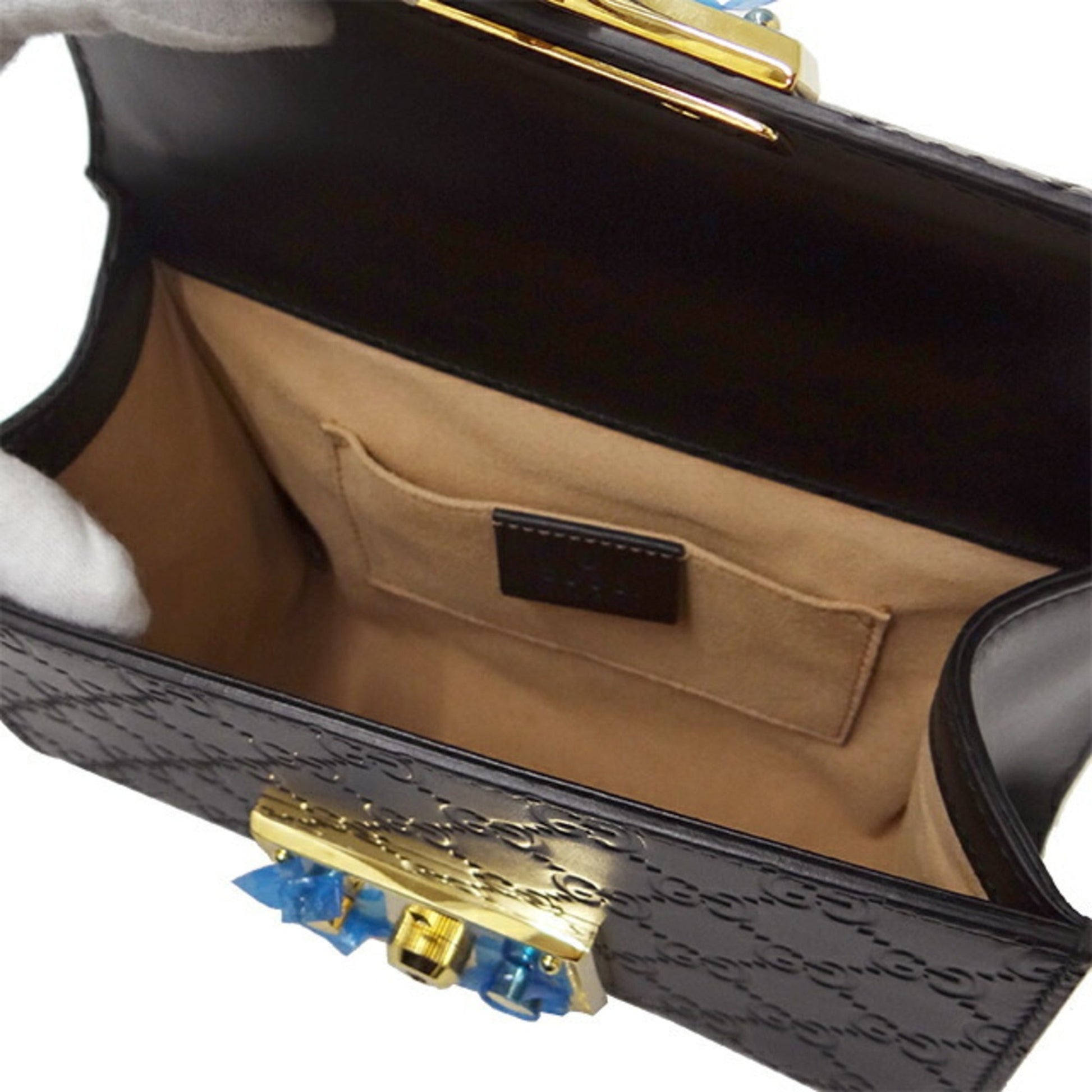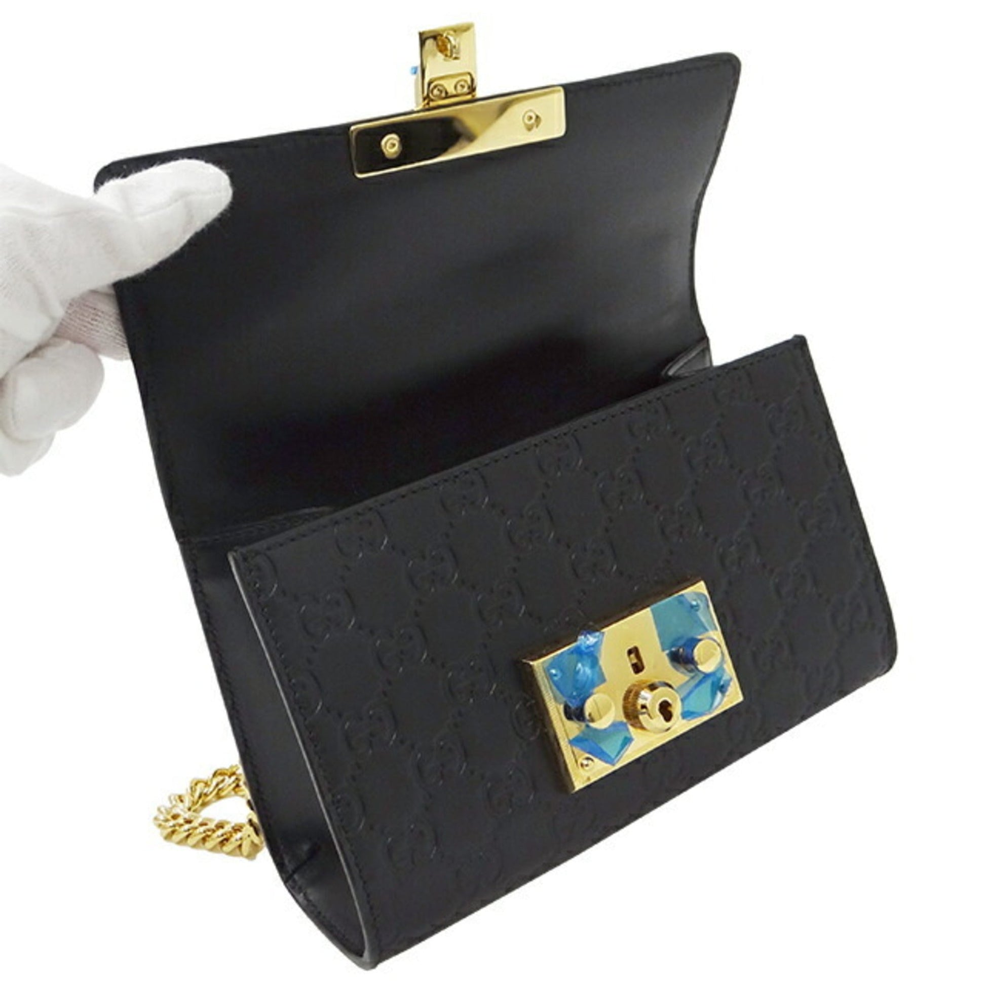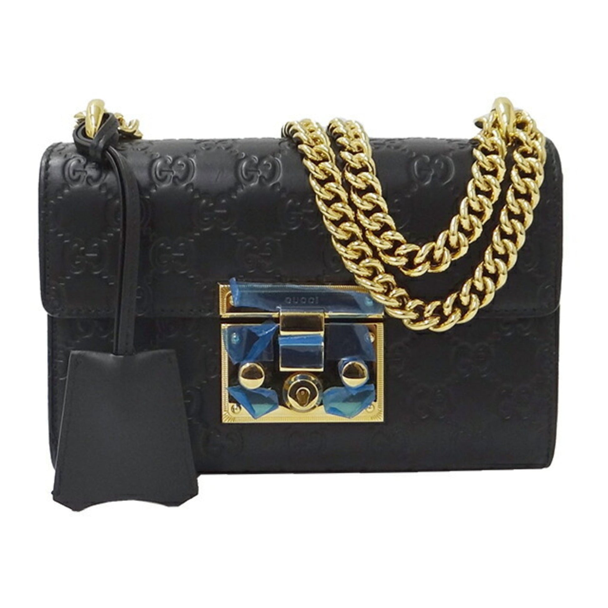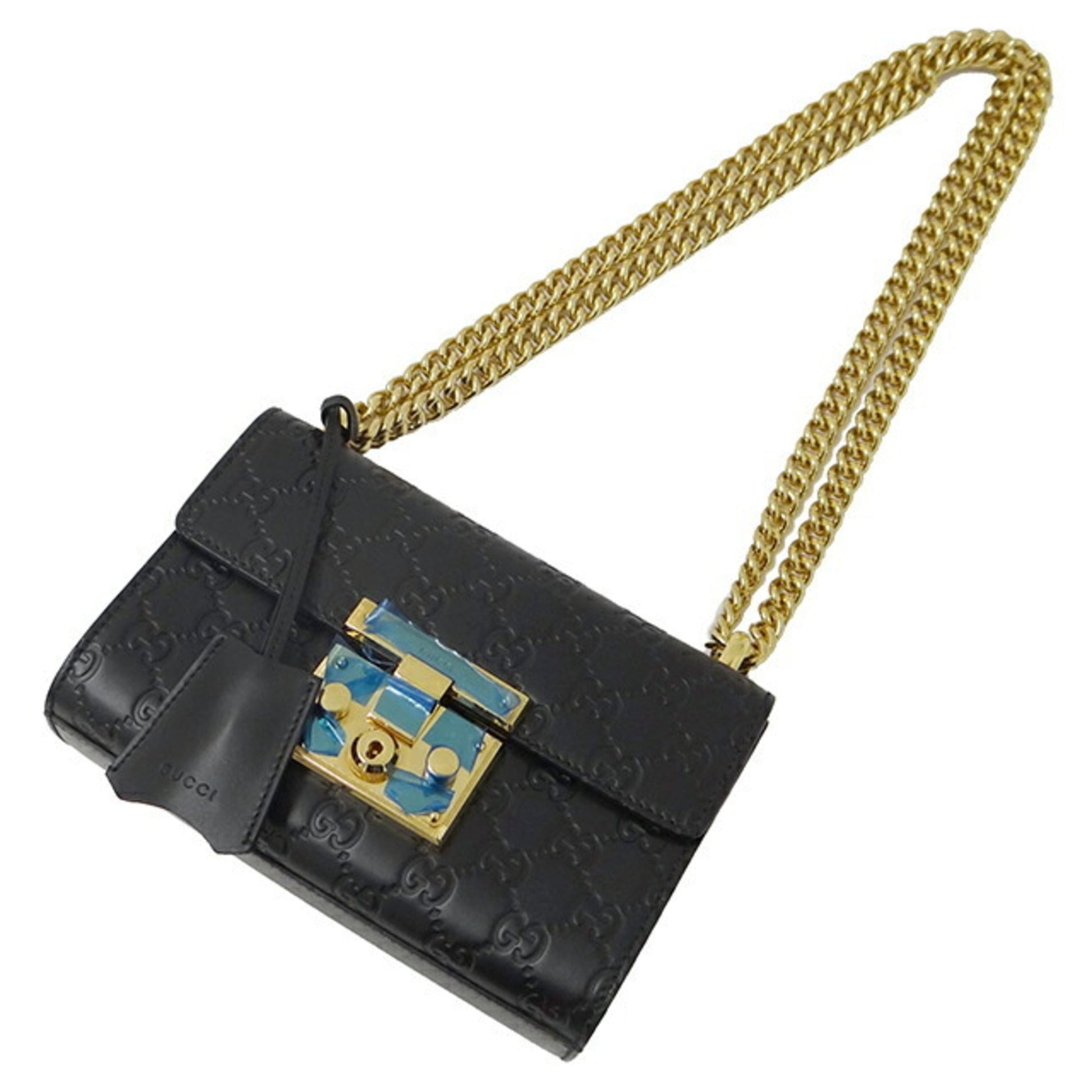 GUCCI Bag Women's Shima Shoulder Leather Chain Black 409487 Padlock