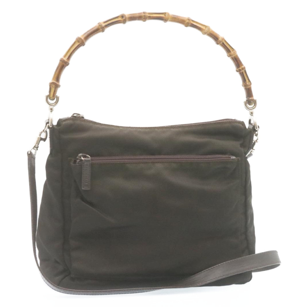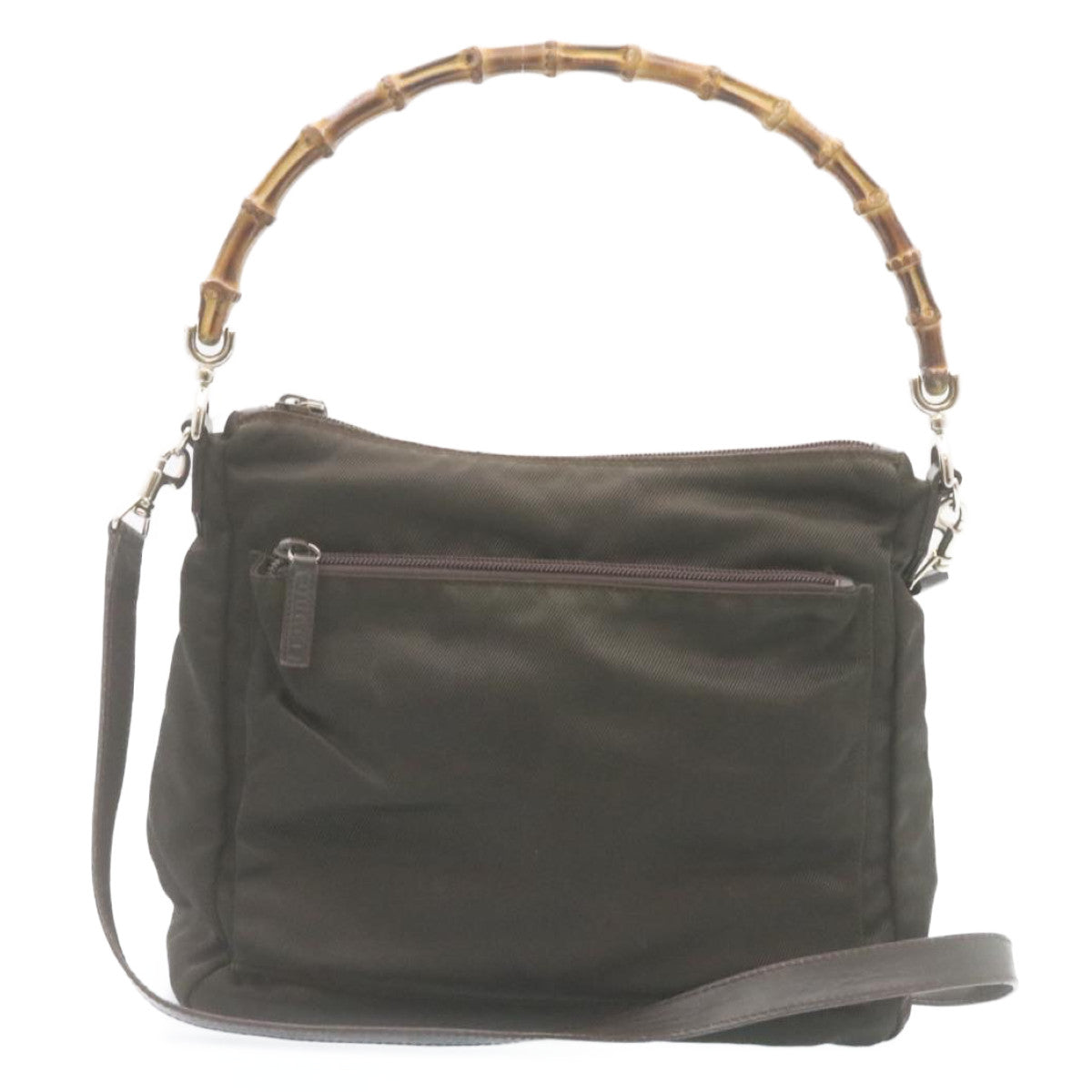 GUCCI Bamboo 2Way Shoulder Bag Nylon Dark Brown  ki1593