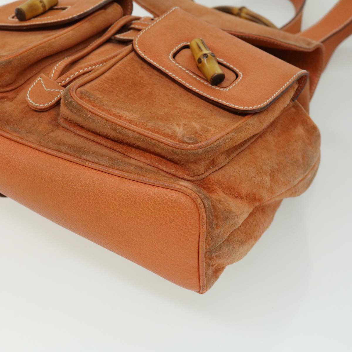 GUCCI Bamboo Backpack Suede Leather Orange th3041