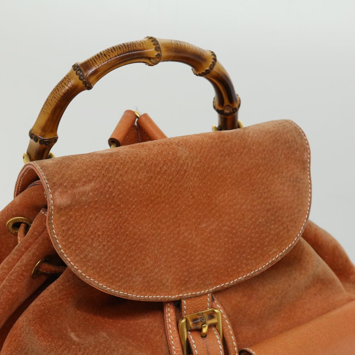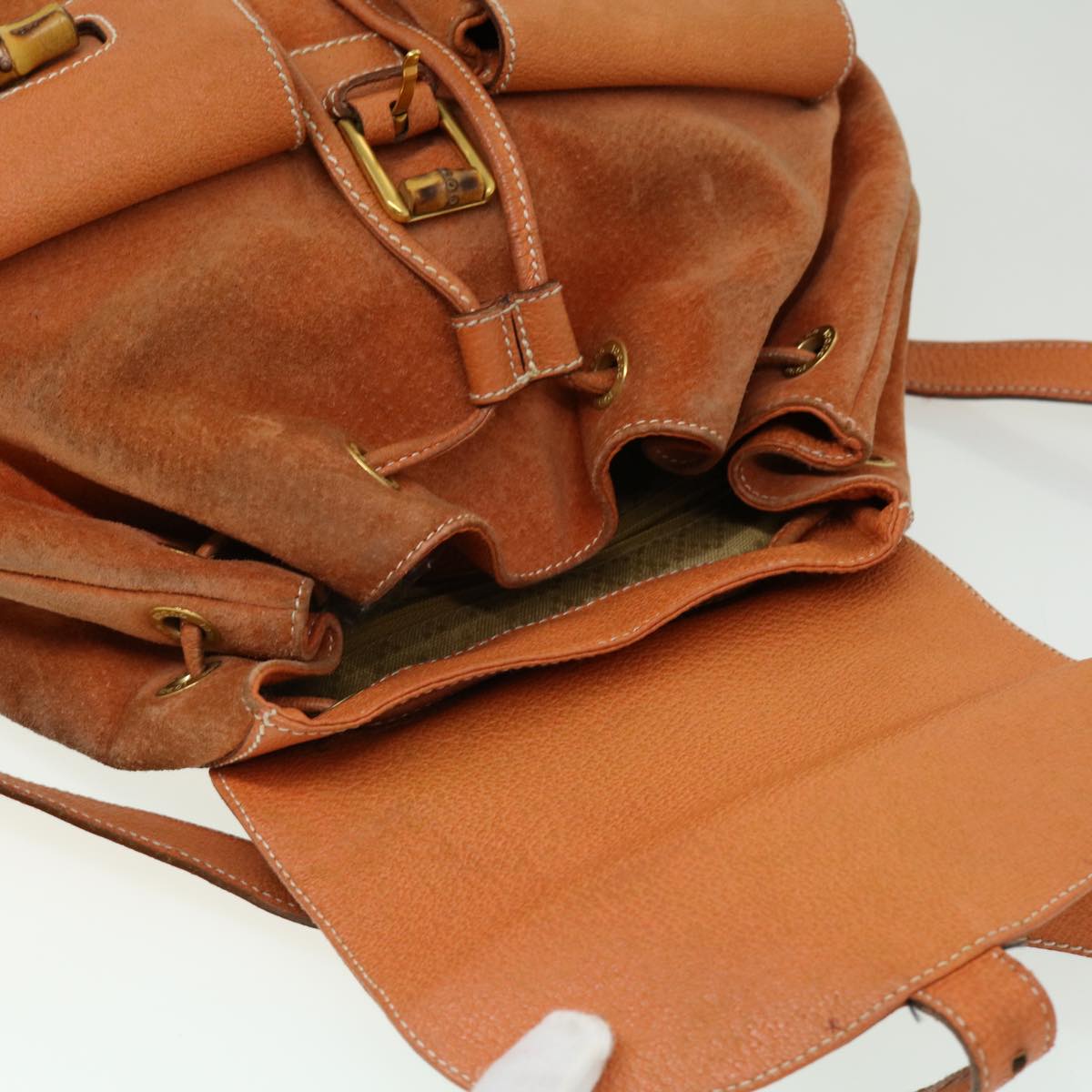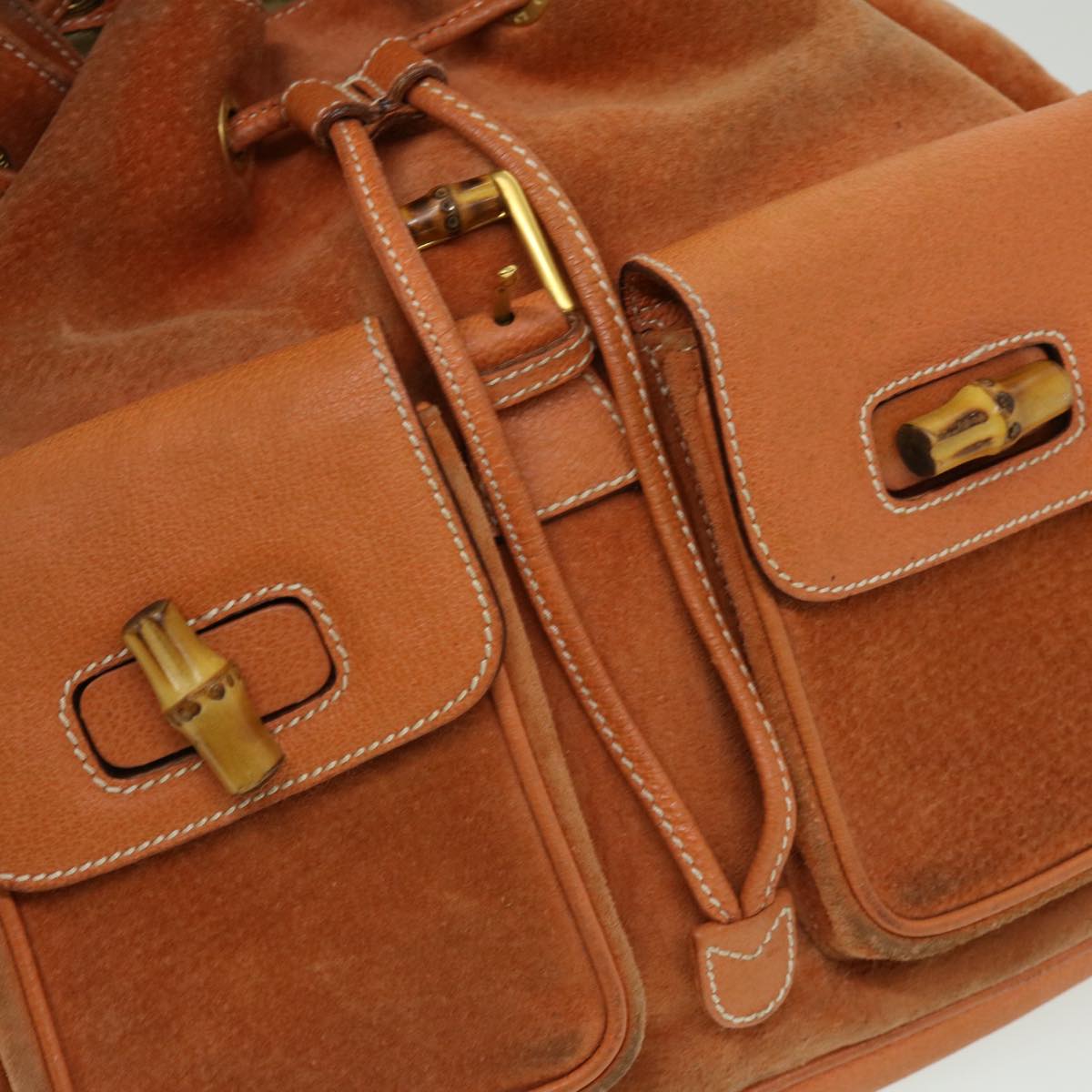 GUCCI Bamboo Backpack Suede Leather Orange Auth th3041