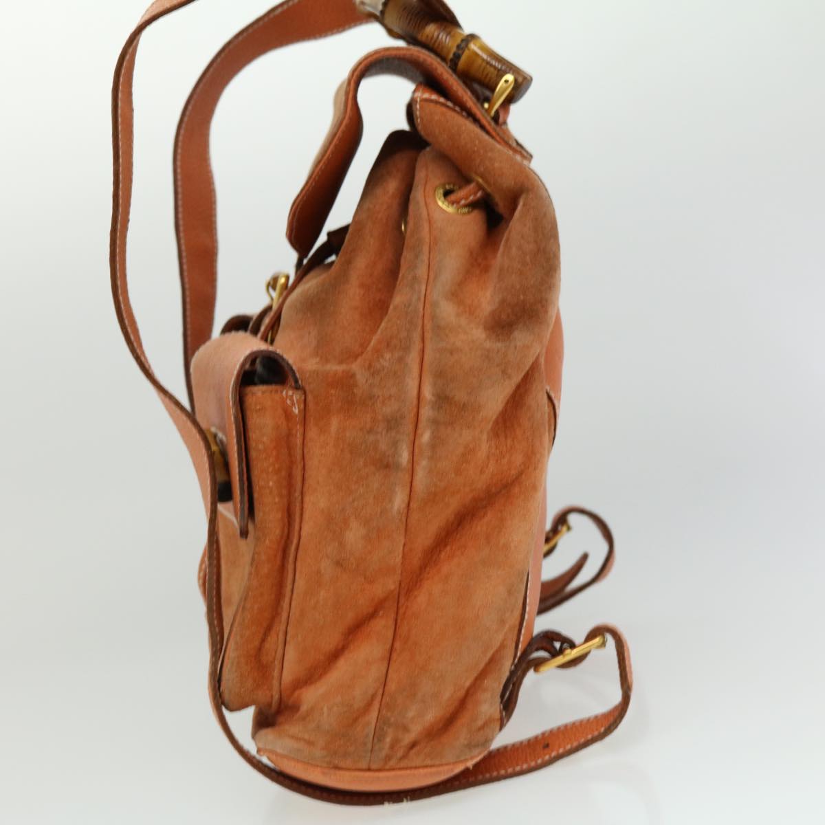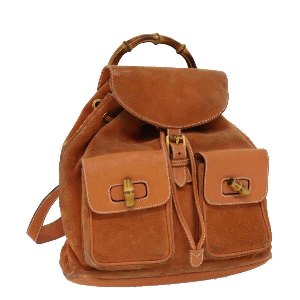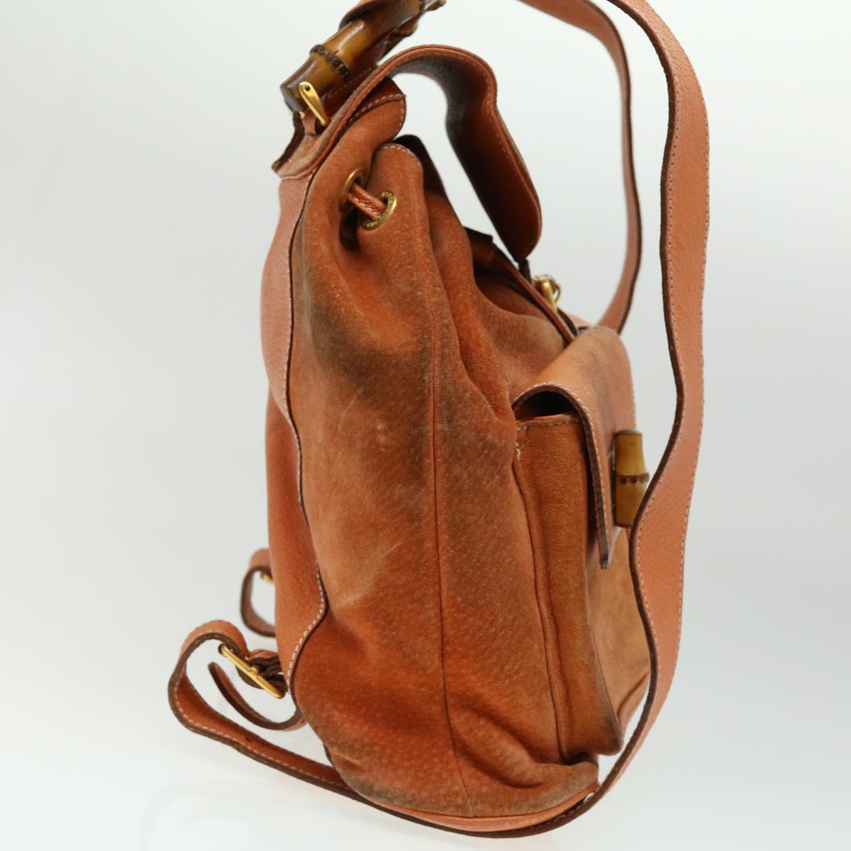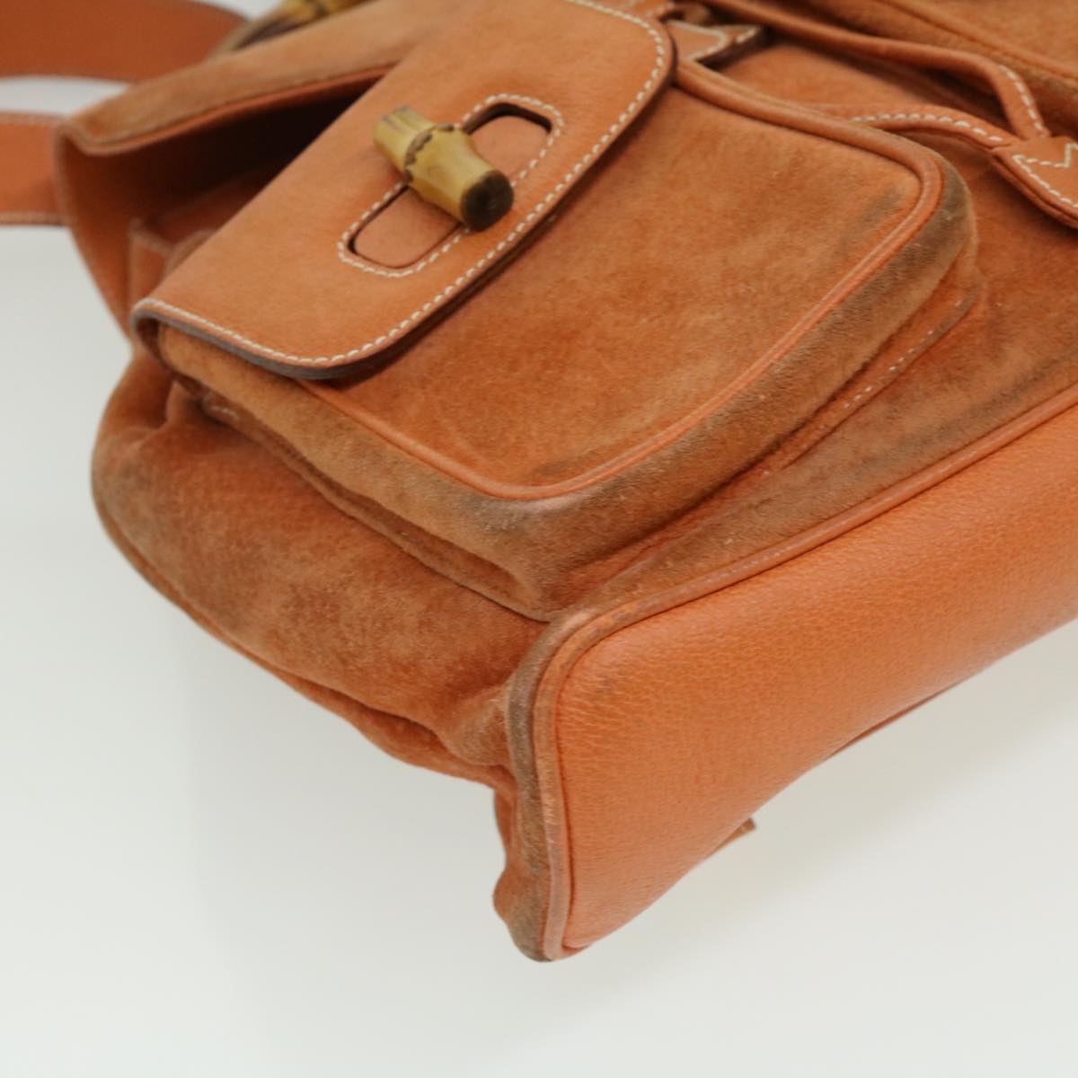 GUCCI Bamboo Backpack Suede Leather Orange Auth th3041