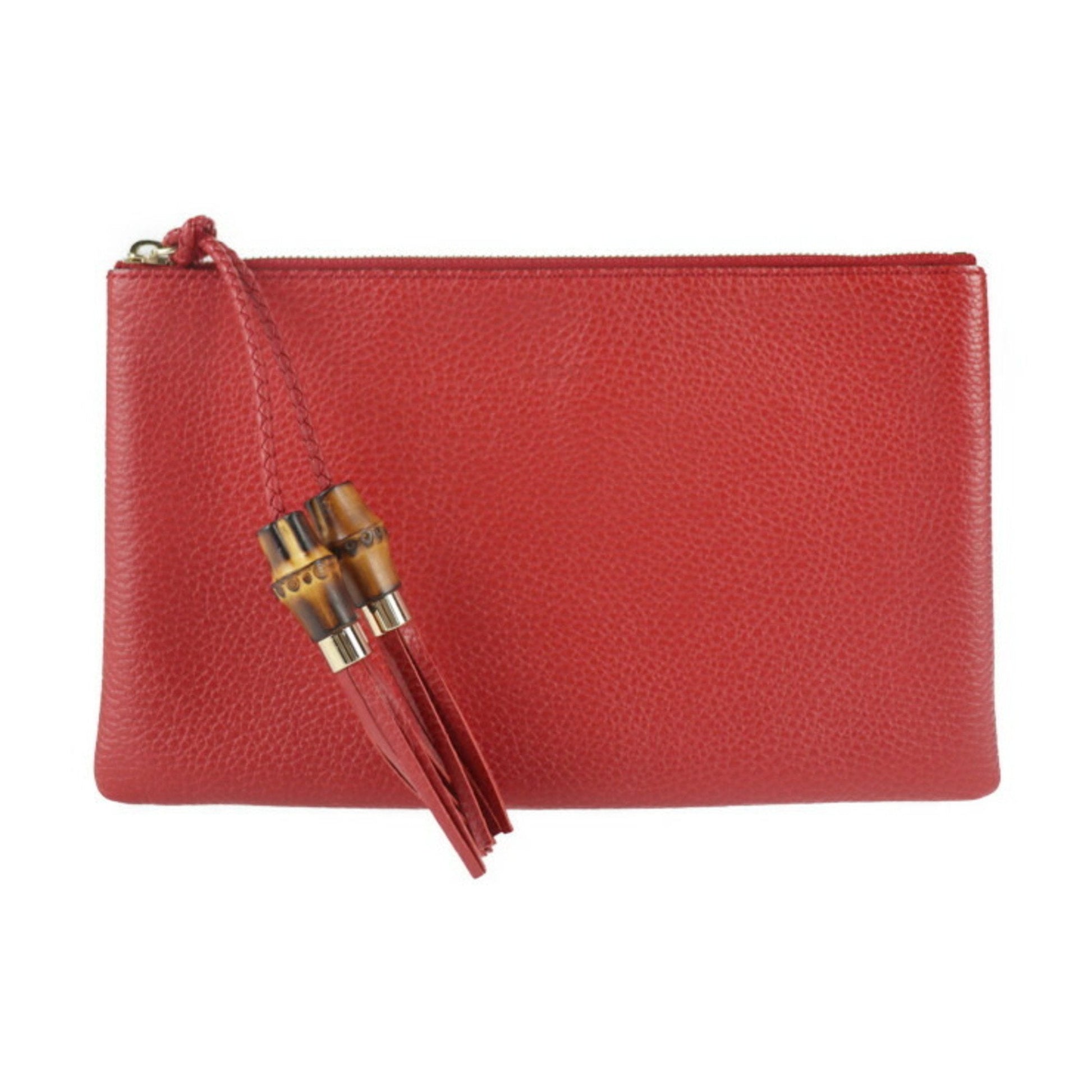 Gucci Bamboo Clutch Bag 449652 Leather Red Tassel Second