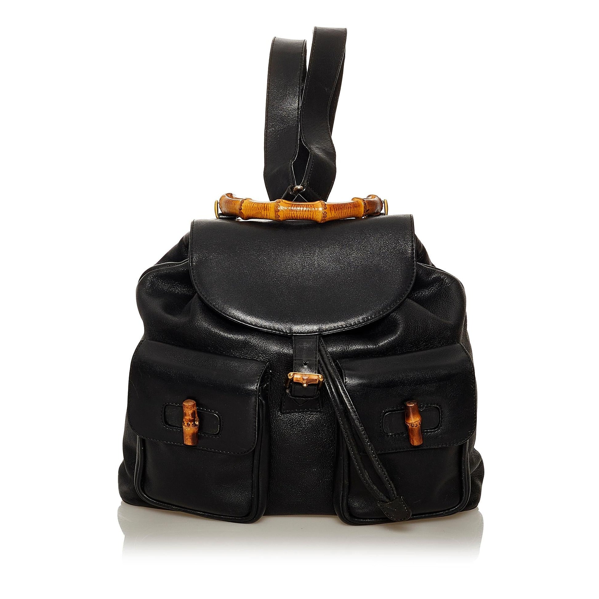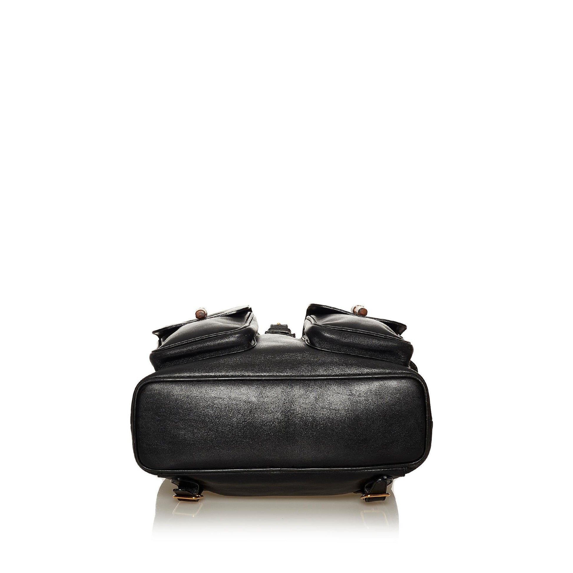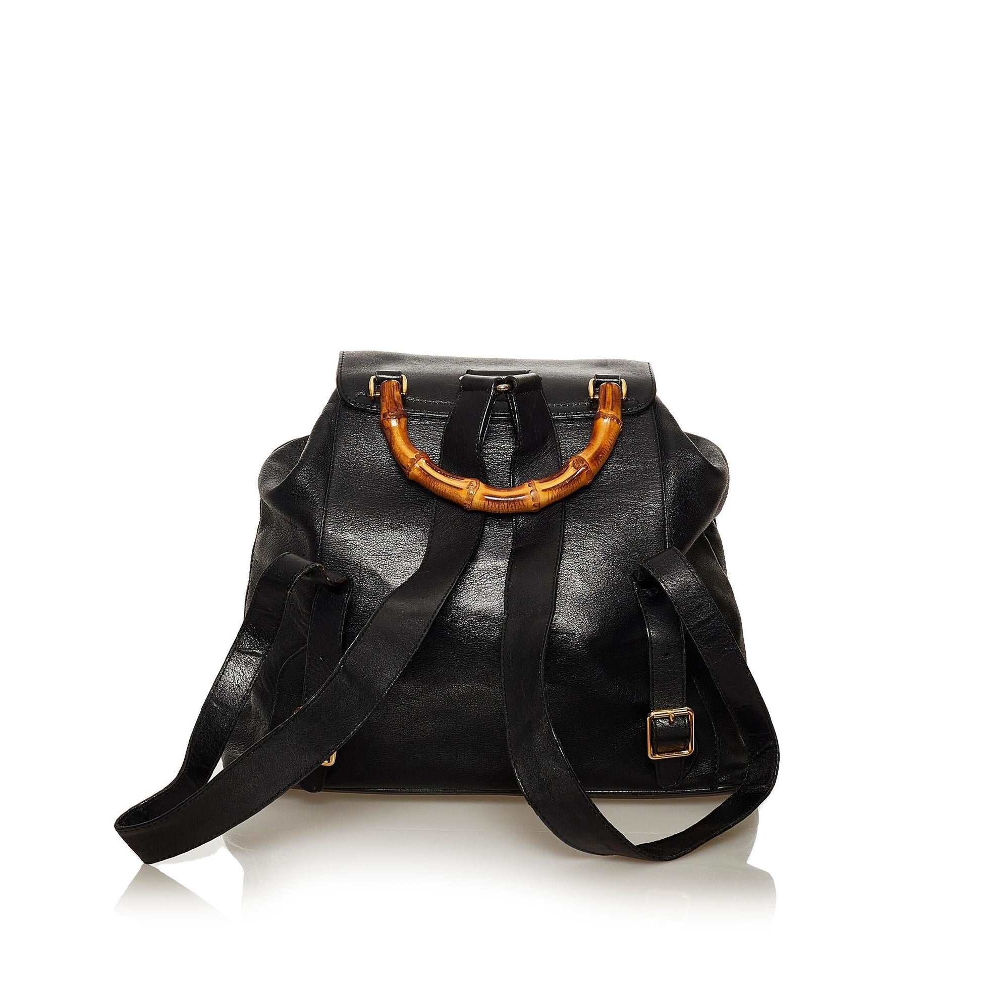 Gucci Bamboo Drawstring Leather Backpack (SHG-29212)