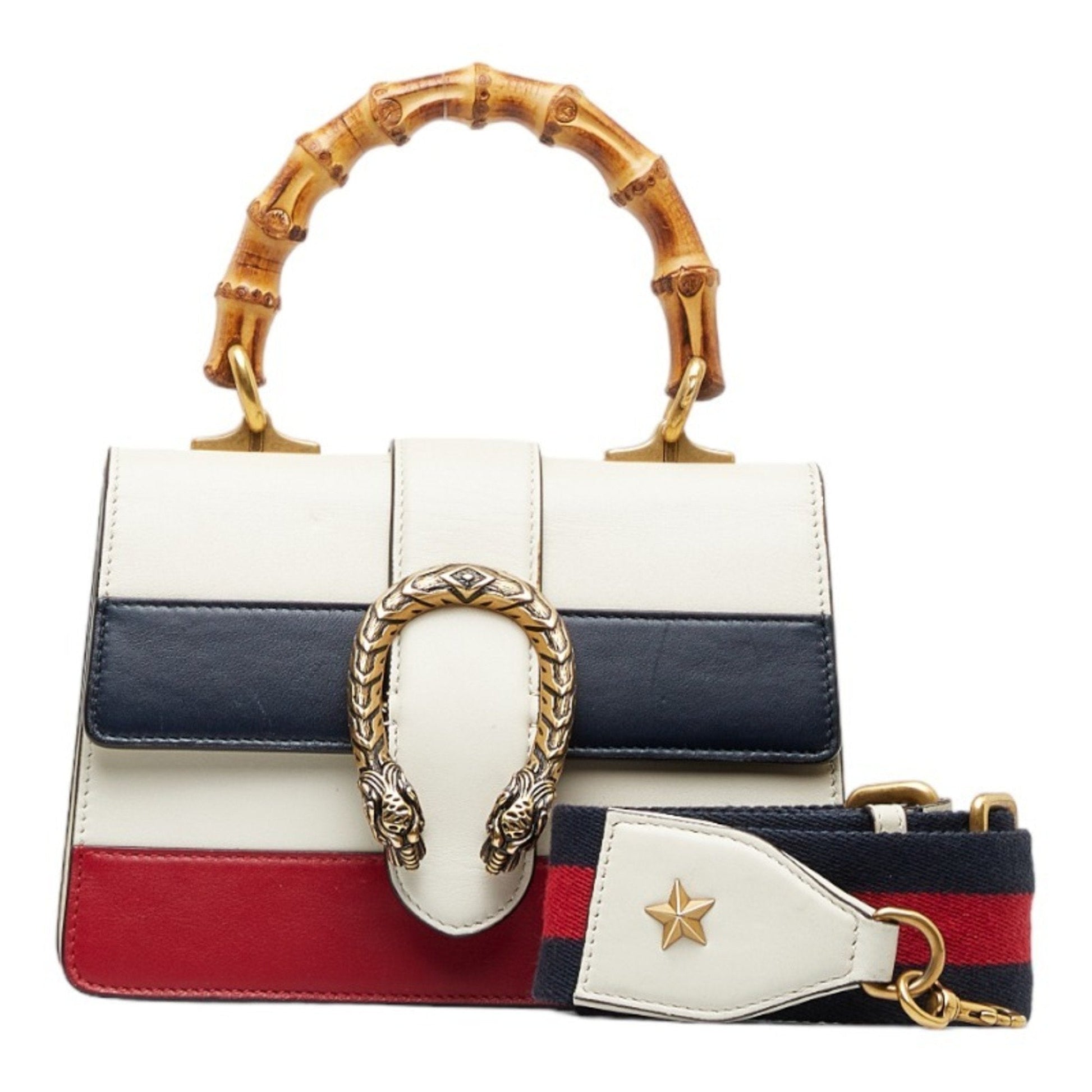 Gucci Bamboo Duonissos Handbag Shoulder Bag White Multicolor Leather Women's GUCCI