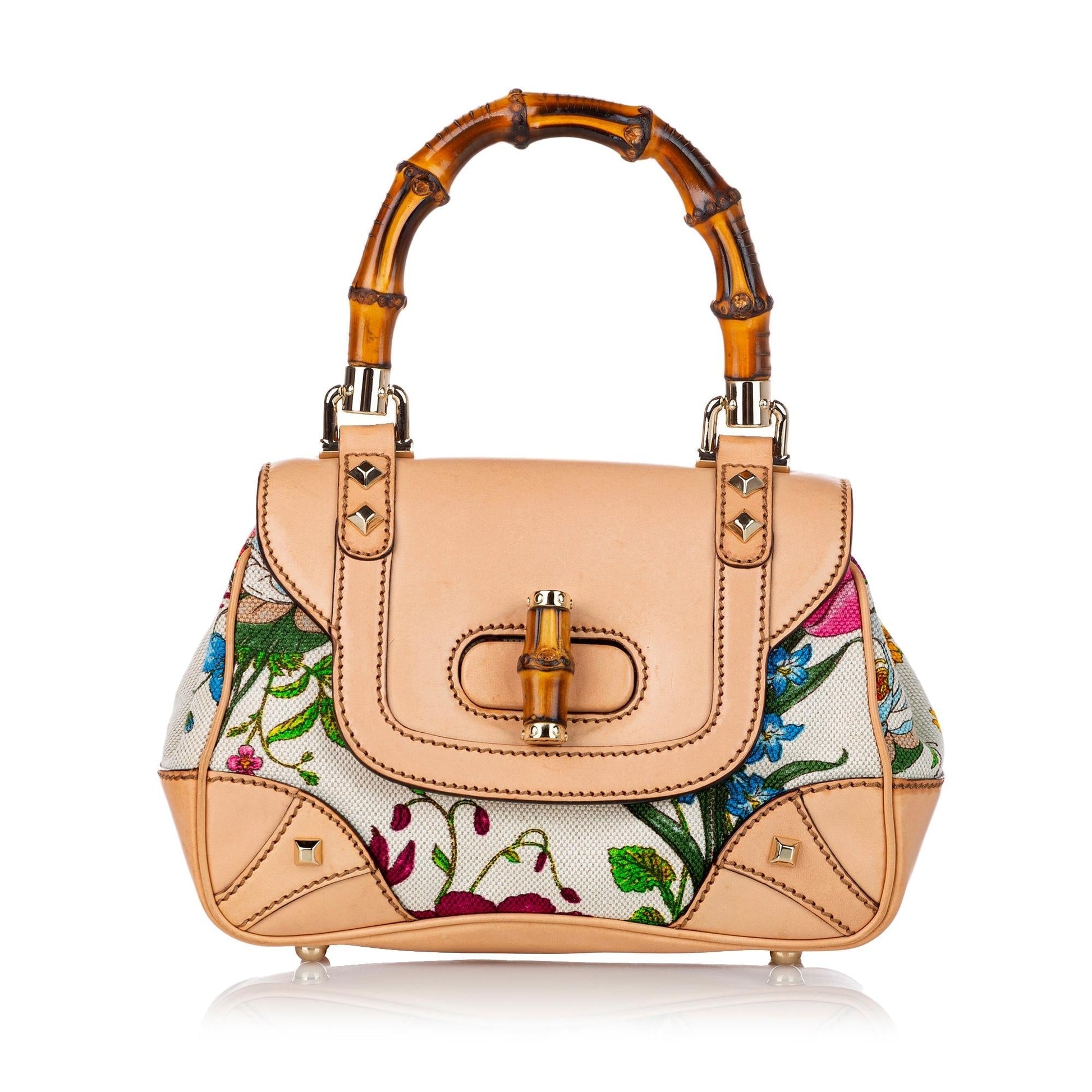 Gucci Bamboo Flora Nailhead Canvas Handbag (SHG-30469)