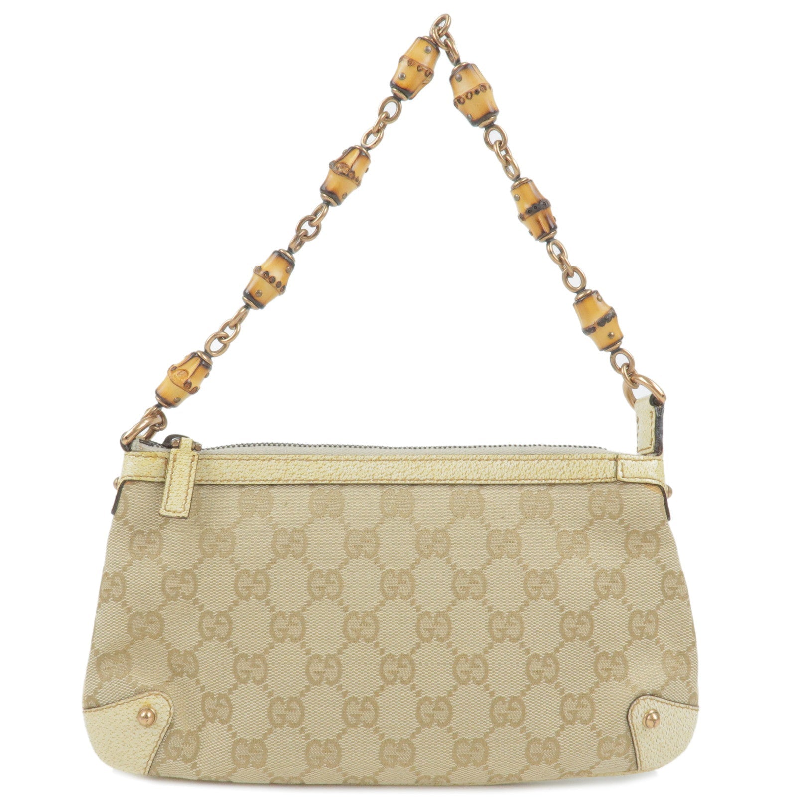 GUCCI Bamboo GG Canvas Leather Pouch Purse Beige Ivory 124289