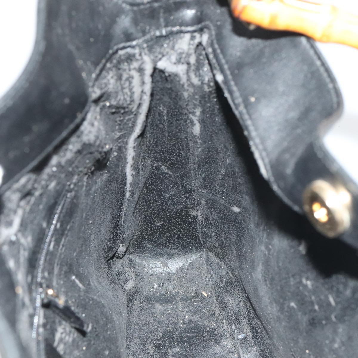GUCCI Bamboo Hand Bag Leather 2way Black Gold 001 1638  th5433