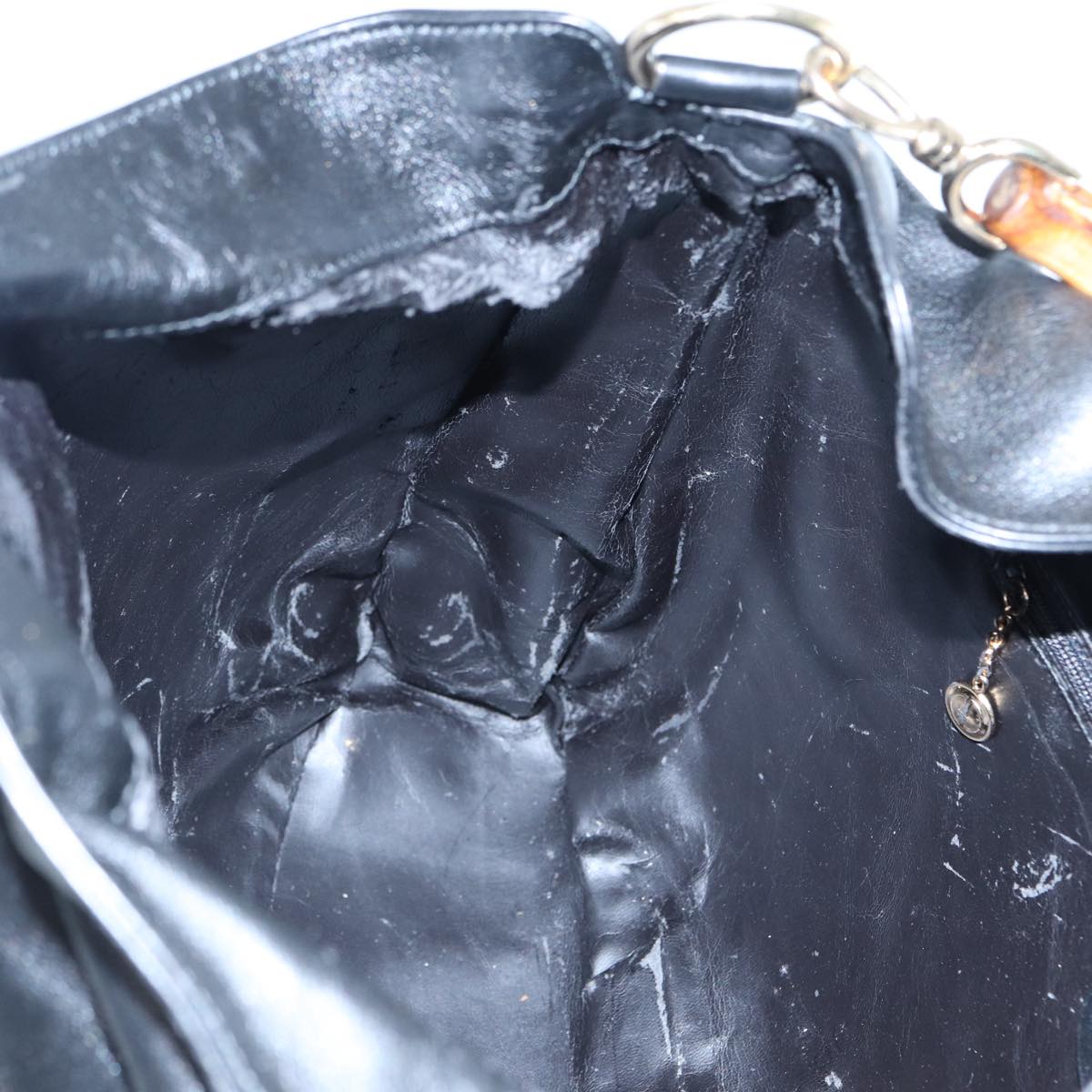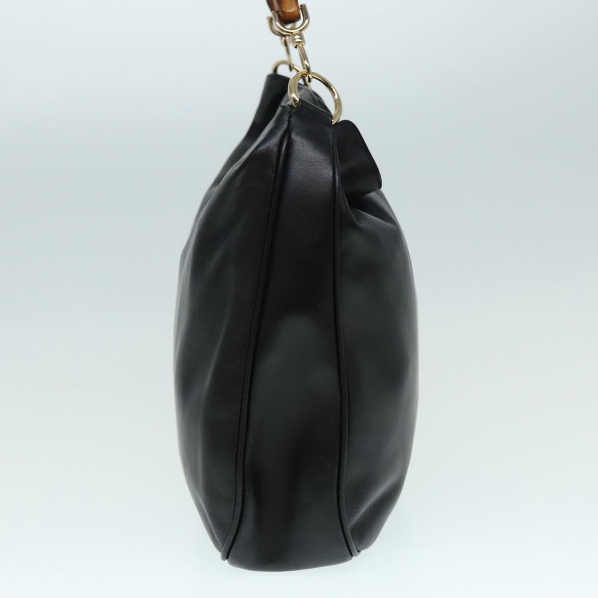GUCCI Bamboo Hand Bag Leather 2way Black Gold 001 2058 1577 0  88416