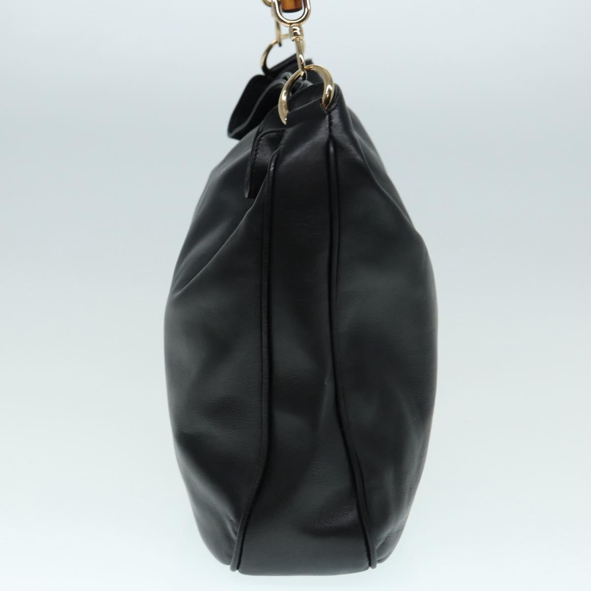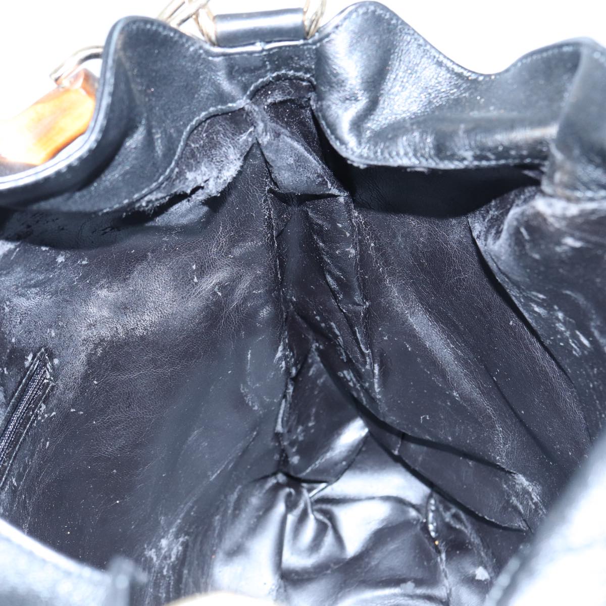 GUCCI Bamboo Hand Bag Leather 2way Black Gold 001 2058 1577 0 88416