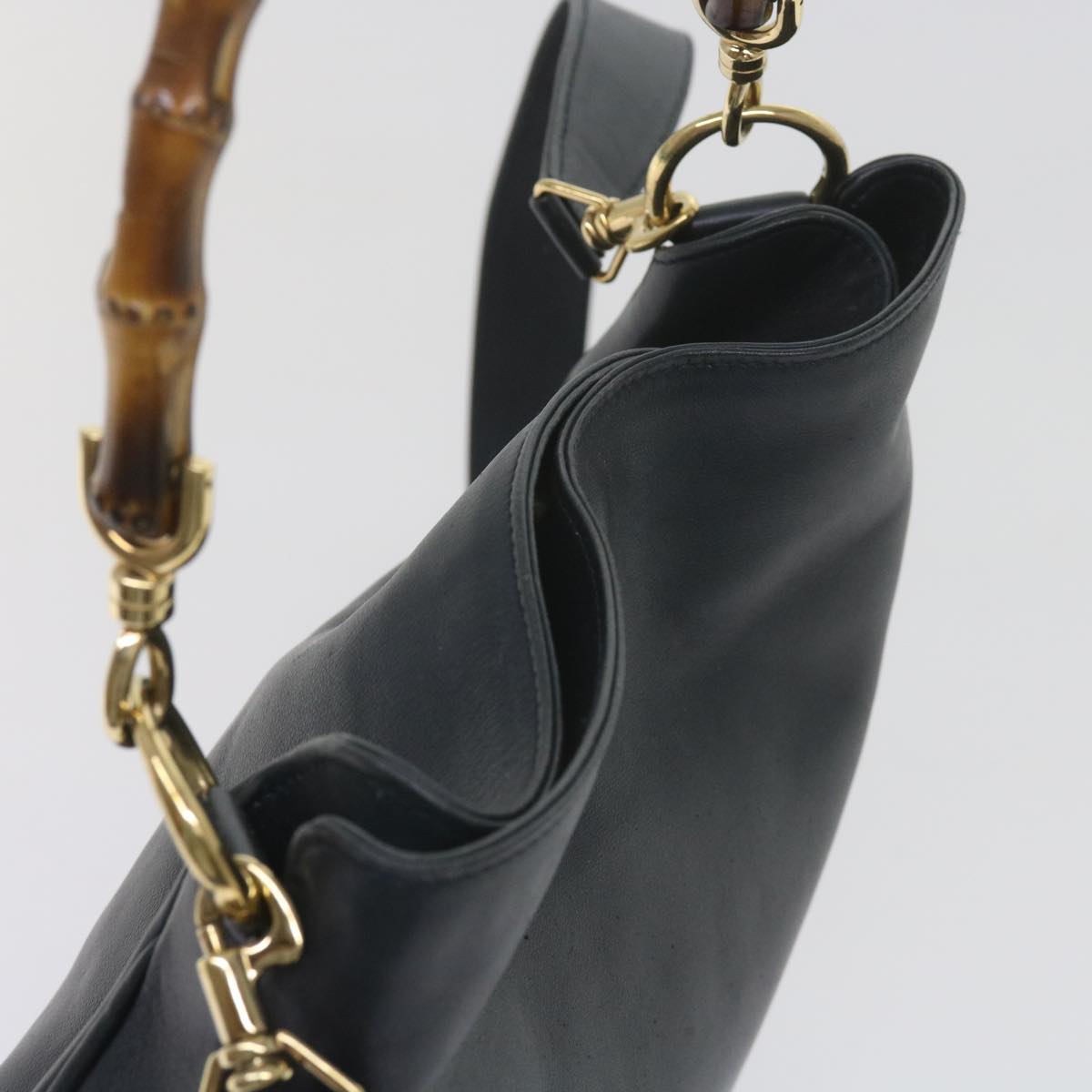 GUCCI Bamboo Hand Bag Leather 2way Navy 001 2113 1638  60686