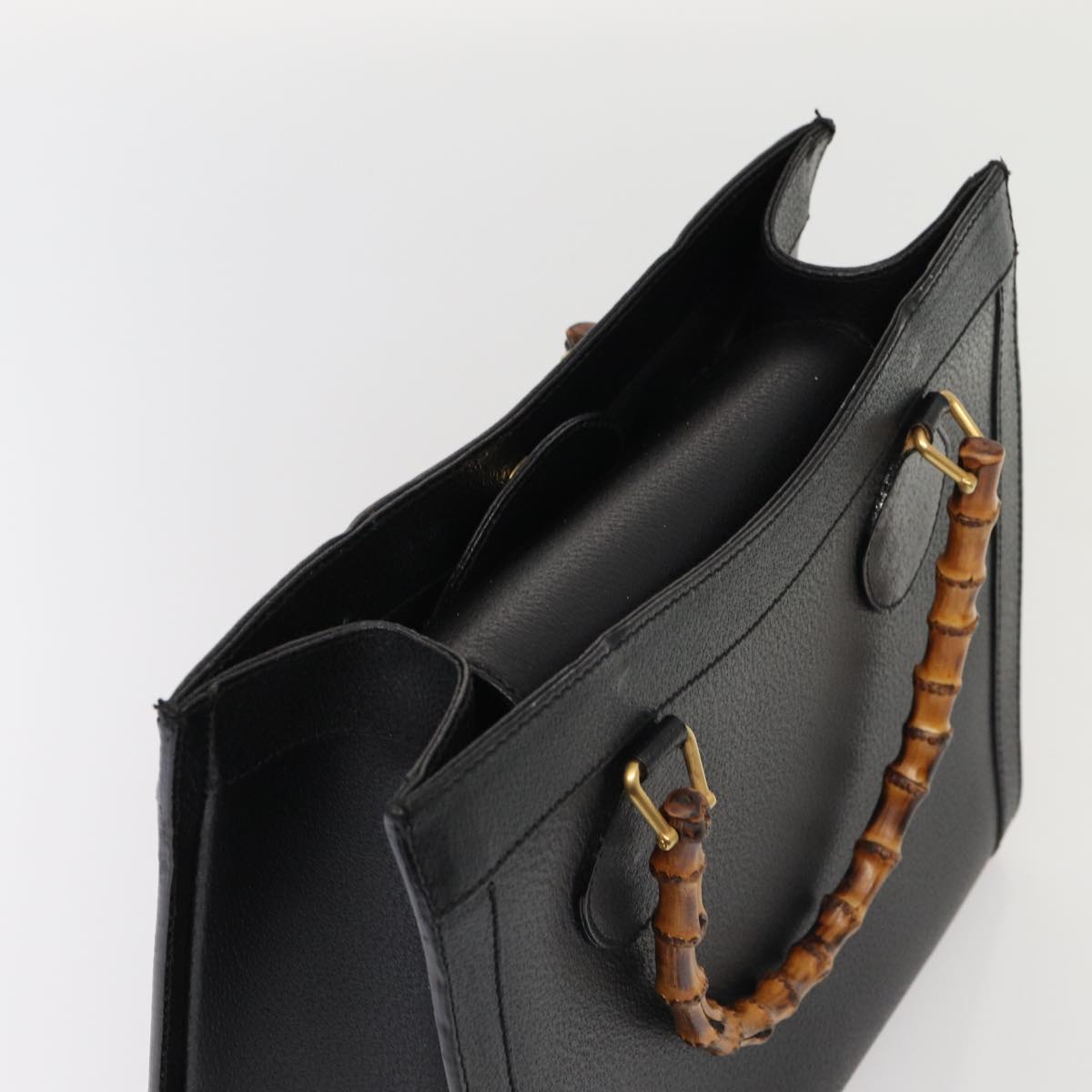GUCCI Bamboo Hand Bag Leather Black Gold 002 1096 0260 ep5357