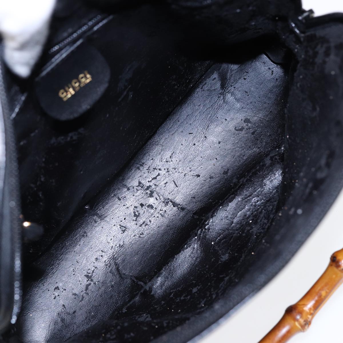 GUCCI Bamboo Hand Bag Leather Black Gold ep5486