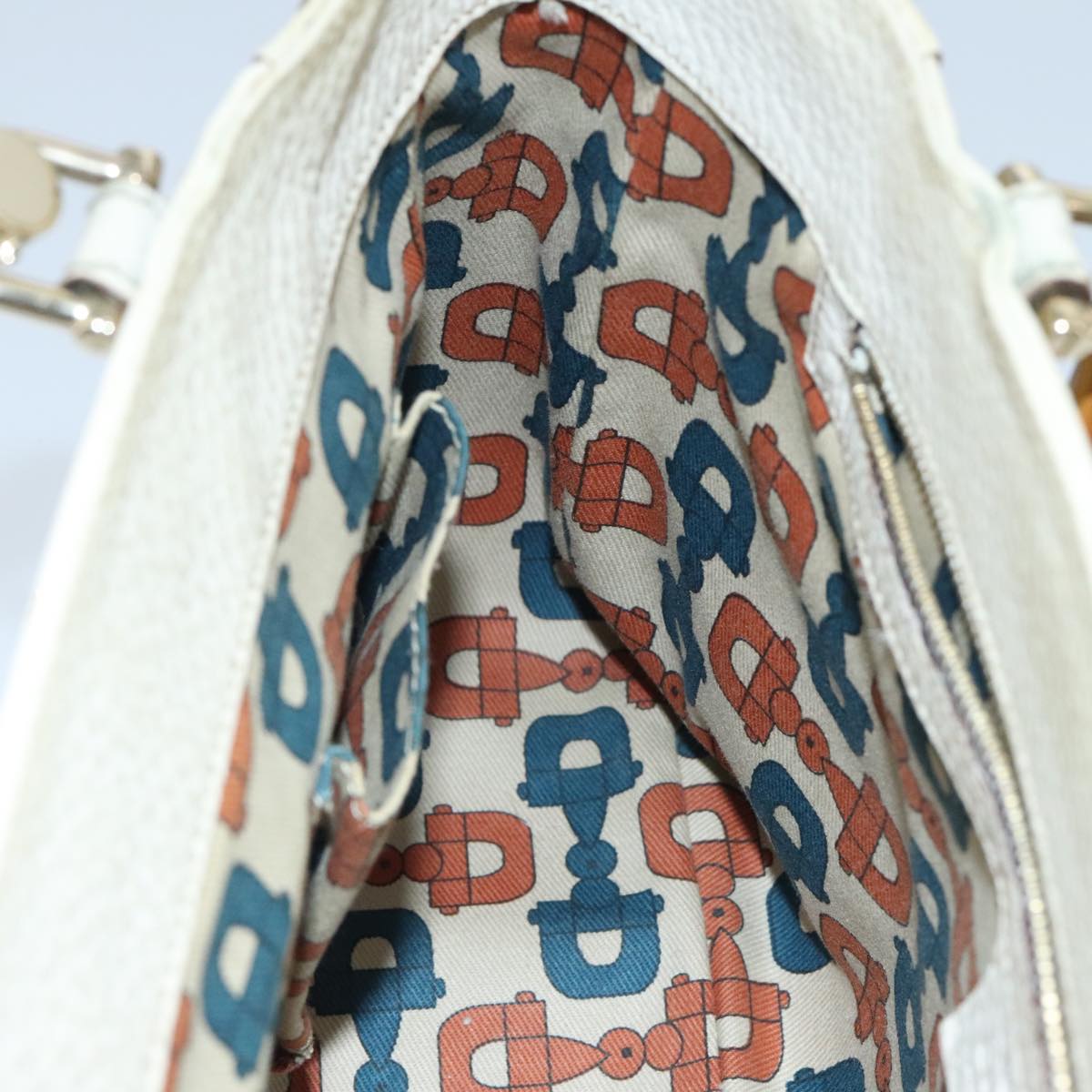 GUCCI Bamboo Hand Bag Leather White Gold 137381 ep6322
