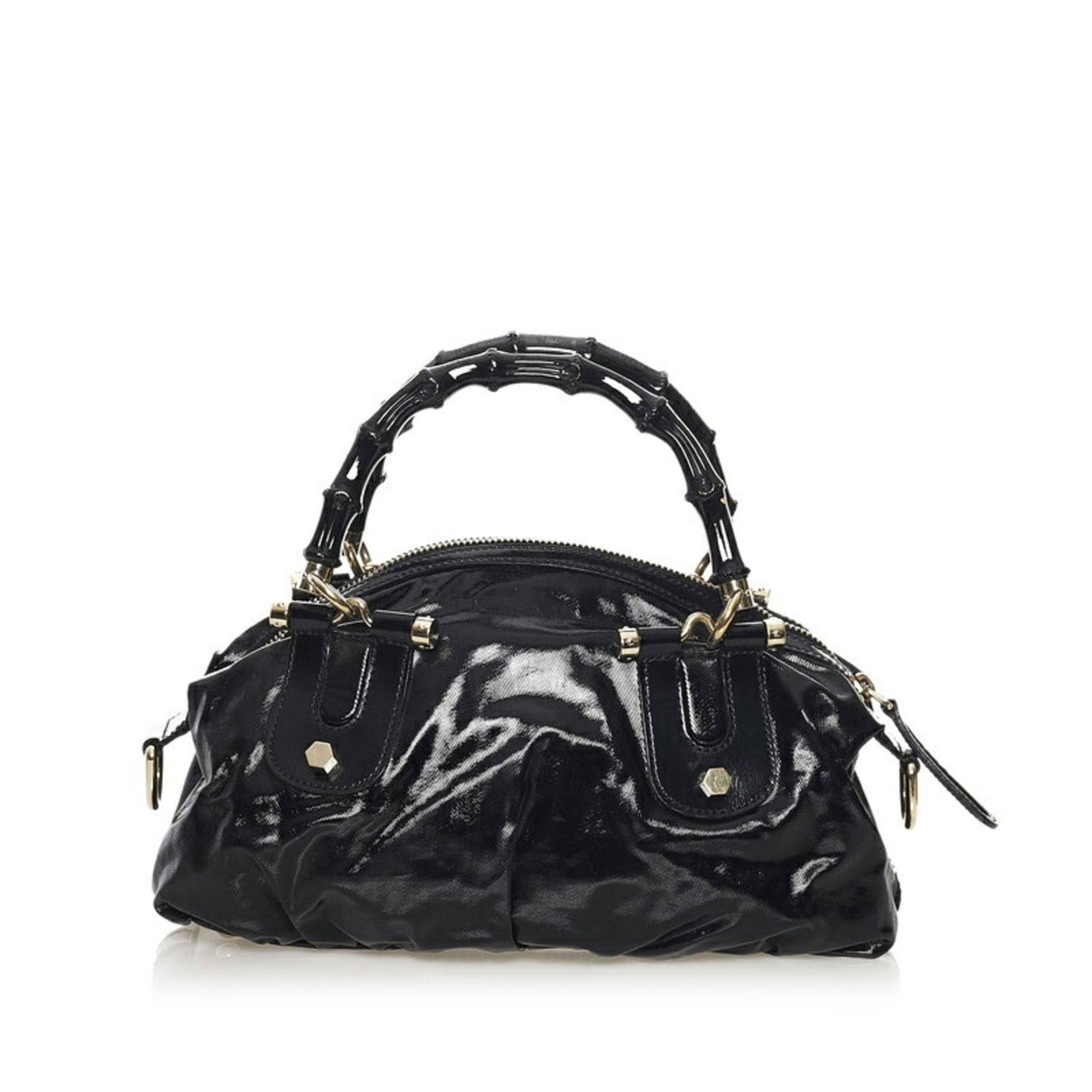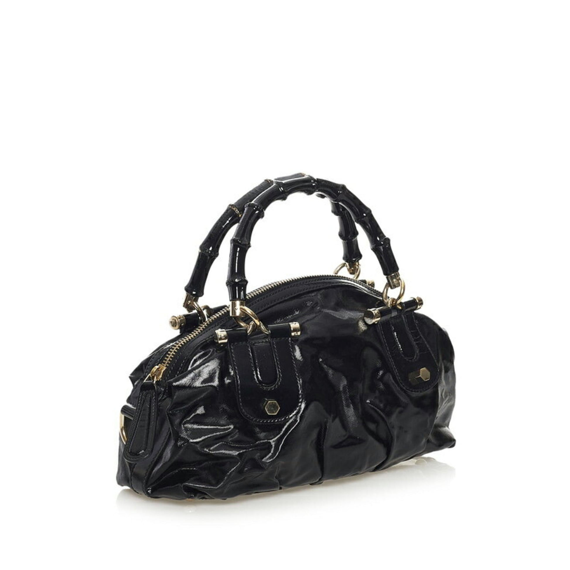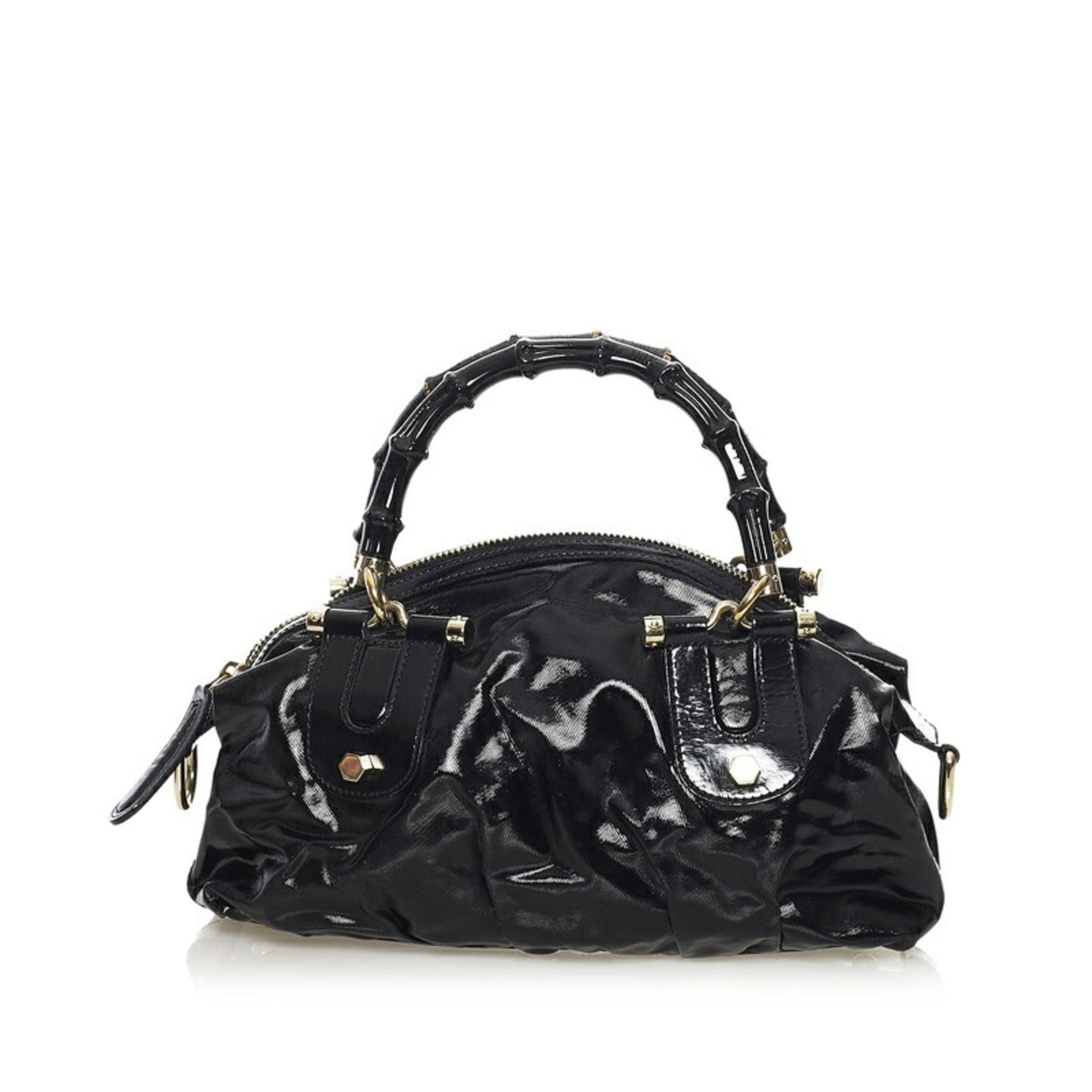 Gucci Bamboo Handbag Shoulder Bag 2way 189869 Black PVC Leather Ladies