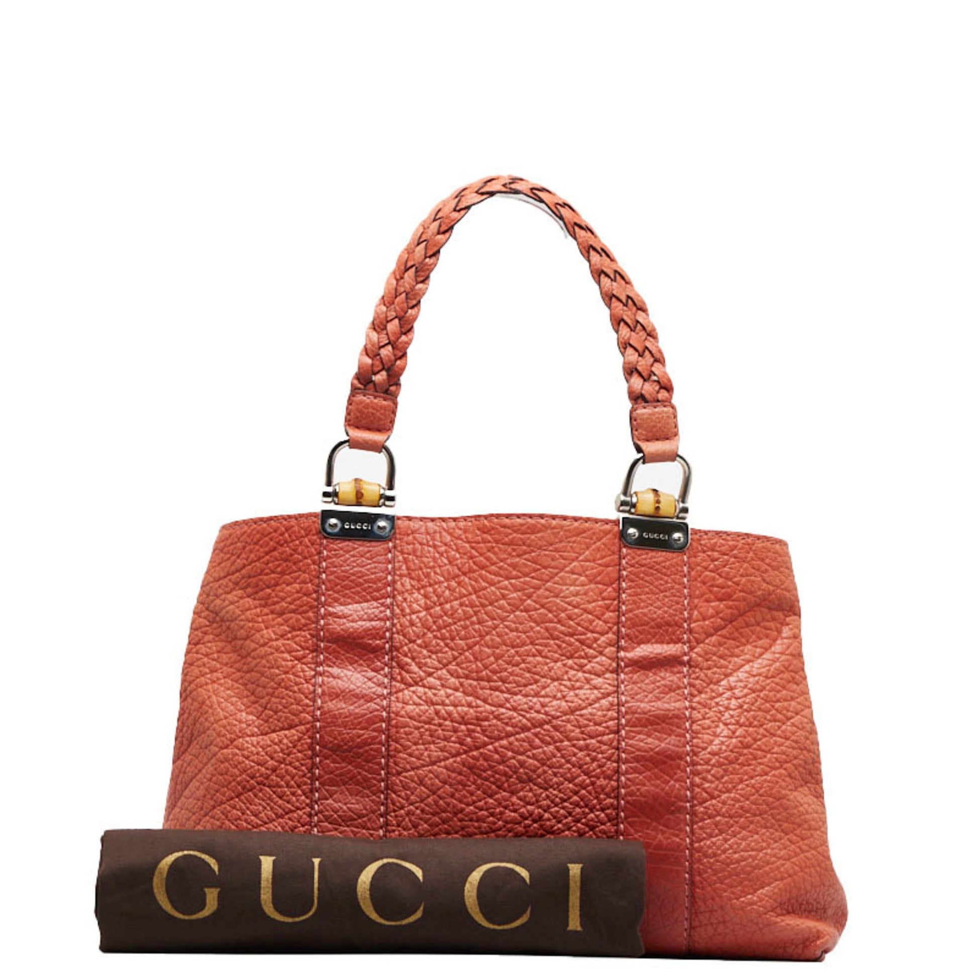 GUCCI bamboo handle handbag tote bag 232947 orange leather ladies