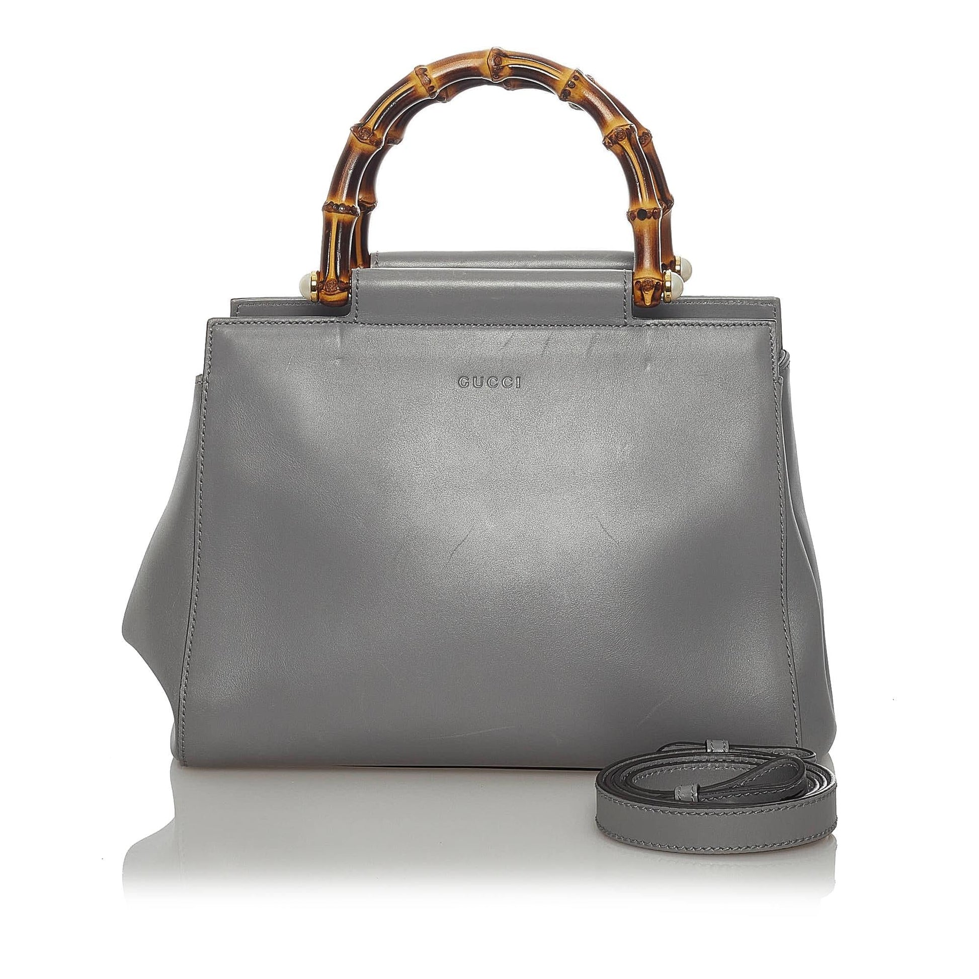Gucci Bamboo Nymphaea Leather Satchel (SHG-28656)