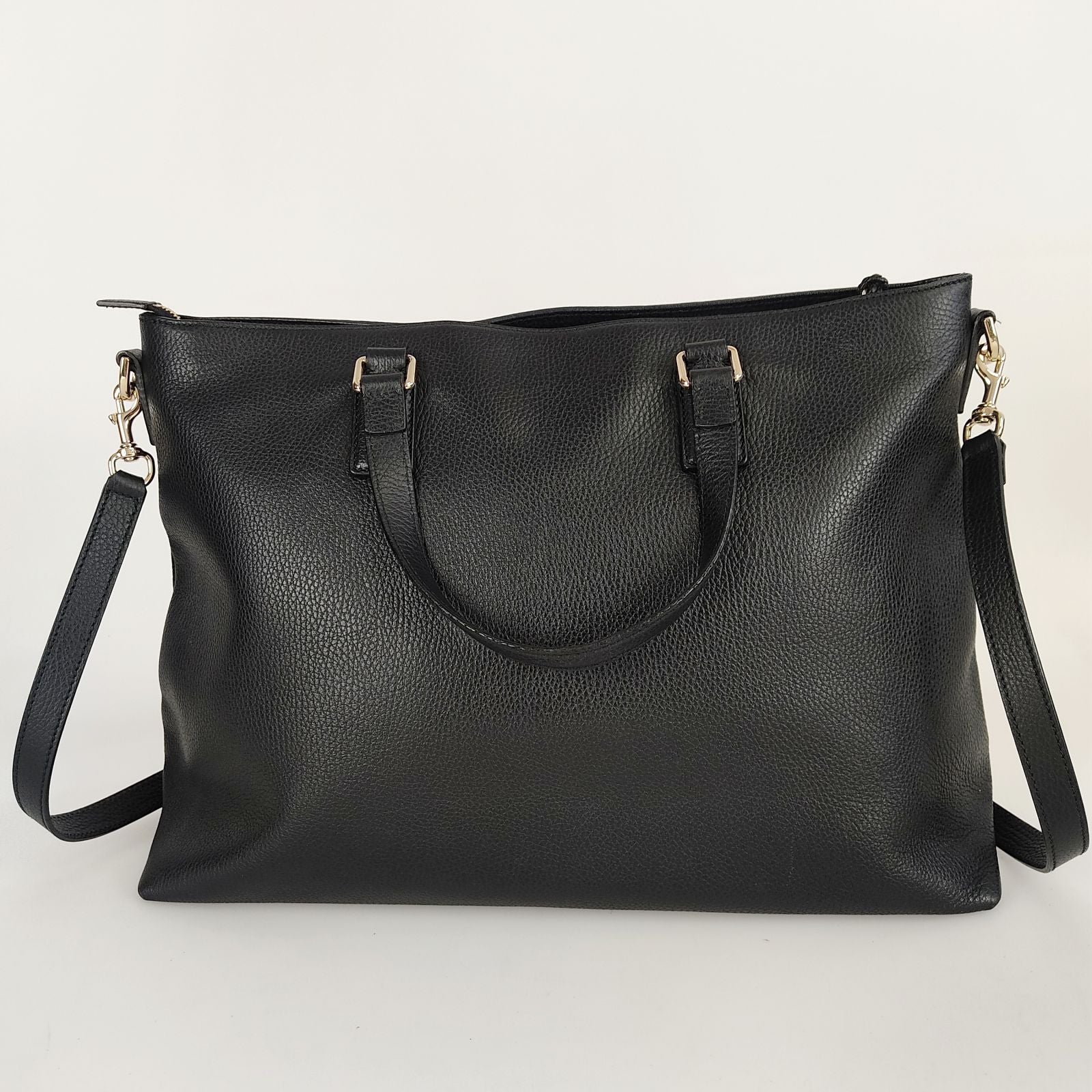 It is a maxi handbag, equipped with a removable but not adjustable shoulder strap.