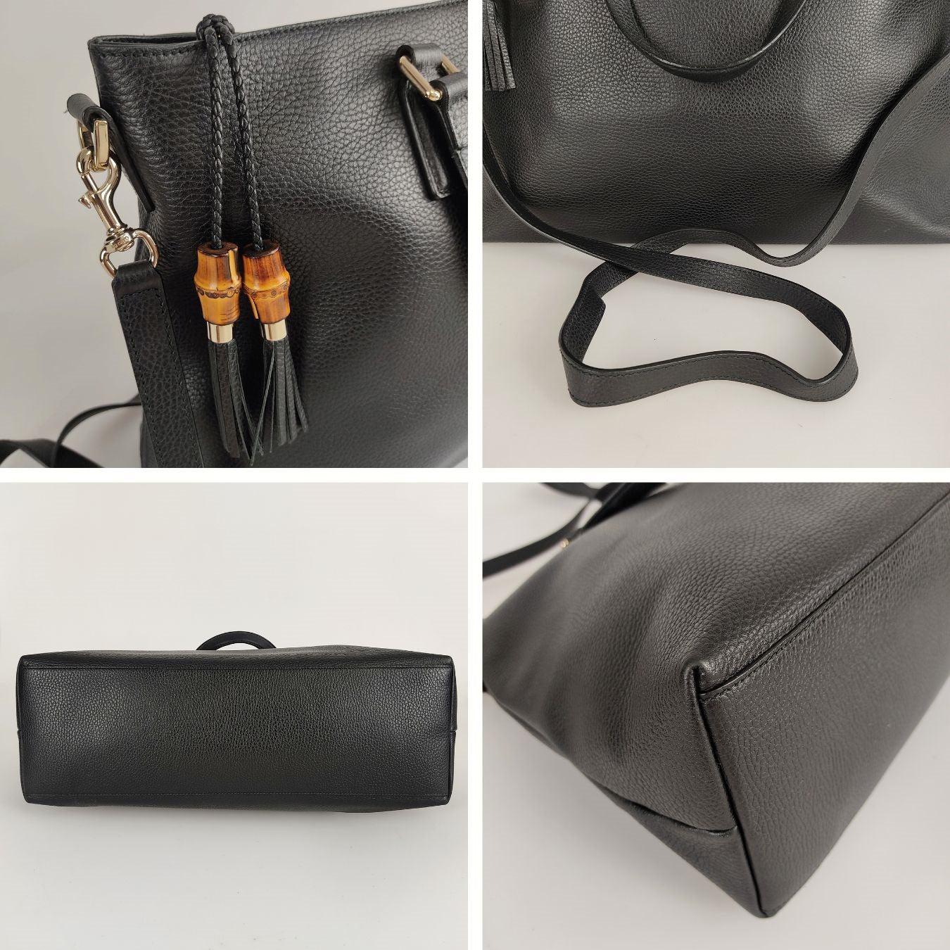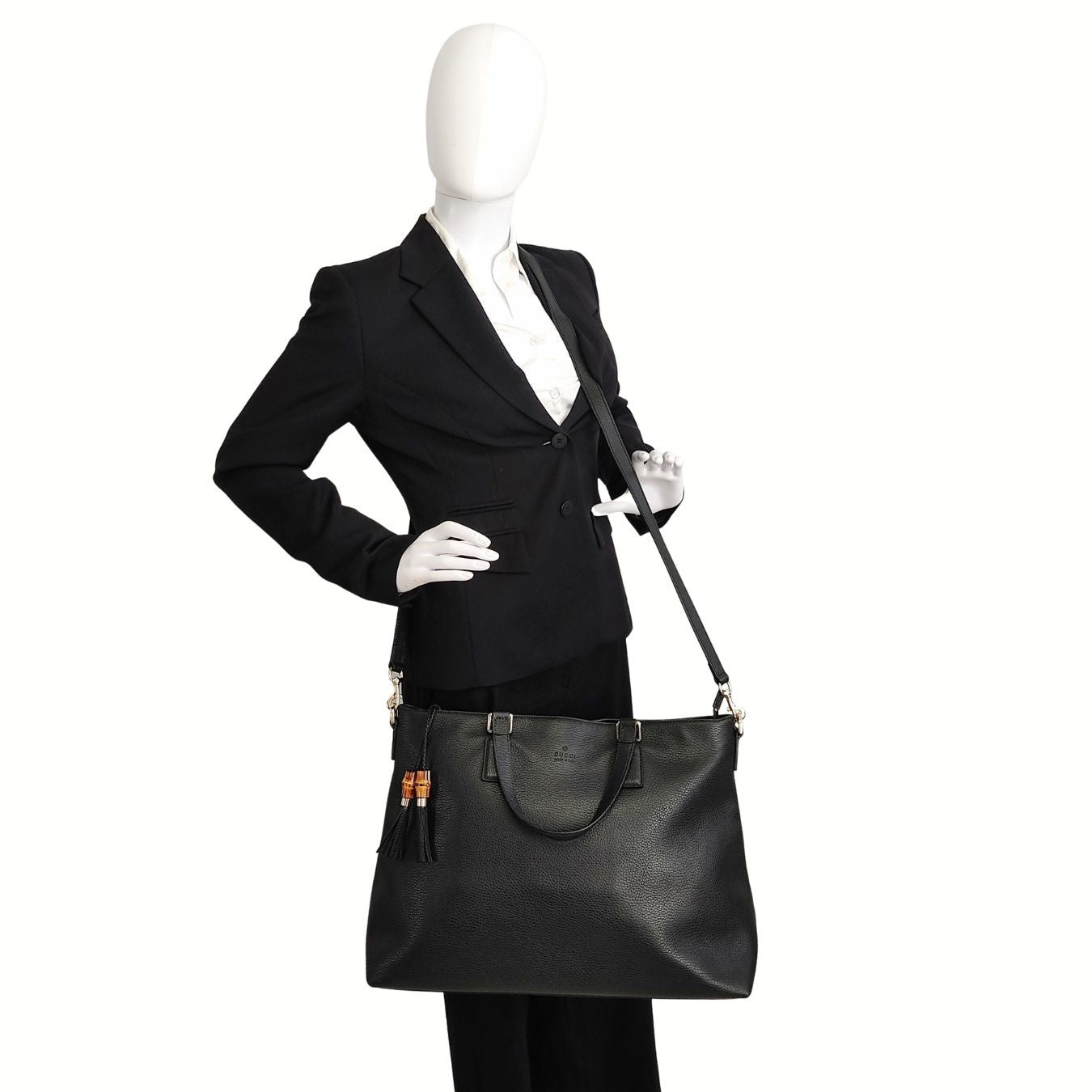 Gucci Bamboo Shopper maxi shoulder bag in black leather.