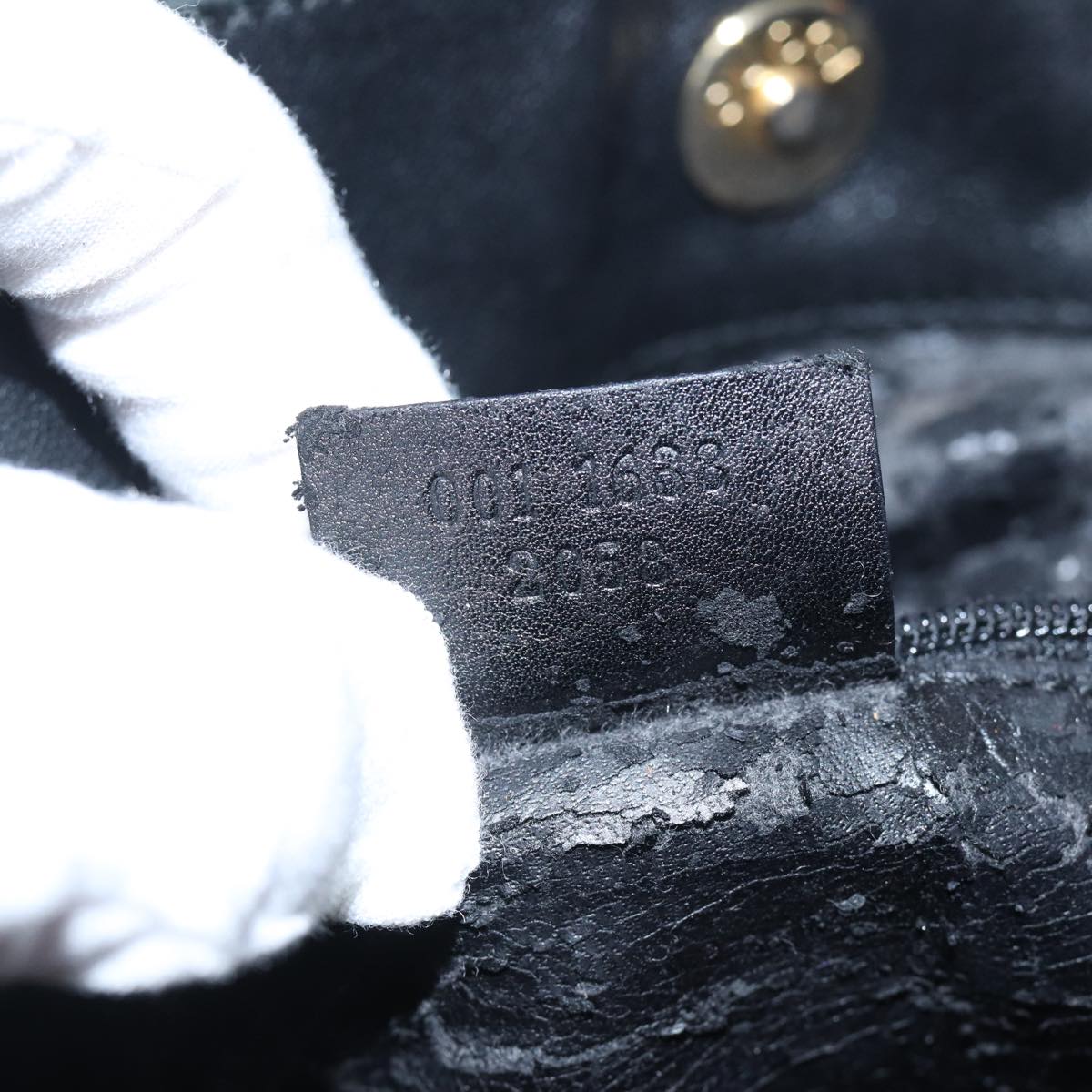 GUCCI Bamboo Shoulder Bag Leather 2way Black Gold 001 1638 2058  89140