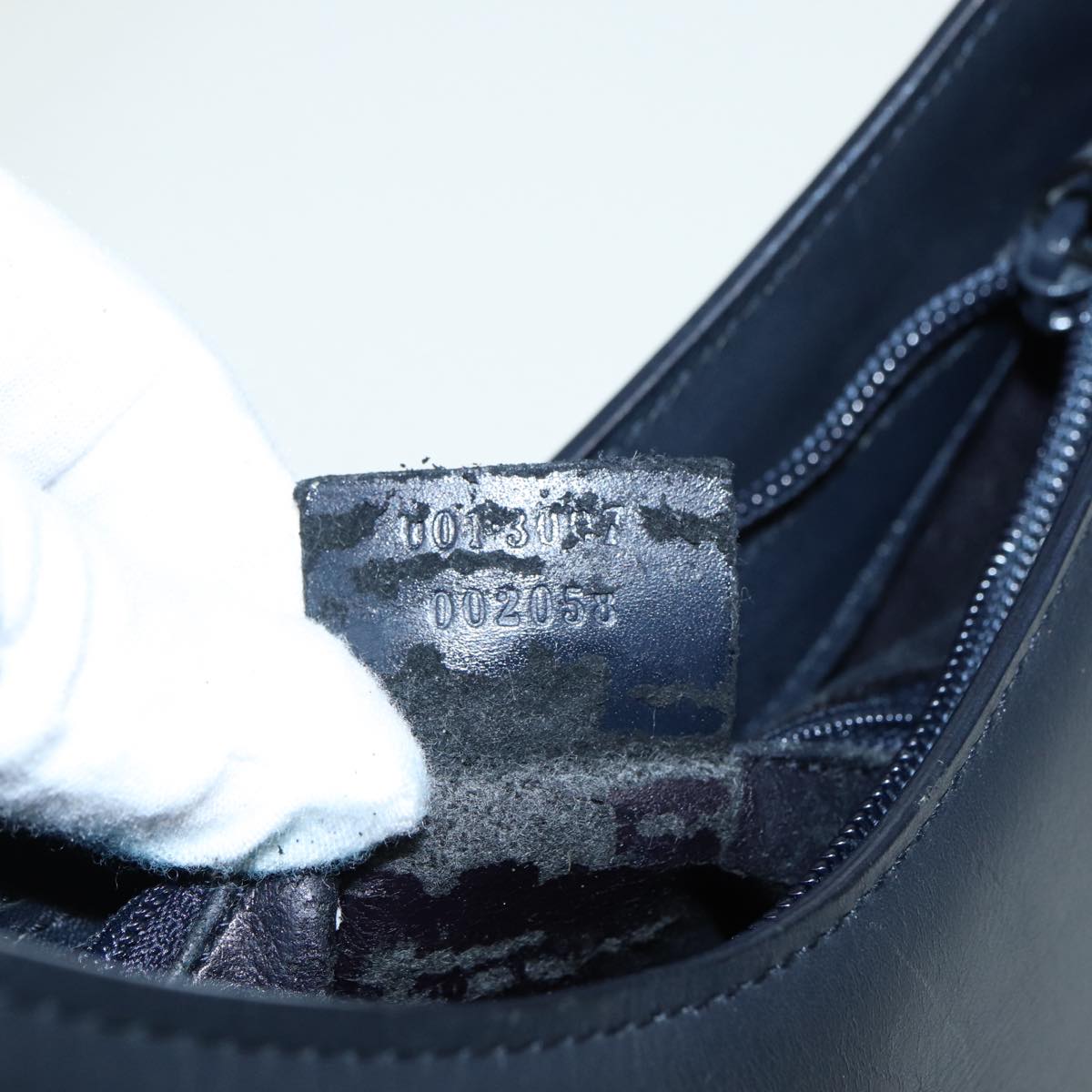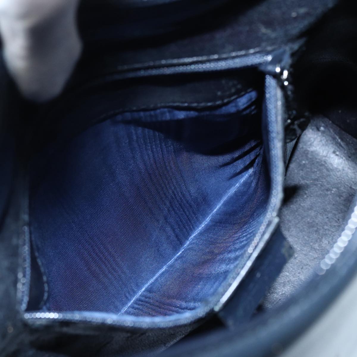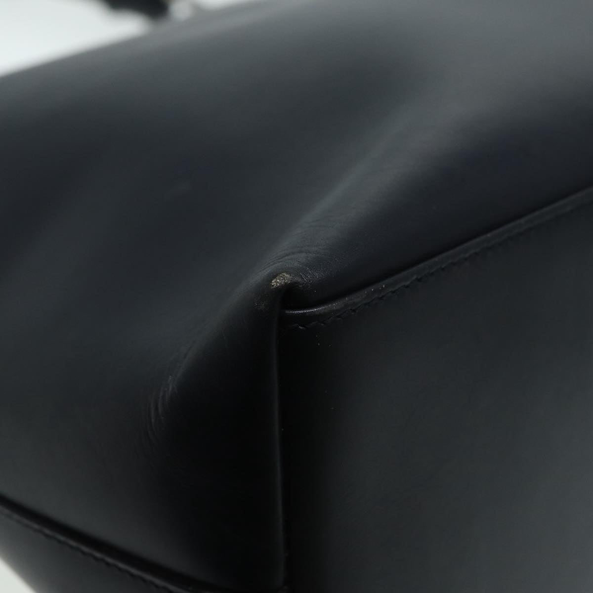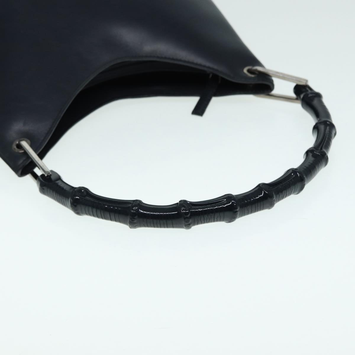 GUCCI Bamboo Shoulder Bag Leather Outlet Navy Silver  88399