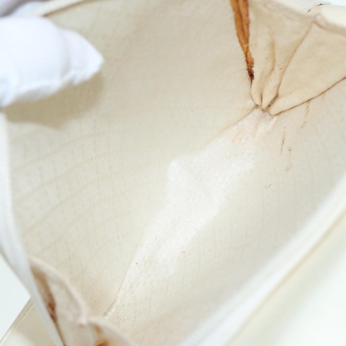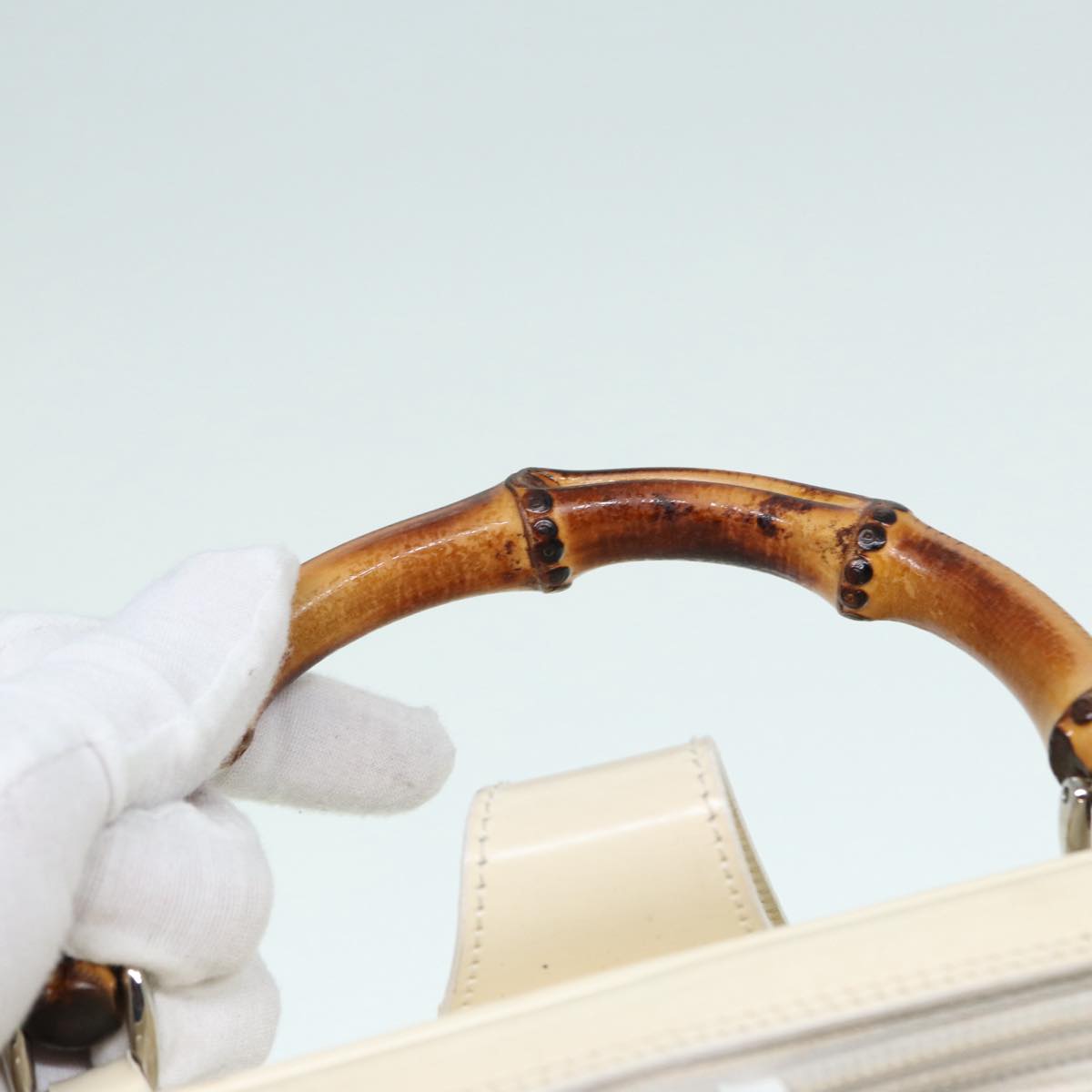 GUCCI Bamboo Shoulder Bag Nylon White Silver 003 2058 0059 5 bs17479