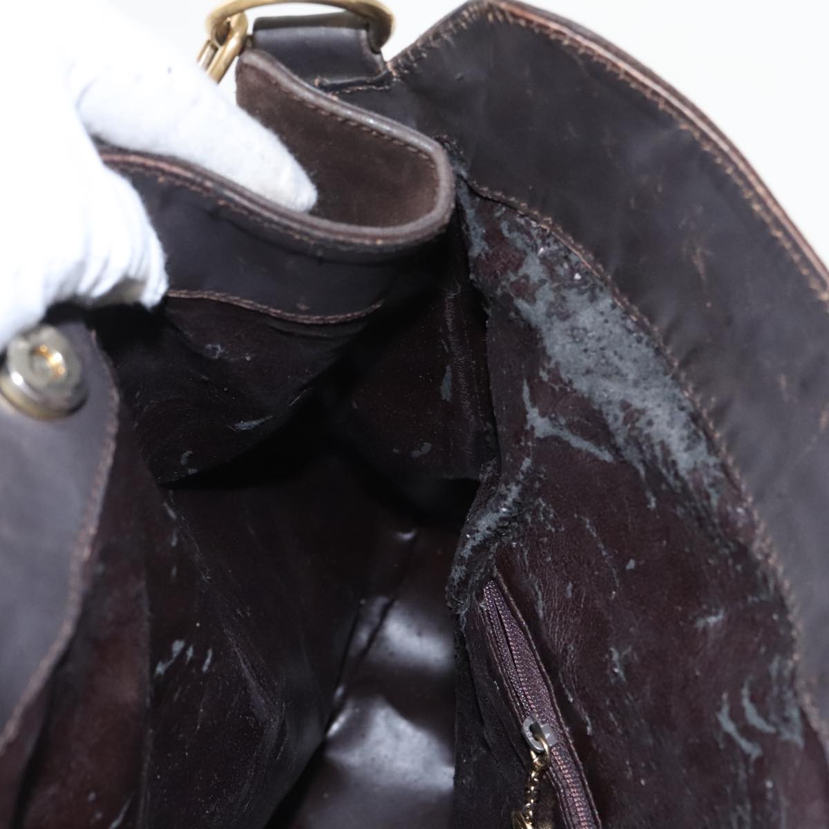 GUCCI Bamboo Shoulder Bag Suede Leather 2way Brown Gold  100190