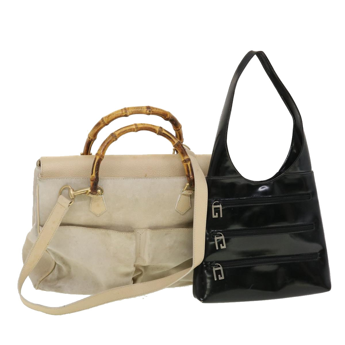 GUCCI Bamboo Shoulder Bag Suede Patent leather 2Set Black White bs5308