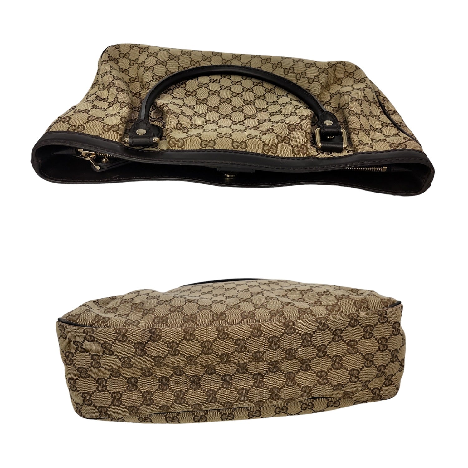 This popular and affordable Gucci GG Canvas Sukey Bag features a chic tote design with leather handles, zipper center compartment closure, as well as a fold-over leather strap, w/ magnetic snap. This bag is made of durable GG canvas. Its roomy interior is perfect for holding all your daily essentials in style.