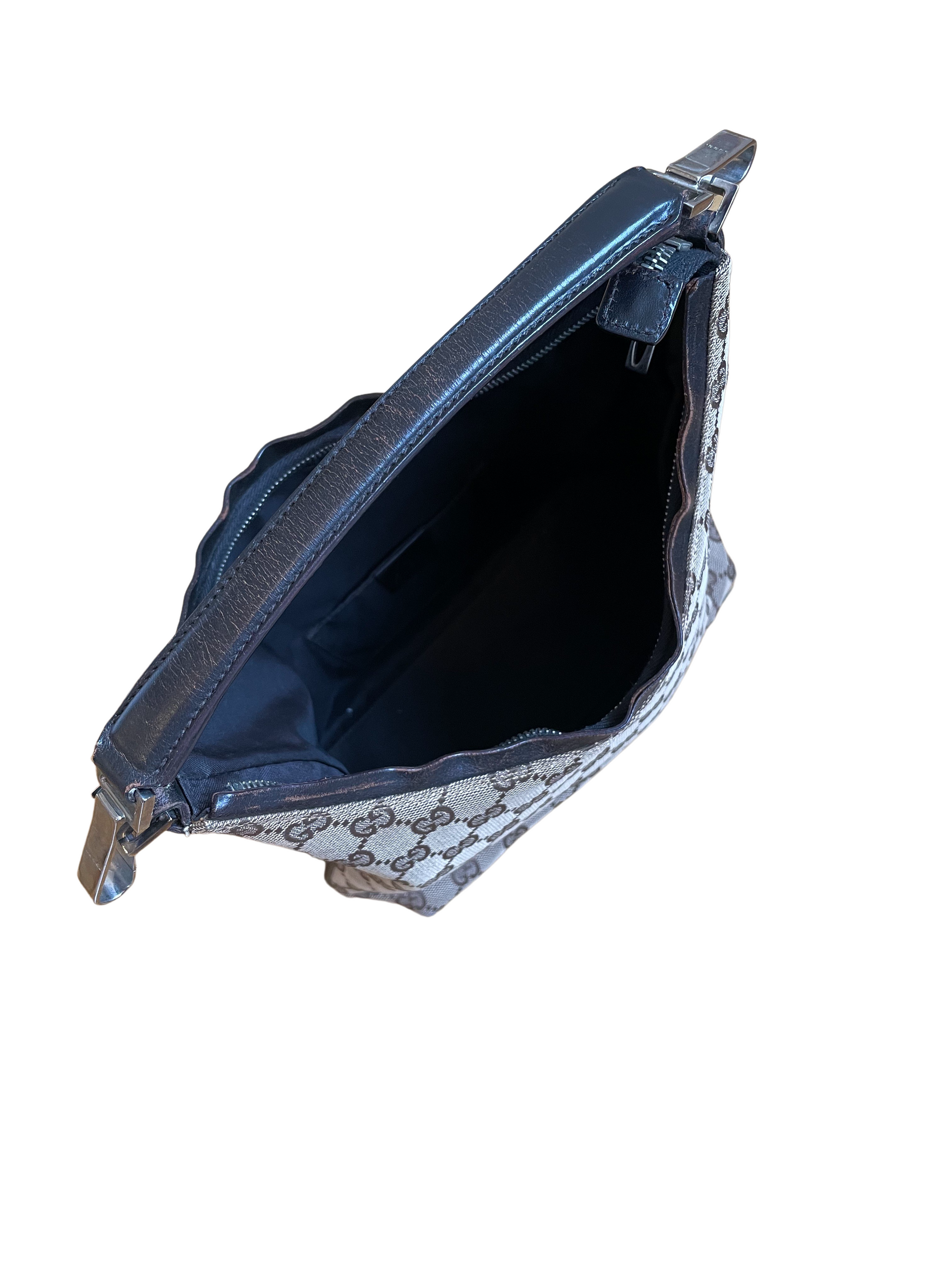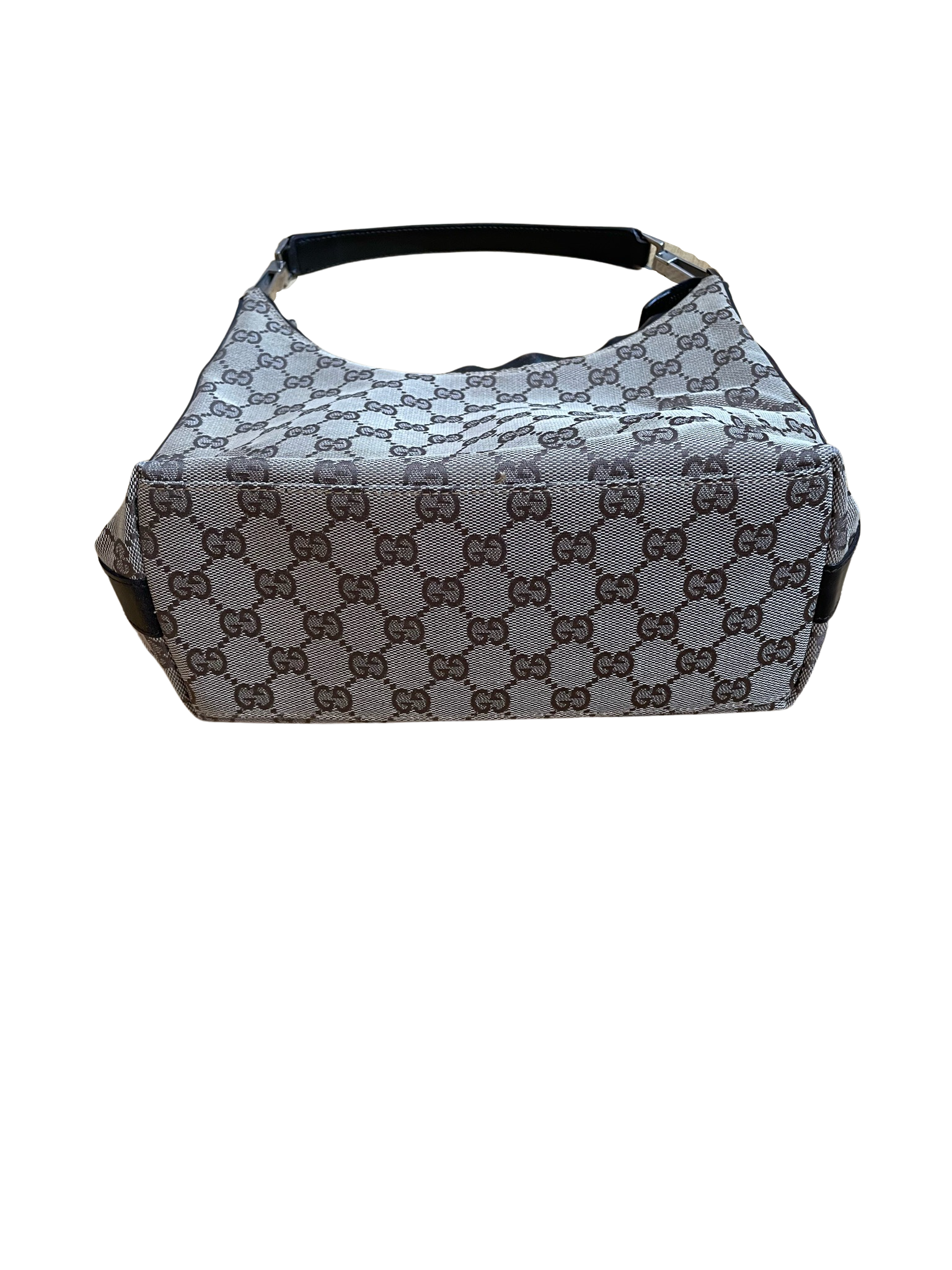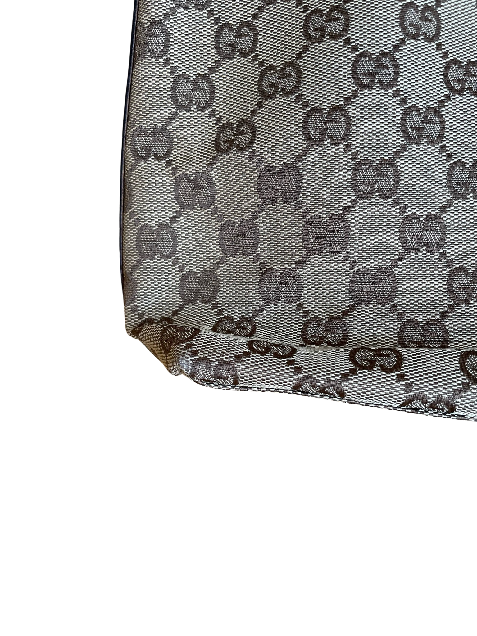Gucci Beige & Dark Brown Jacquard Handbag in good condition with few signs of previous New and patina. Specifically, the leather pieces on the bag are a bit . The inside of the bag is in good condition. Original dustbag comes with the bag.