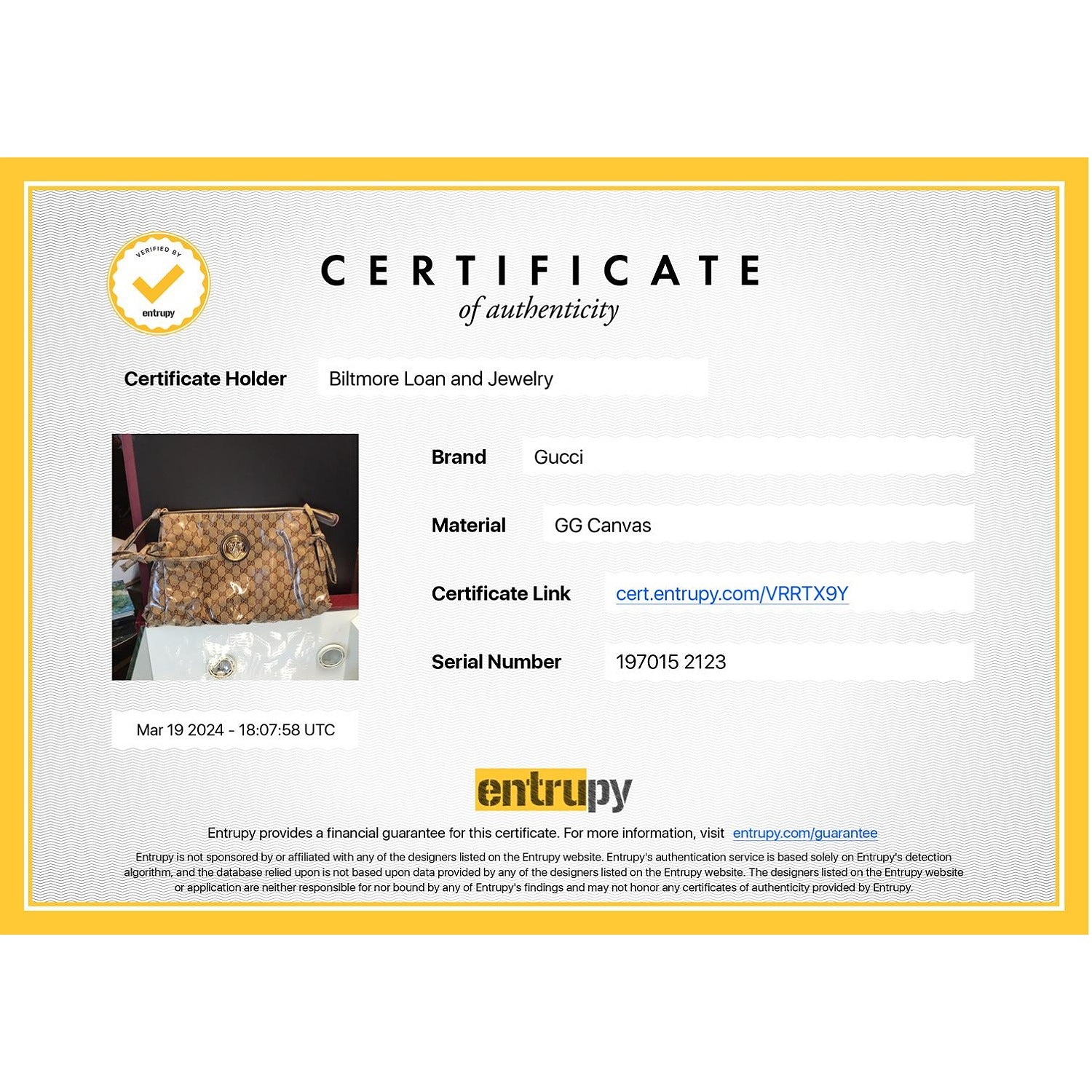 Includes: Original dust bag and Entrupy