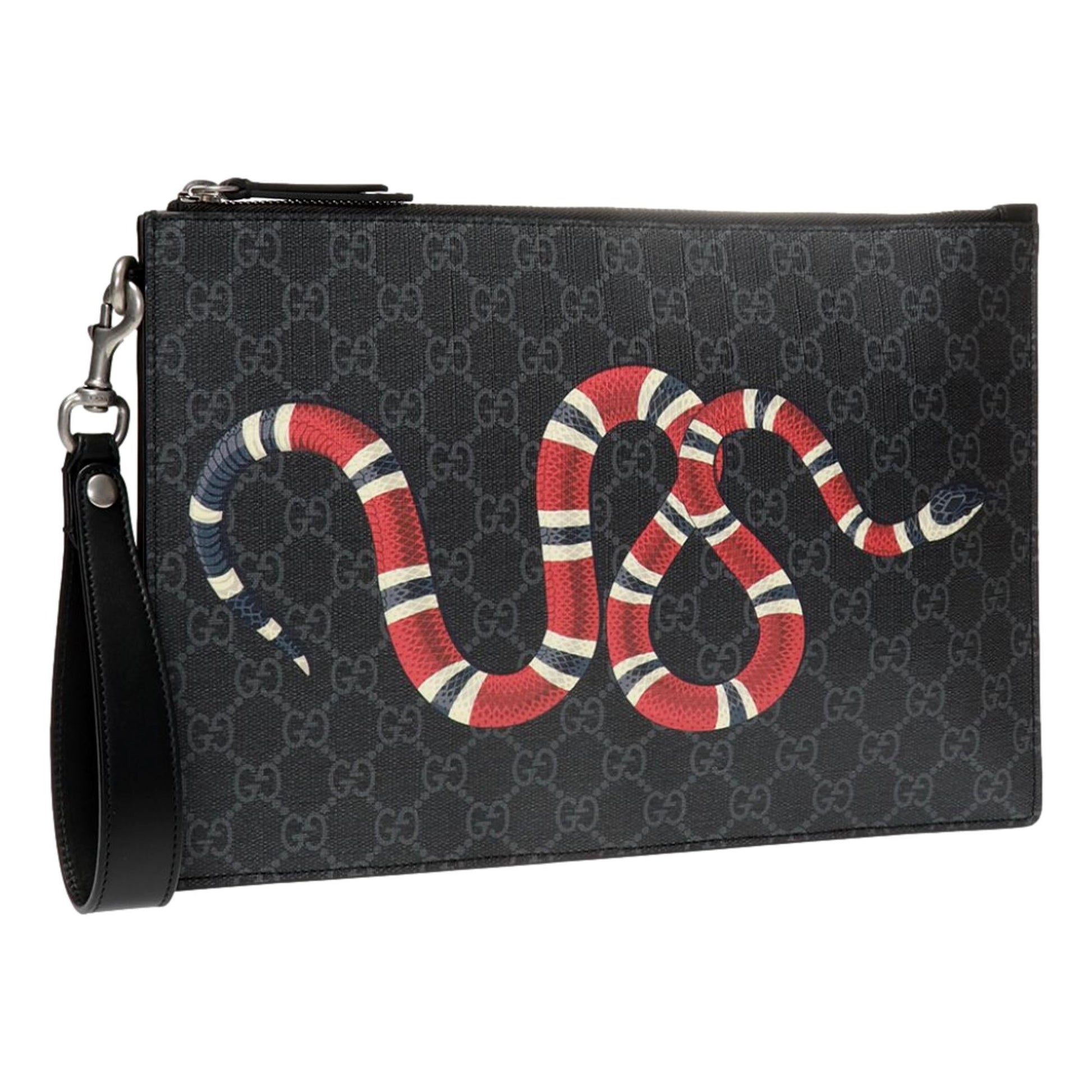 Gucci Bestiary Kingsnake Black GG Supreme Canvas Wristlet Clutch