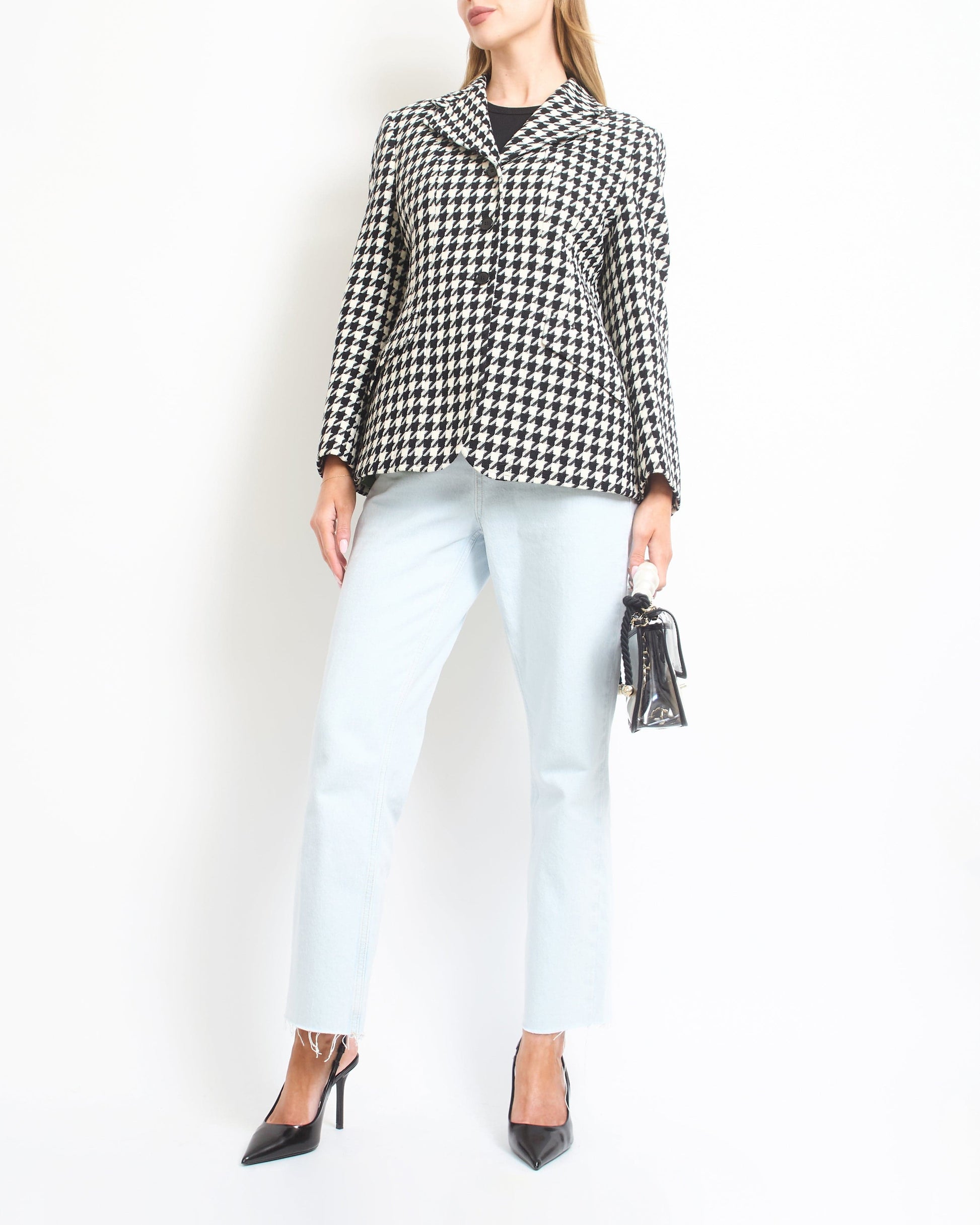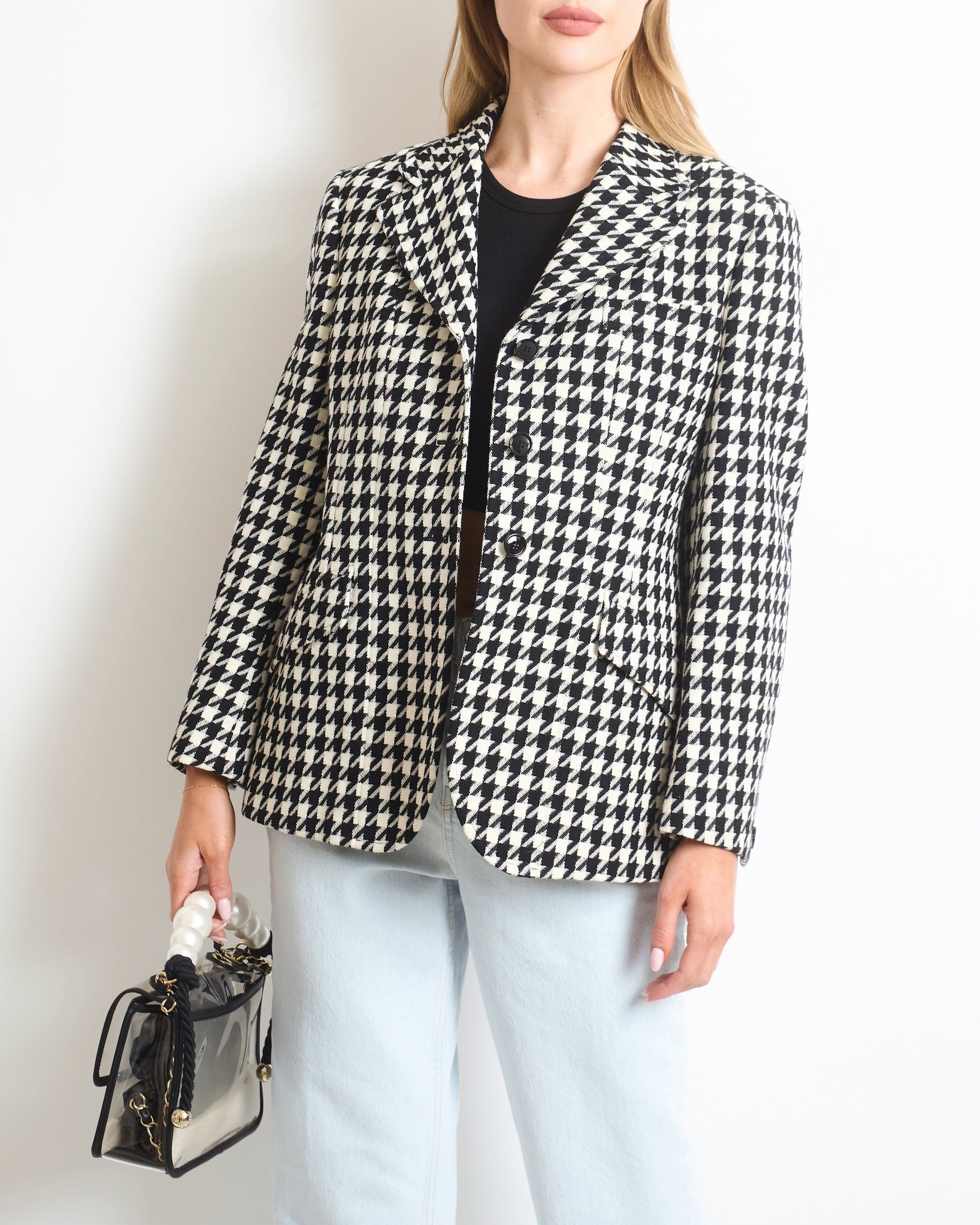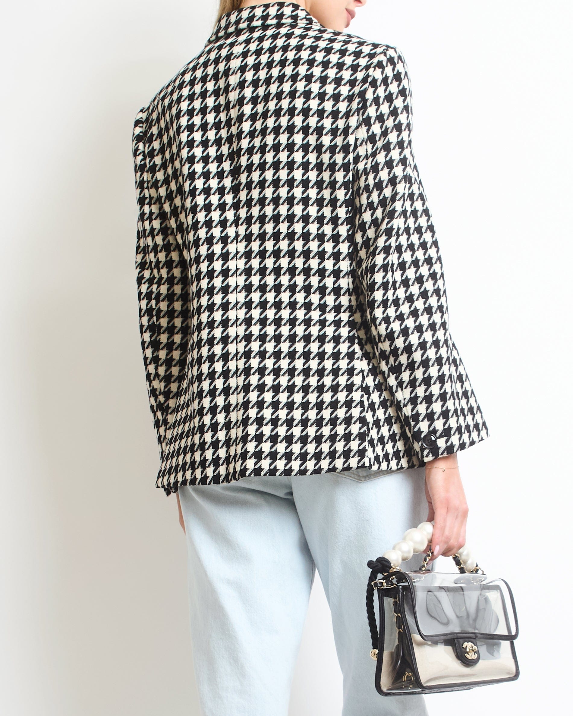 Gucci Black and White Houndstooth Wool Blazer Jacket Size IT 44 (UK 12)
