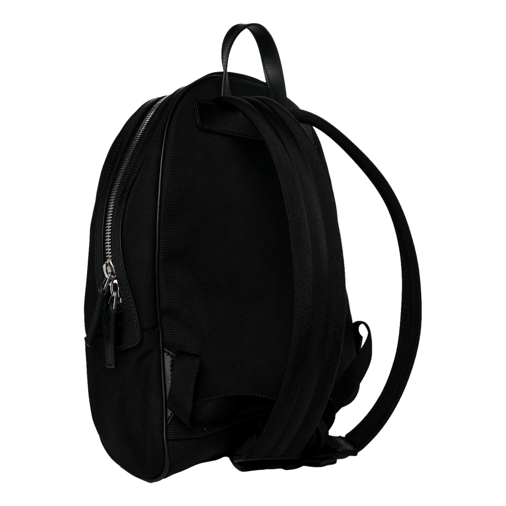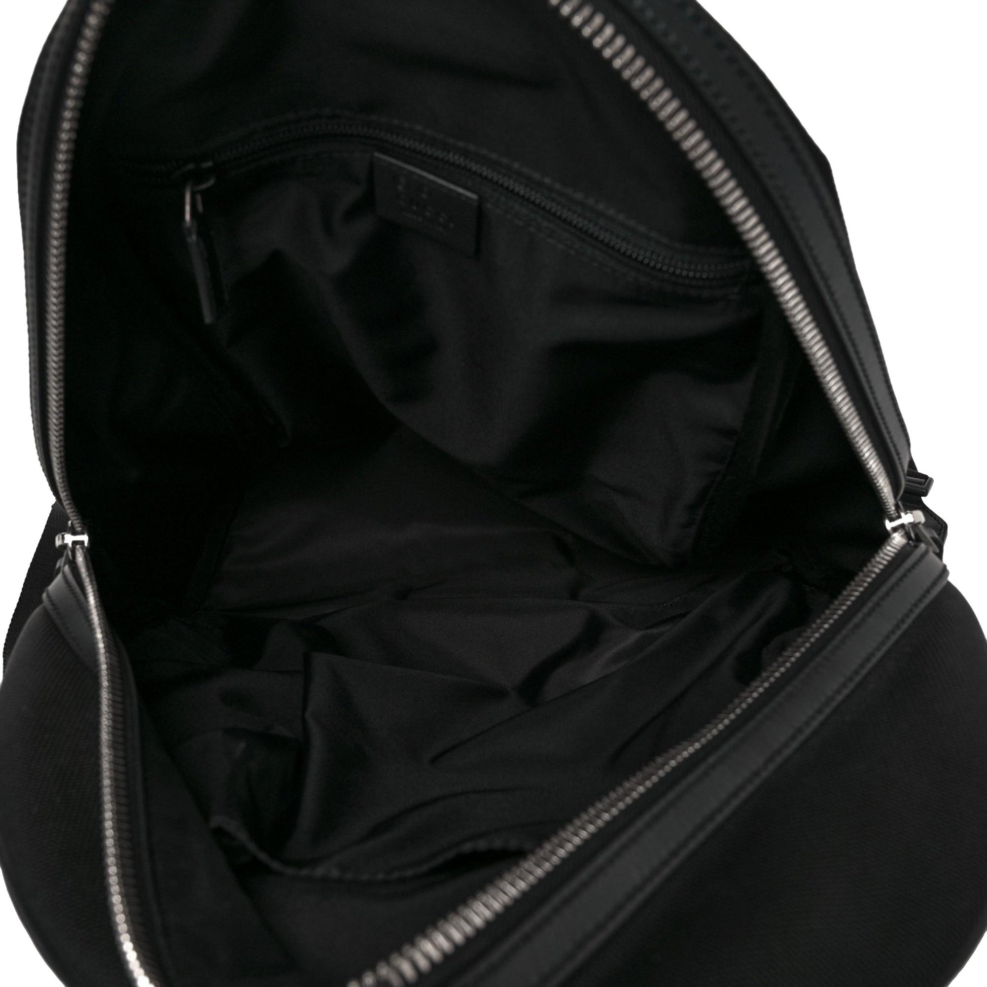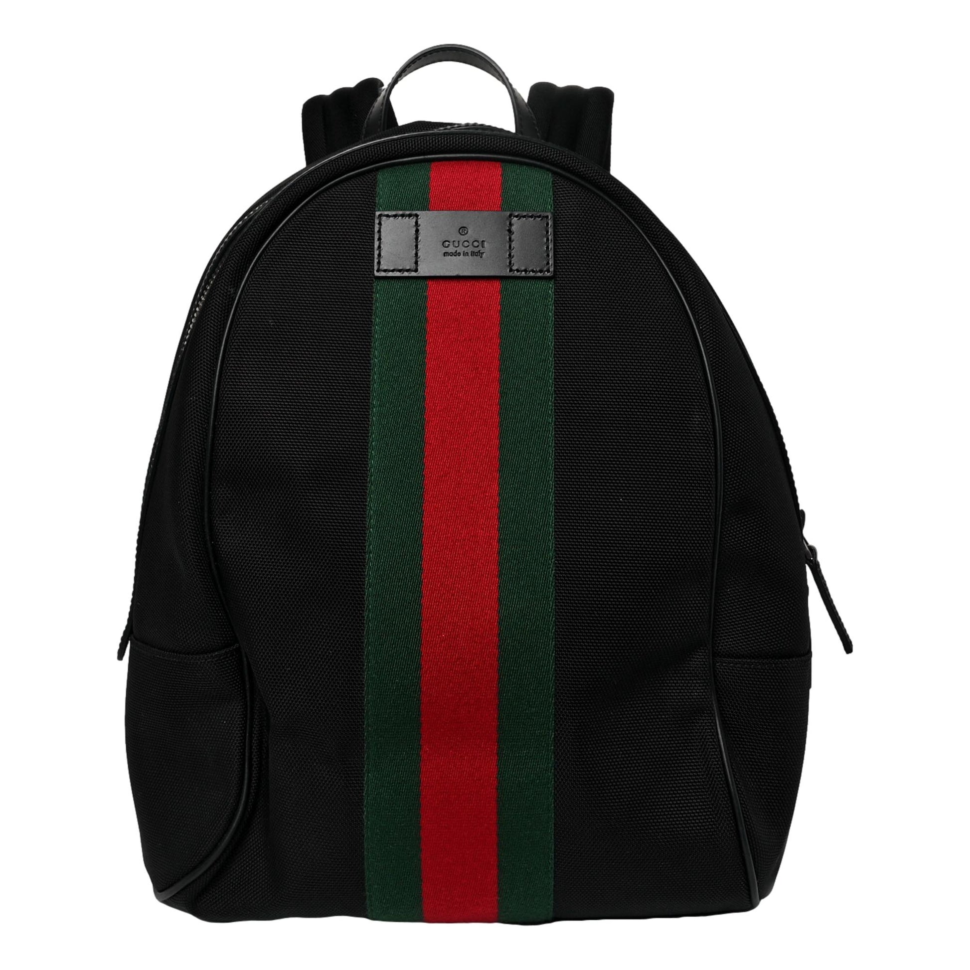 This backpack fromGucci is craftedfrom durable black canvas fabric with the iconic Gucci web stripe on the front face along with a stitched logo. The backpack features silver-tone hardware and padded black shoulder straps. The double zippers open to a spacious blackcanvas lined interior with a laptop compartment and zipper pocket. Thisfunctional and sleek backpack from Gucci is perfect for carrying all of your essentials in style!