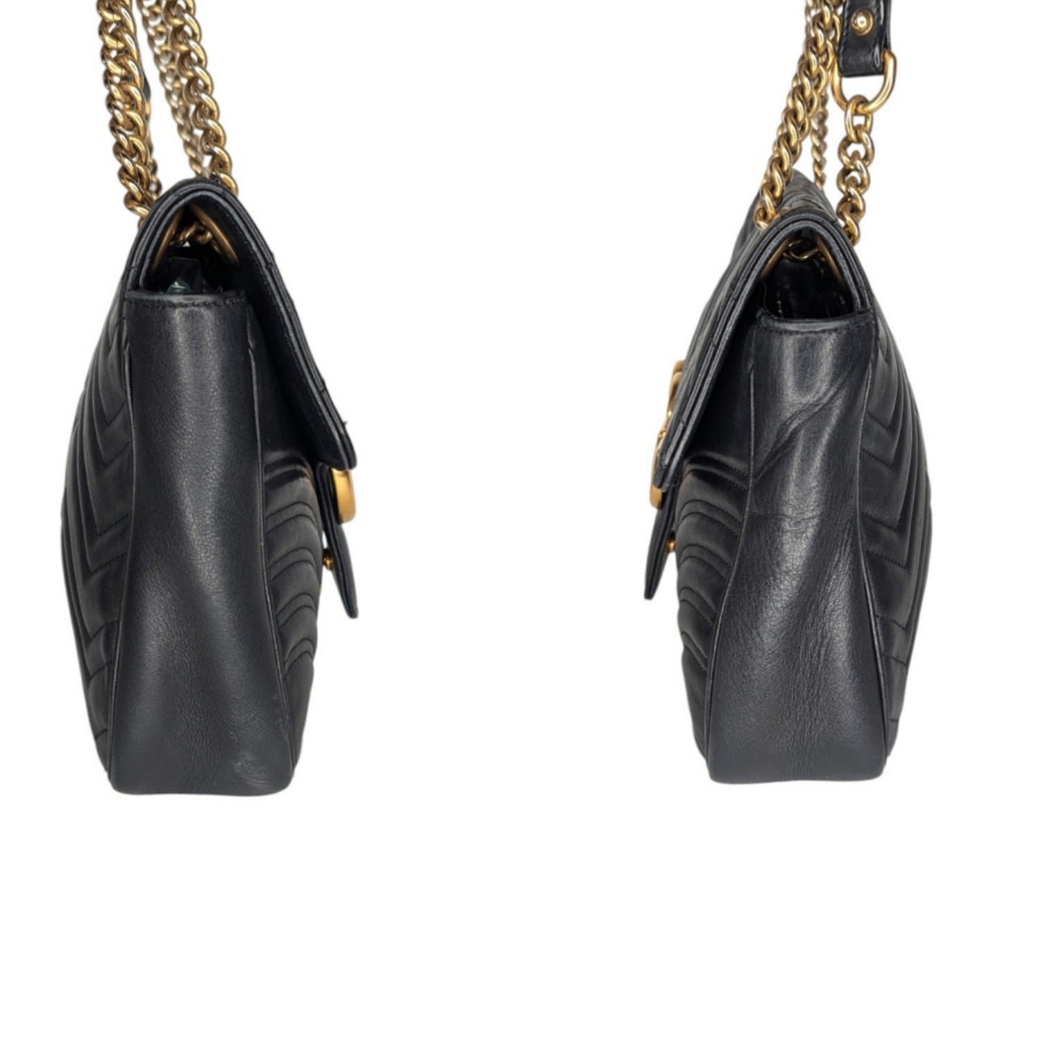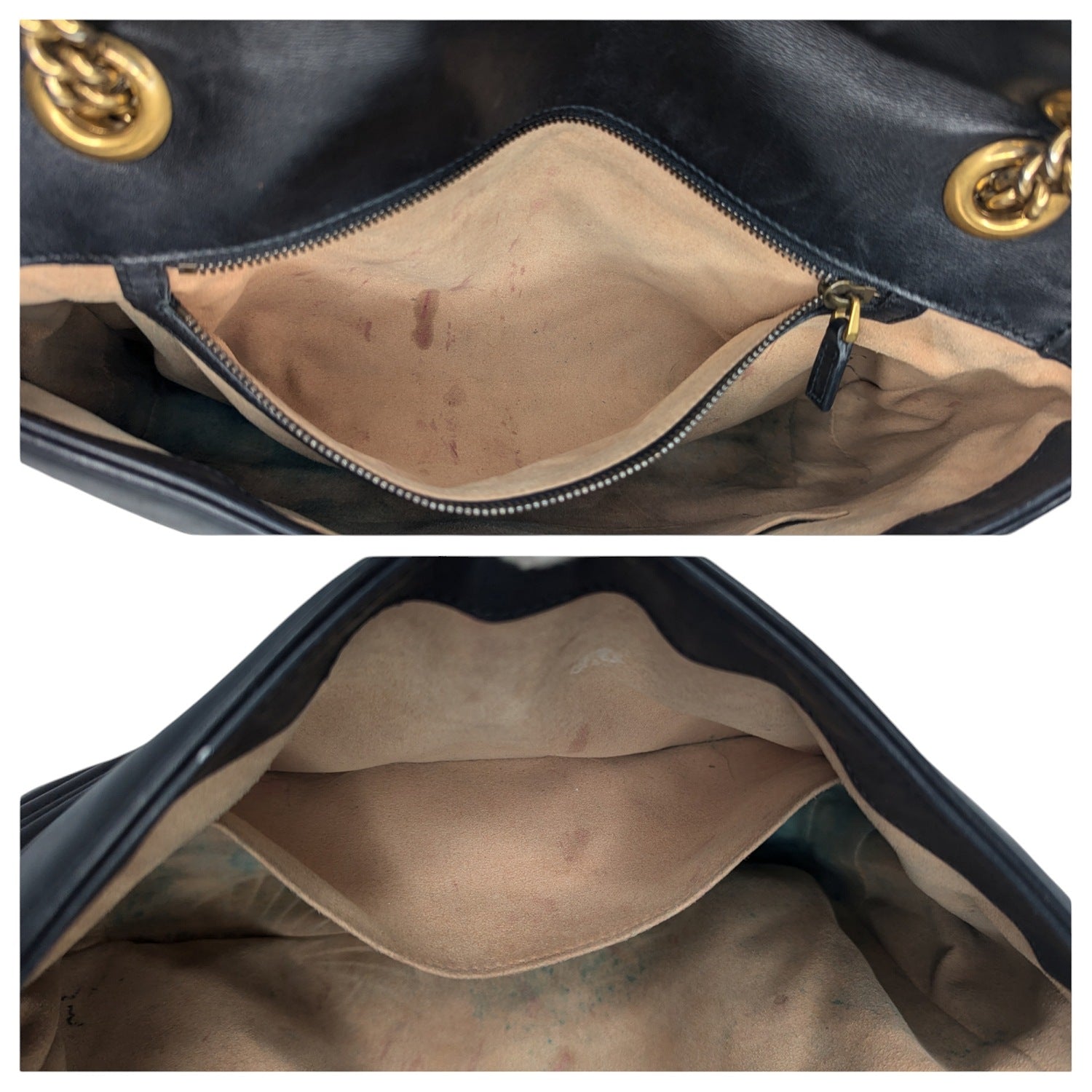 Gucci Black Chevron Quilted GG Marmont Medium Shoulder Bag