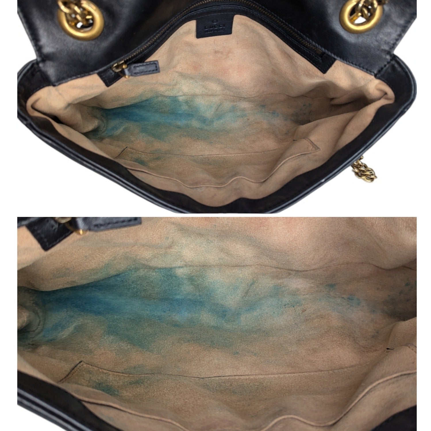 This gorgeous and softly structured Gucci Quilted Leather GG Marmont Medium Shoulder Bag is an ideal accessory! This particular bag features signature quilted leather with an interlocking G logo at the front flap and embroidered heart on the rear. The adjustable chain strap allows you to carry this bag over your shoulder, crossbody or in the or in the crook of your arm. 3,100.