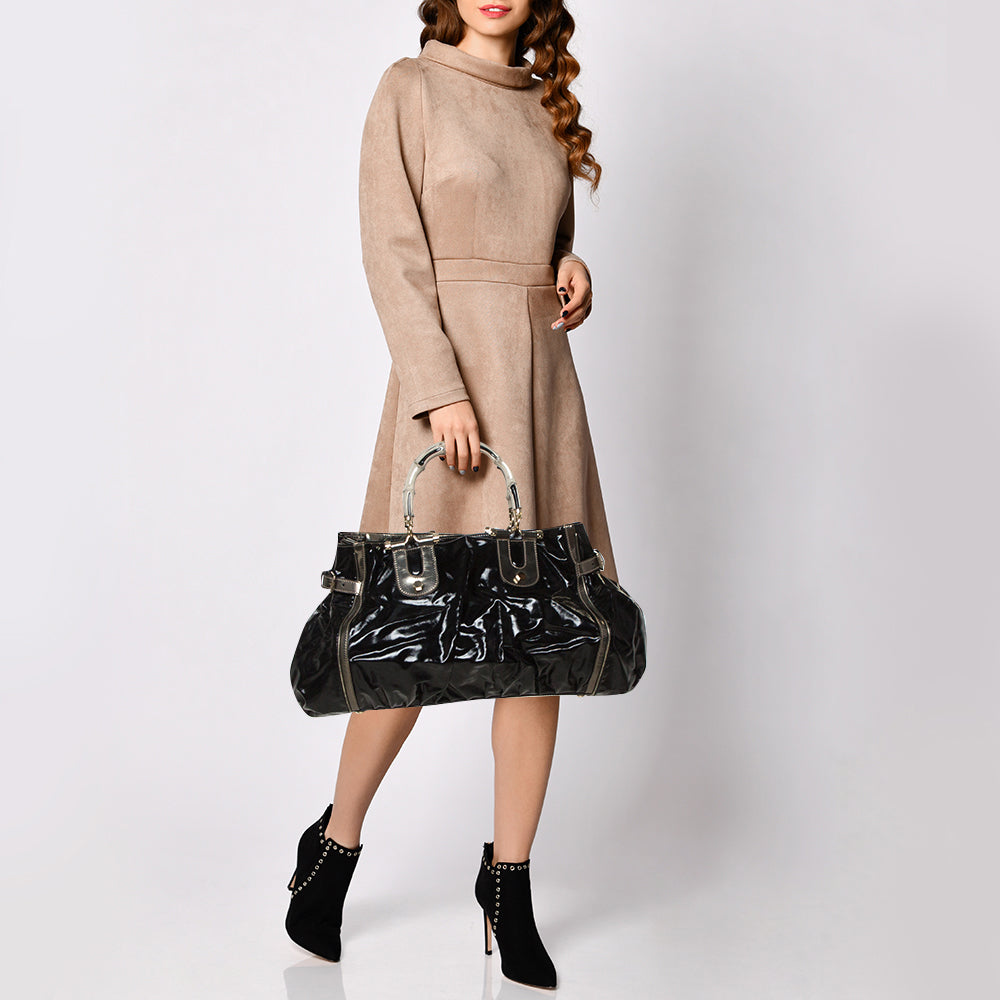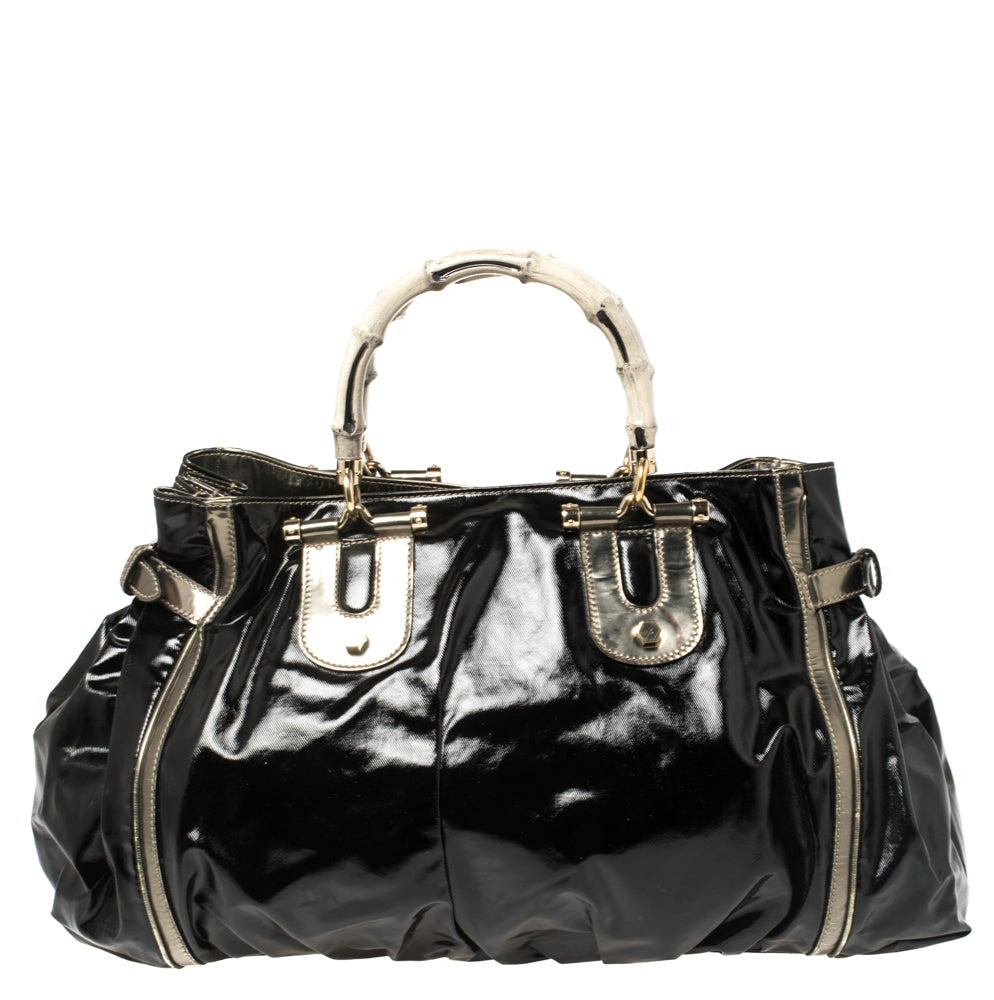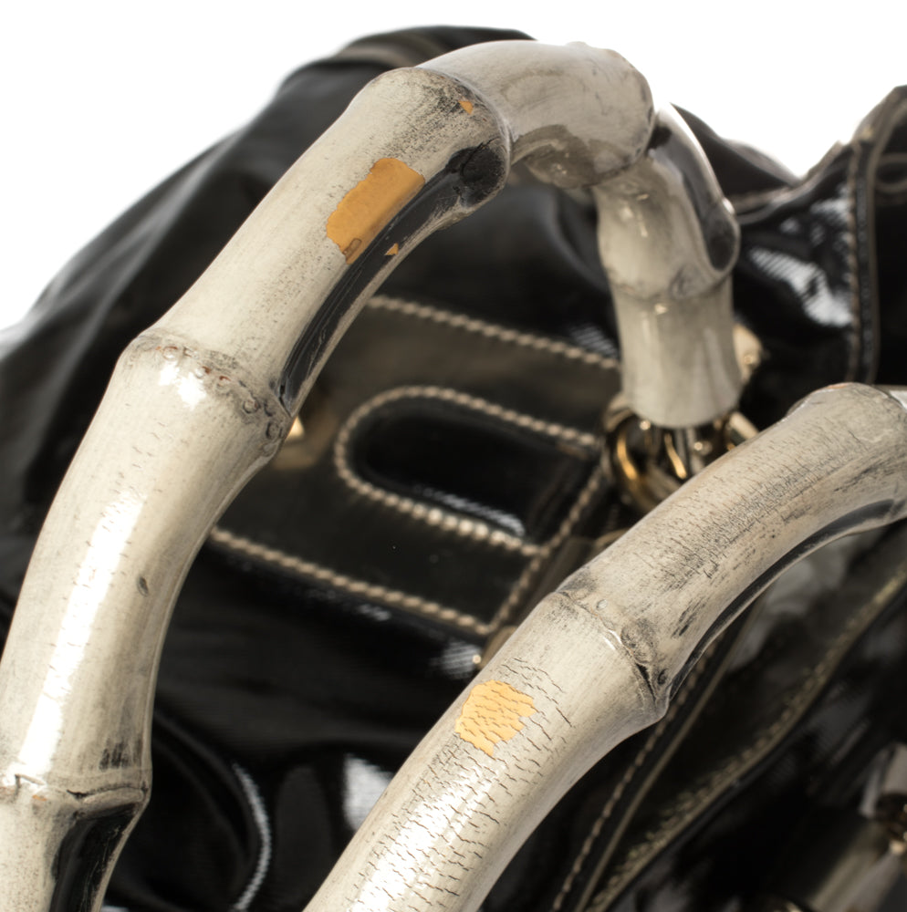 Gucci Black Coated Canvas and Leather Dialux Pop Bamboo Satchel