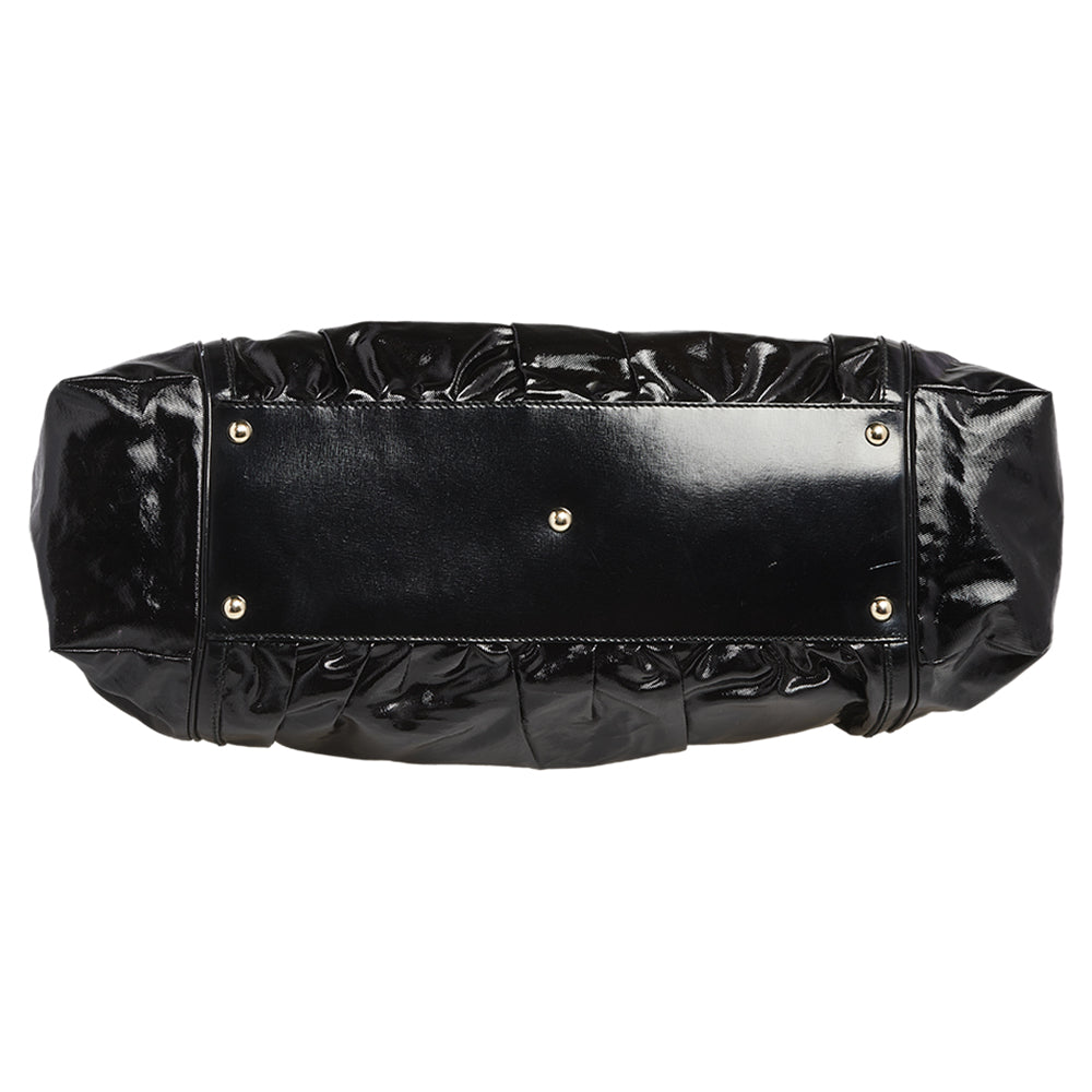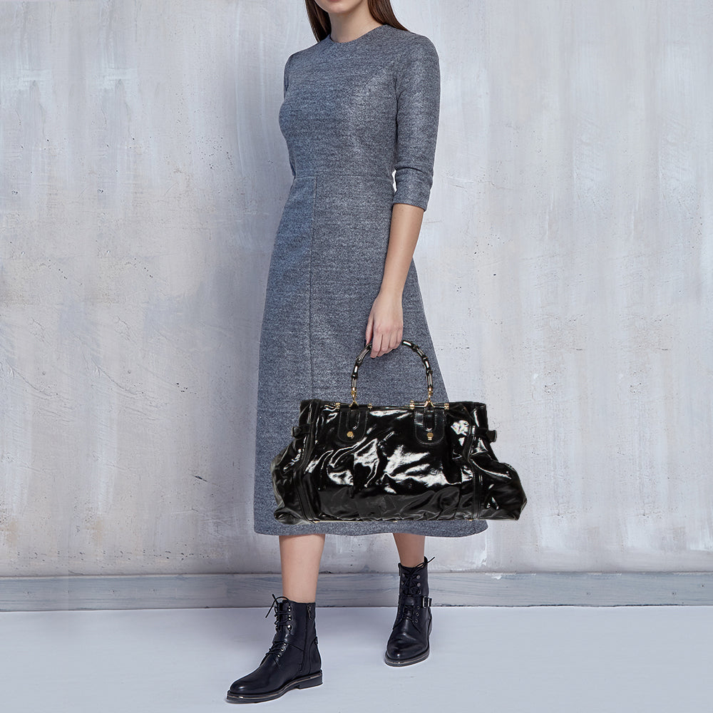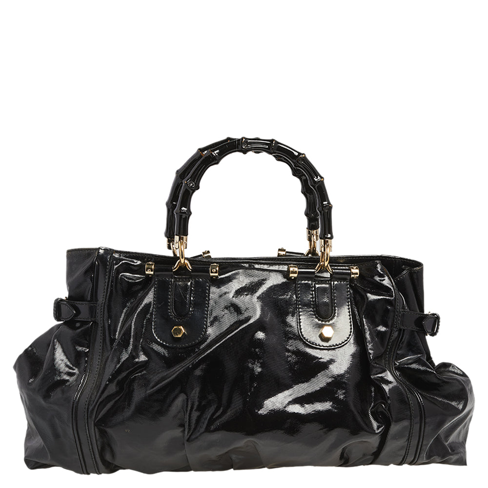 Gucci Black Coated Canvas and Leather Dialux Pop Bamboo Satchel
