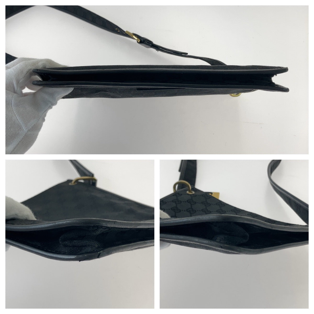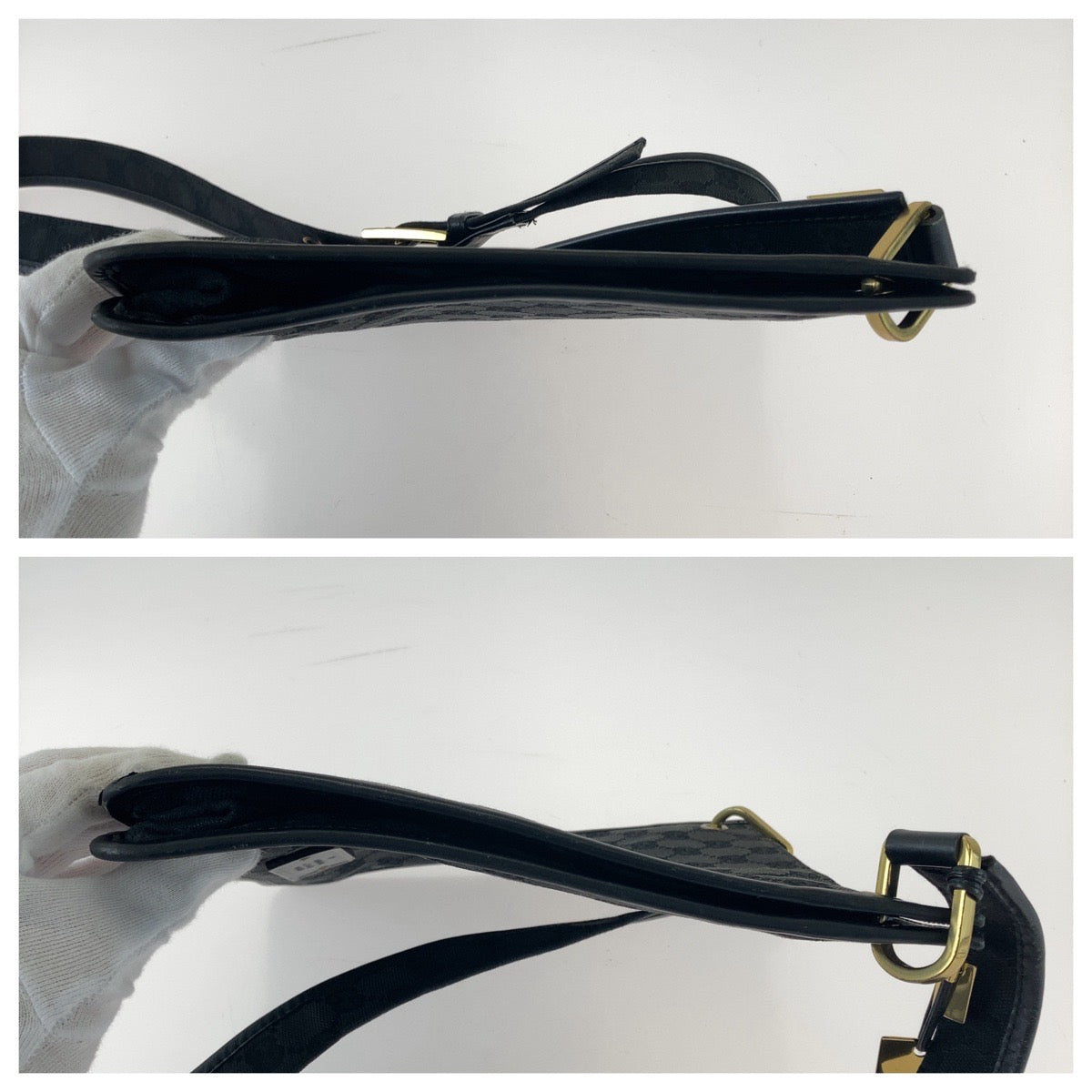 Item name : Gucci Black GG Canvas Leather Shoulder Bag