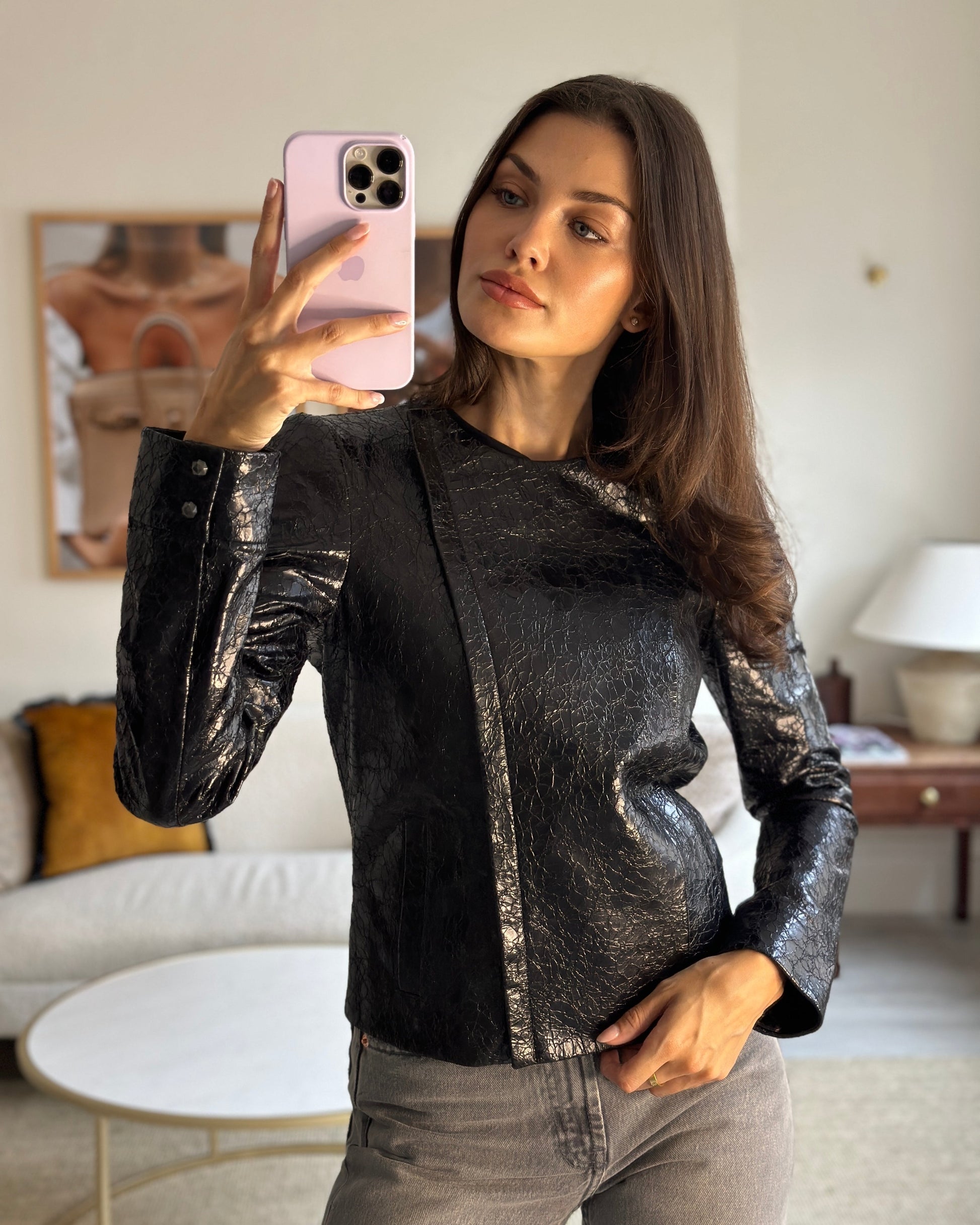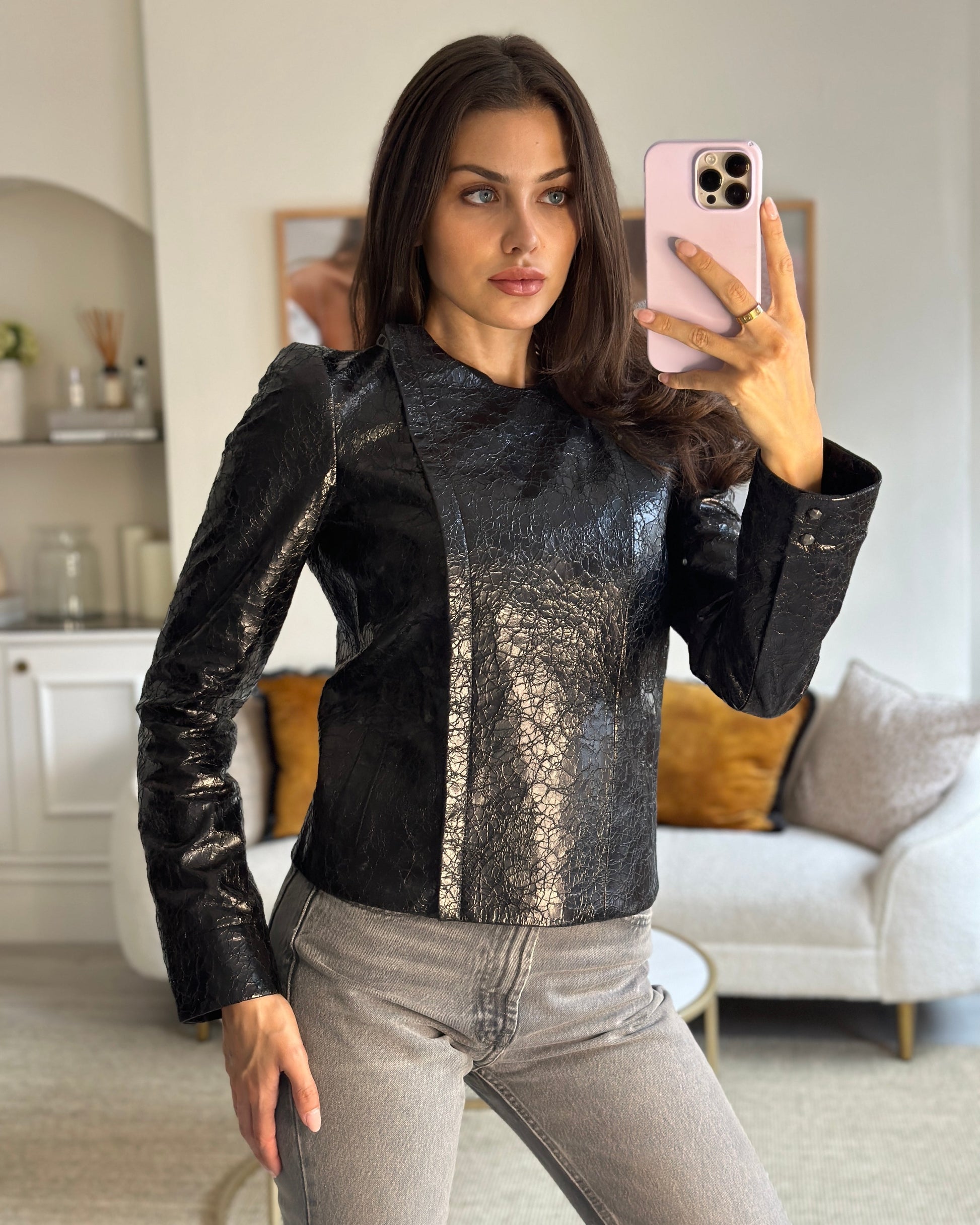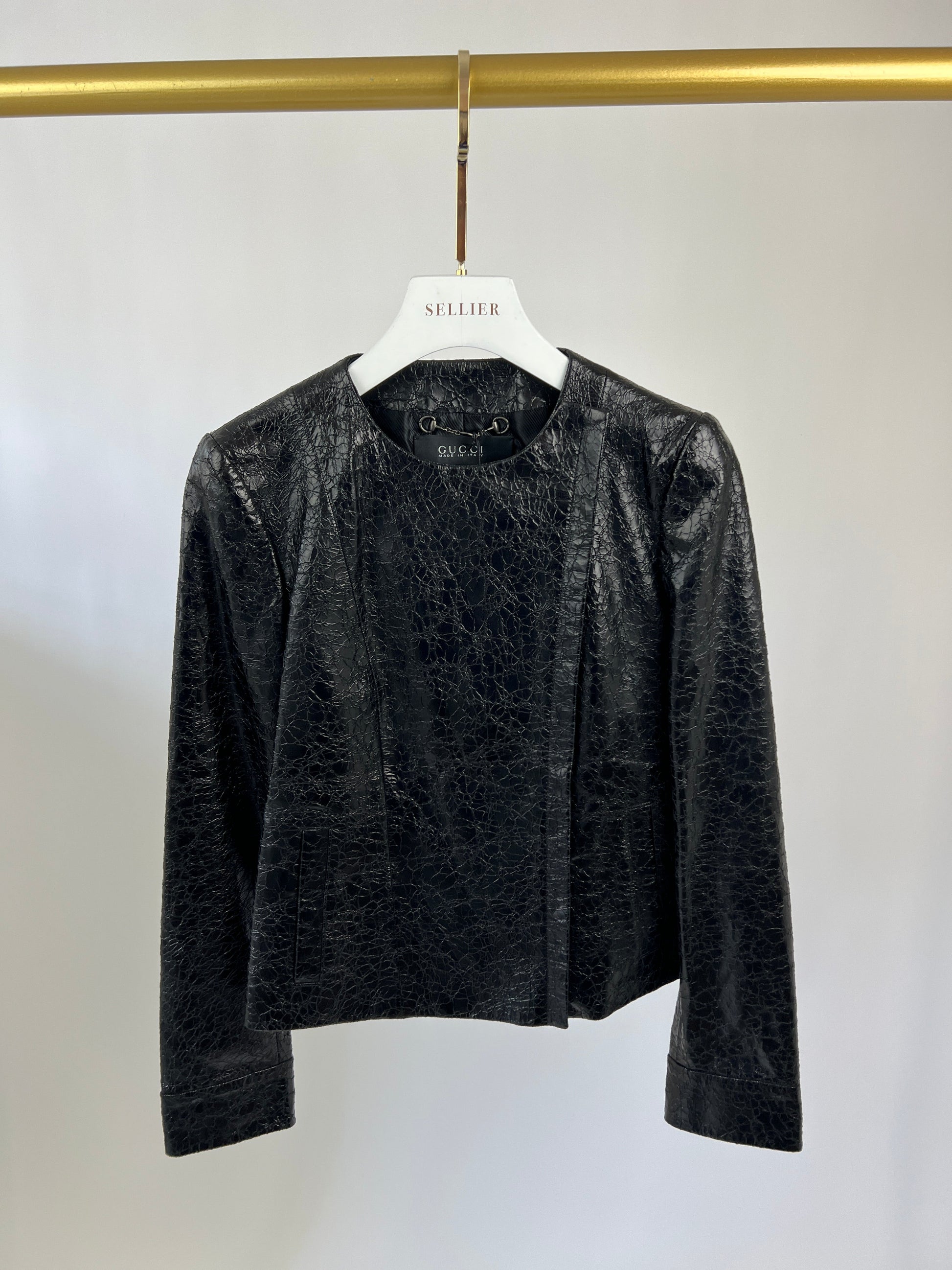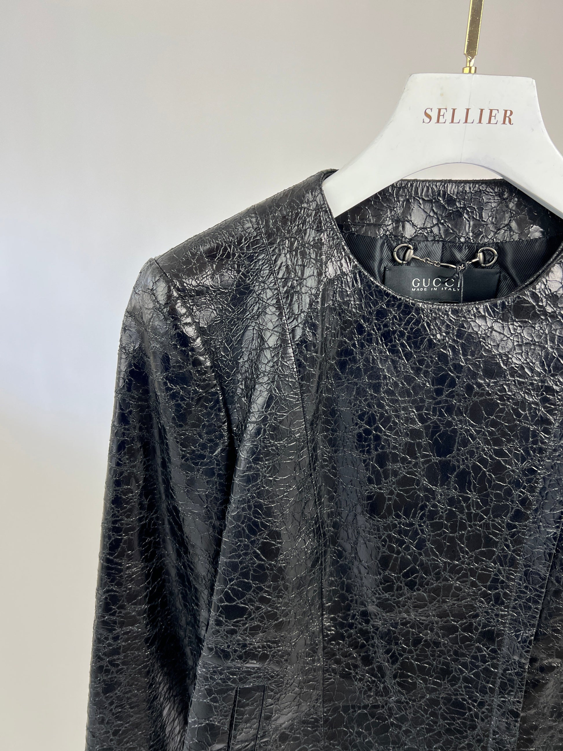 Gucci Black Lambskin Leather Jacket with Cracked Leather Effect Size IT 38 (UK 6)