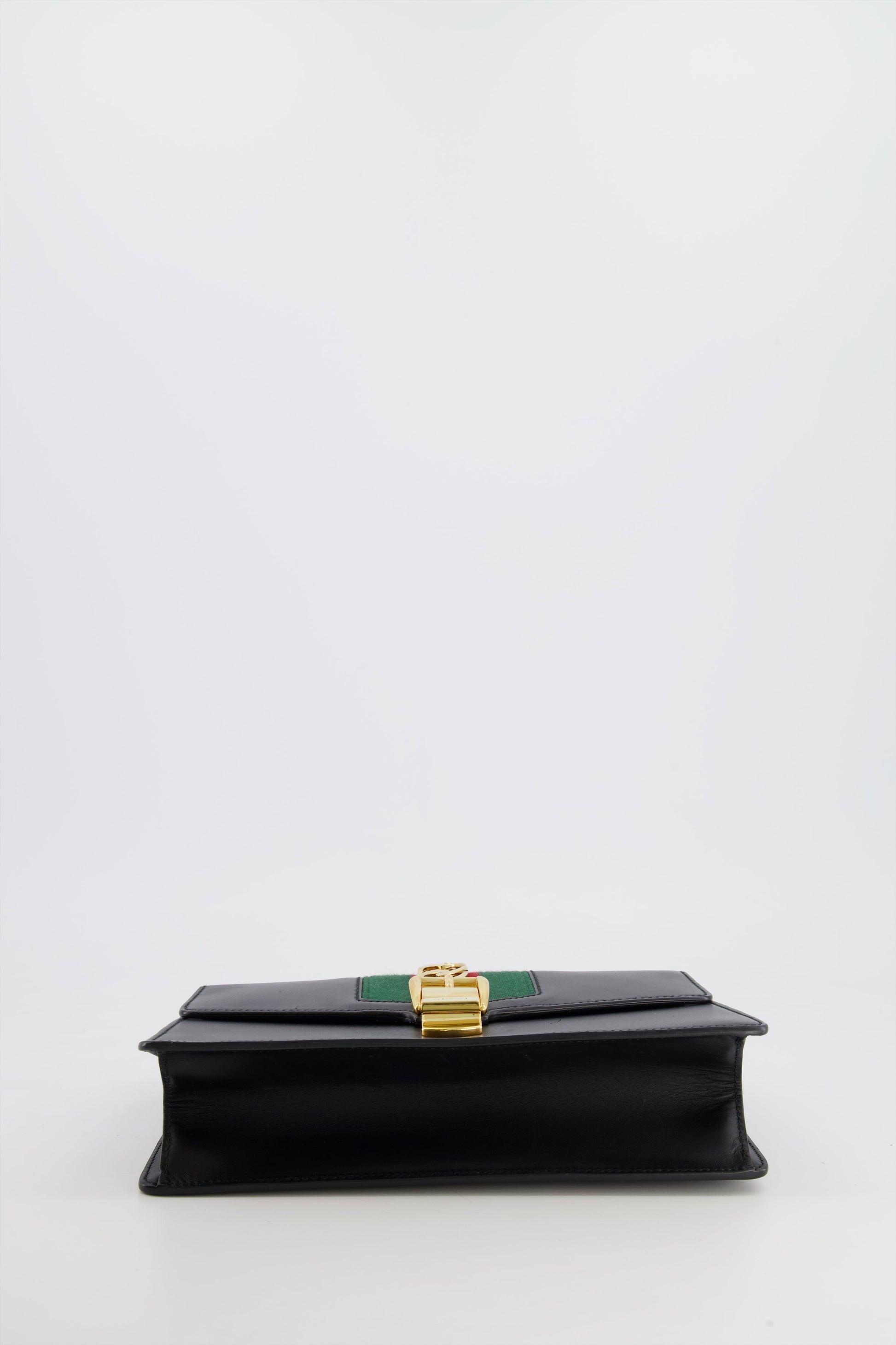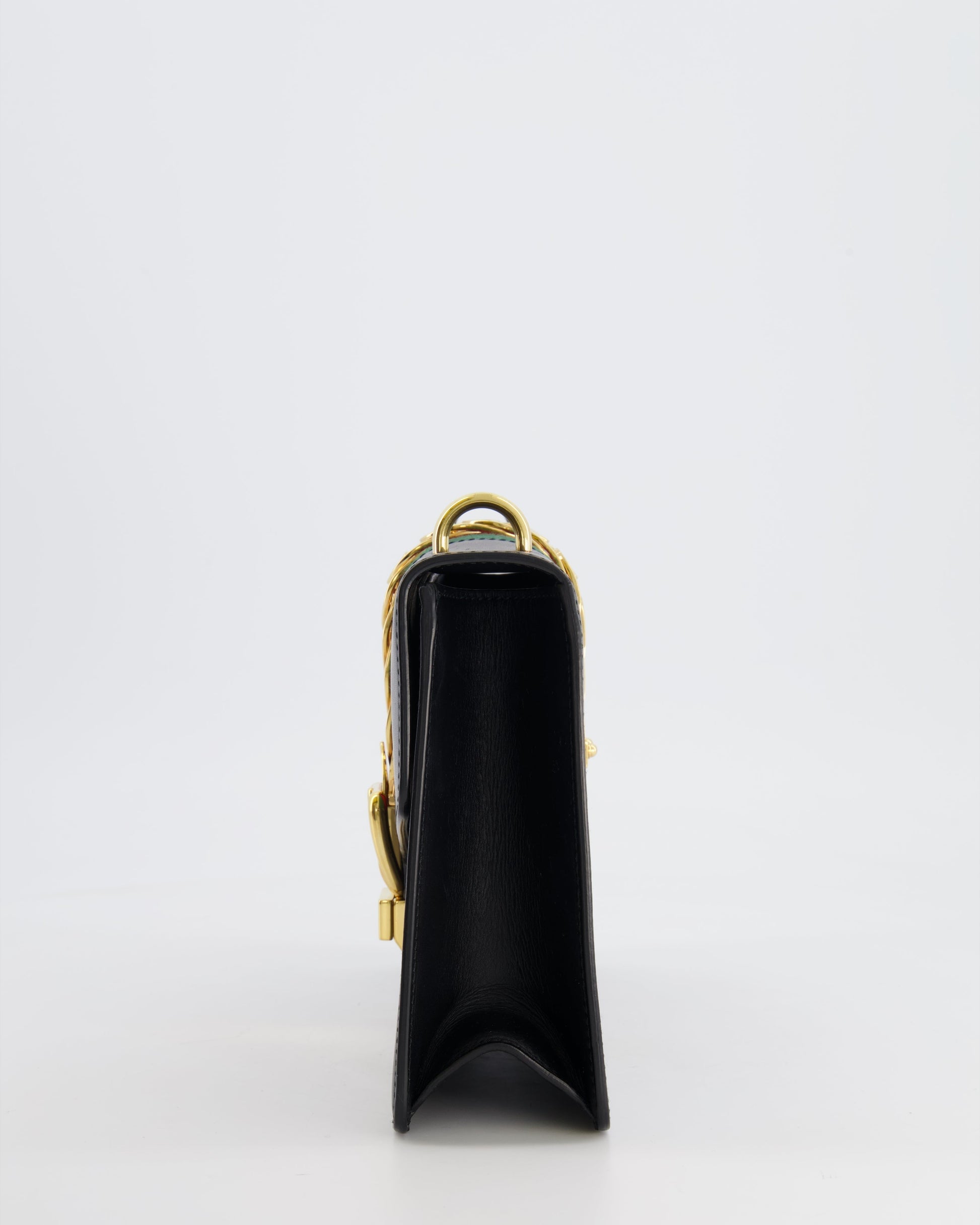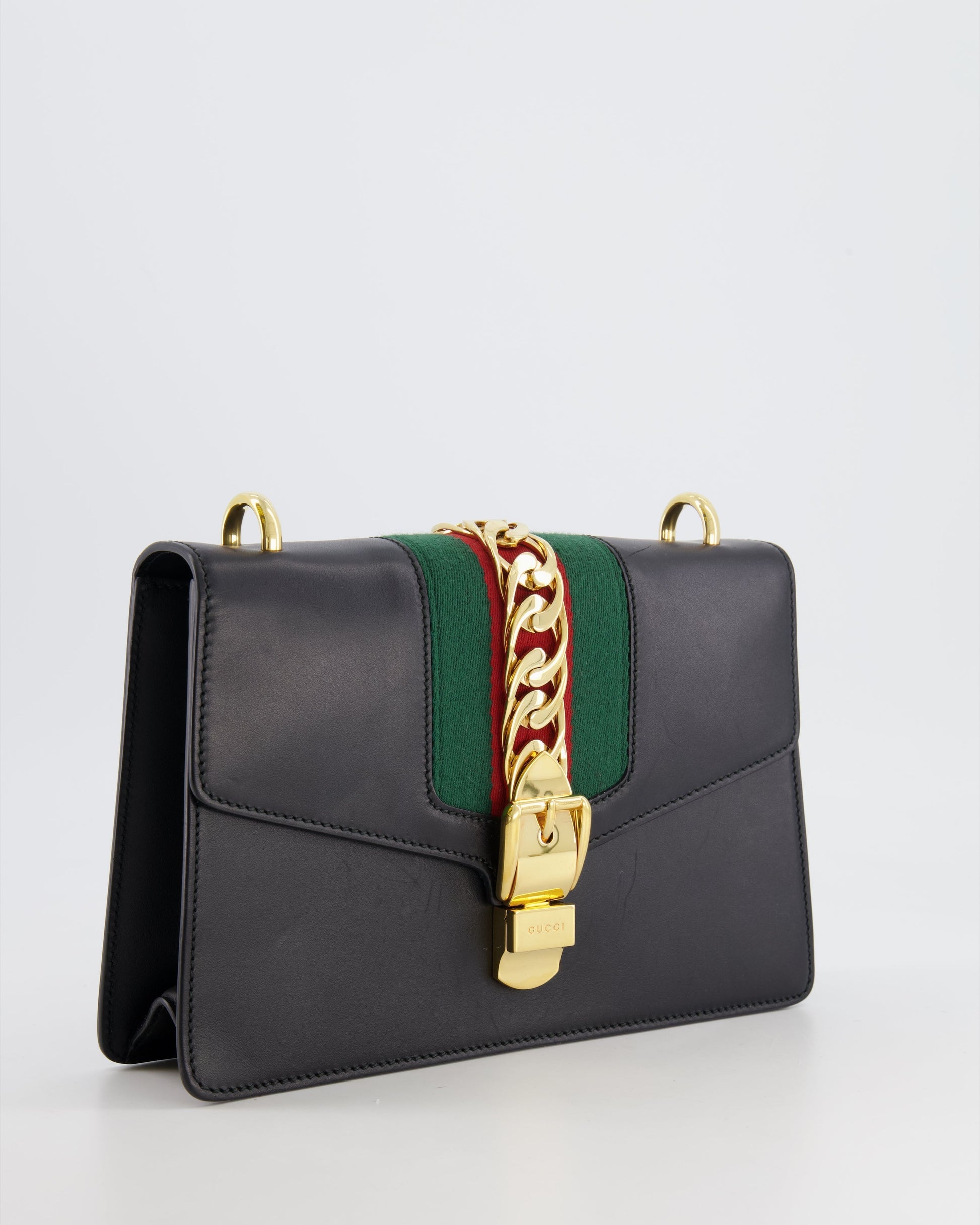 Gucci Black Leather Small Sylvie Bag Canvas with Gold Hardware and Canvas Strap