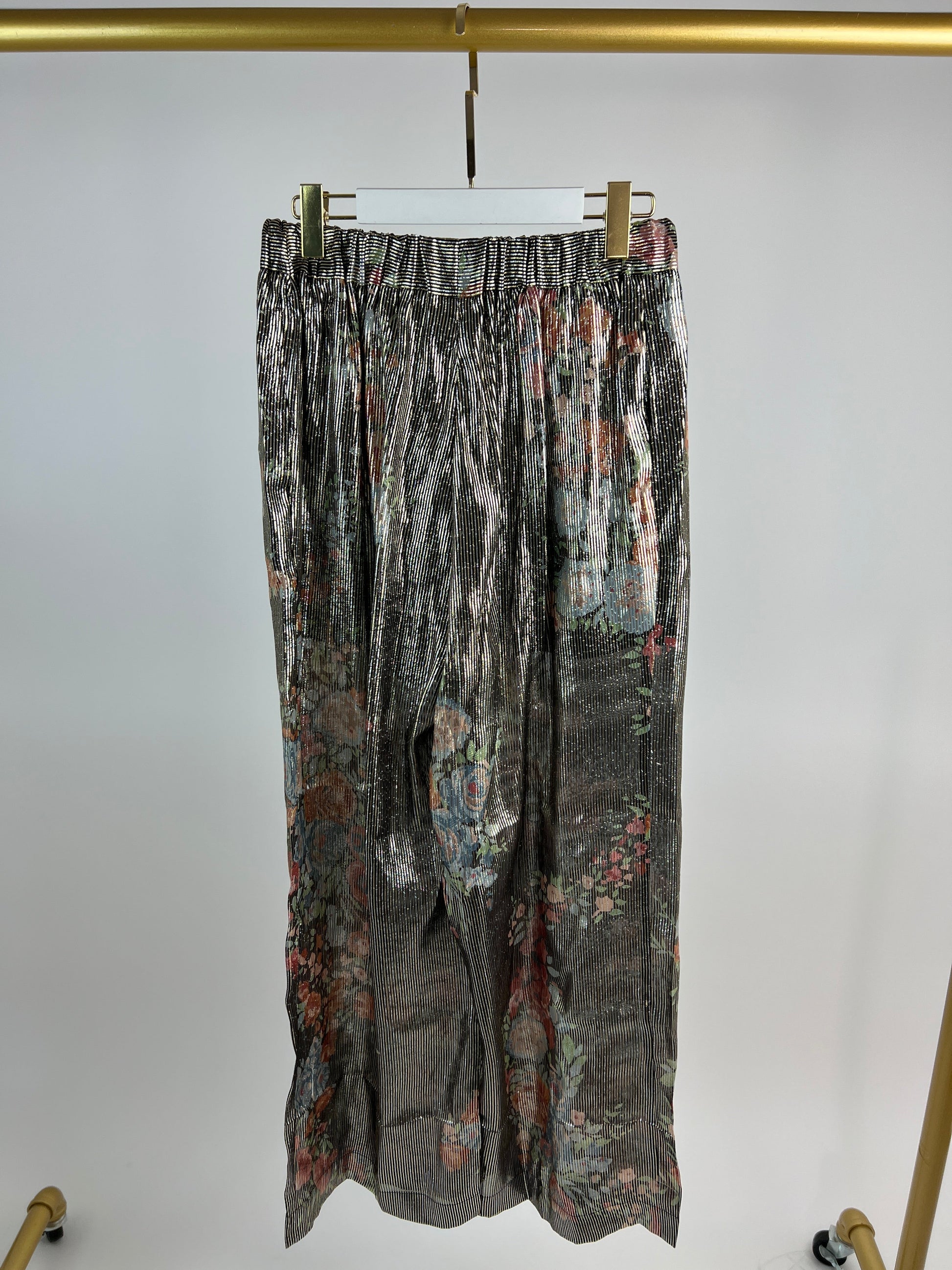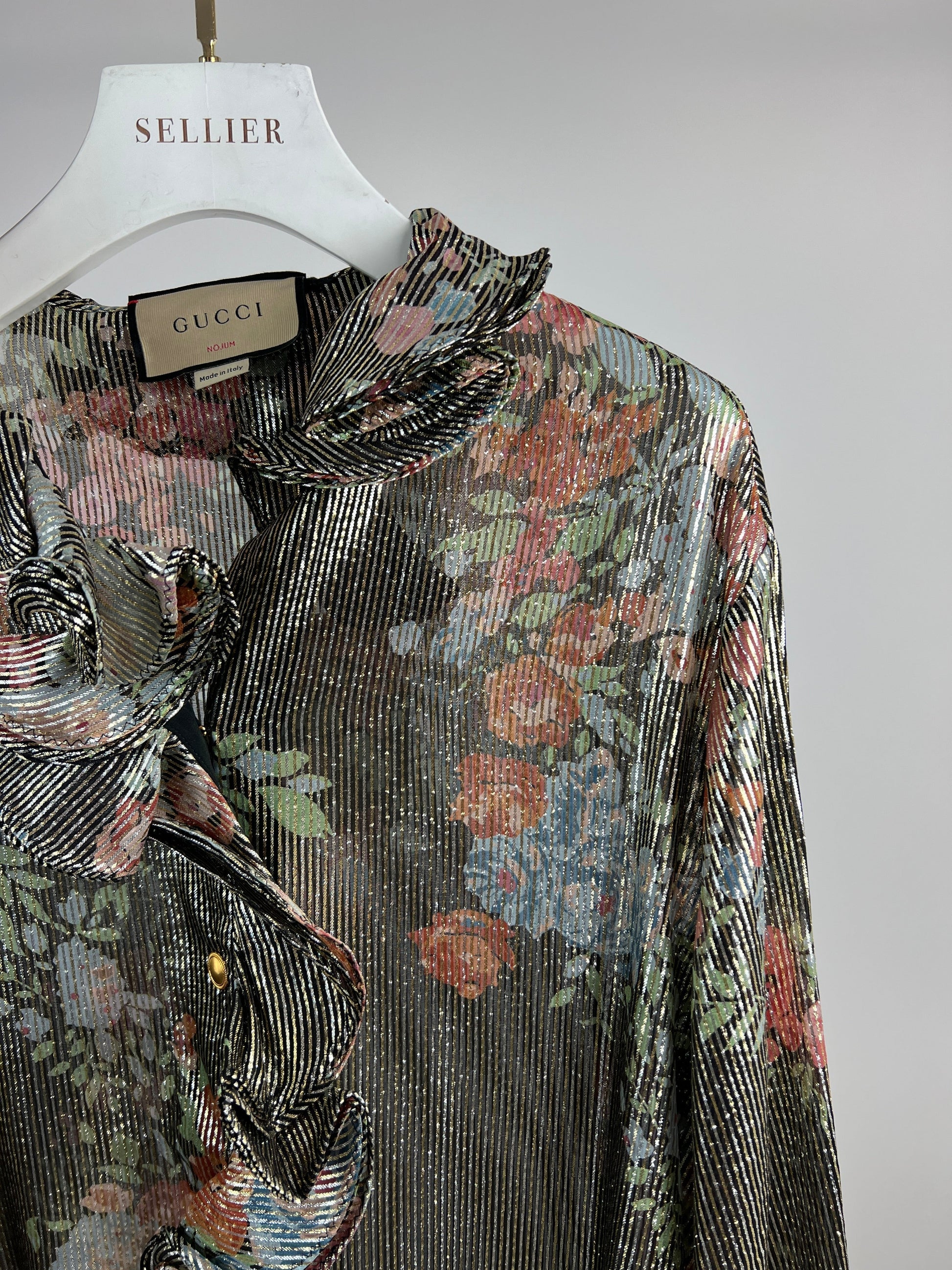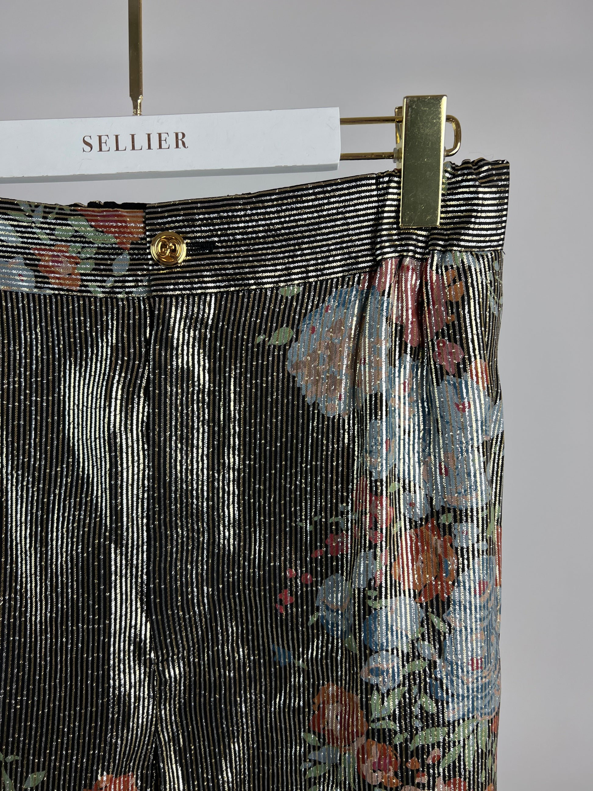 Gucci Black Metallic Striped  Blouse and Trouser Set with Floral Detail Size UK 10-14