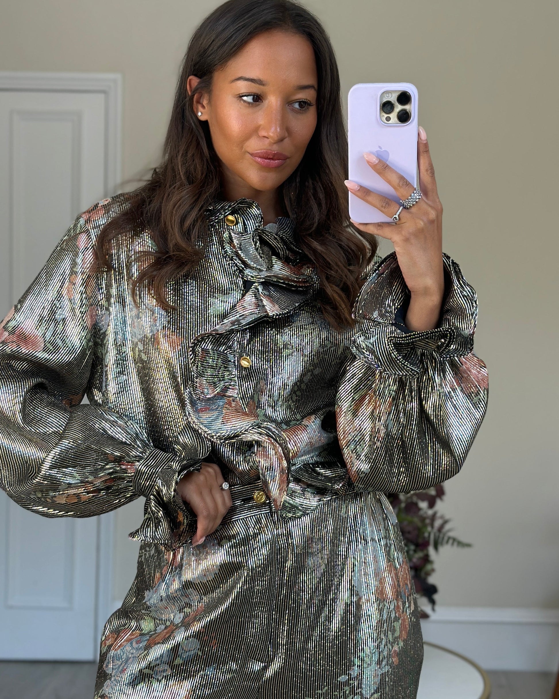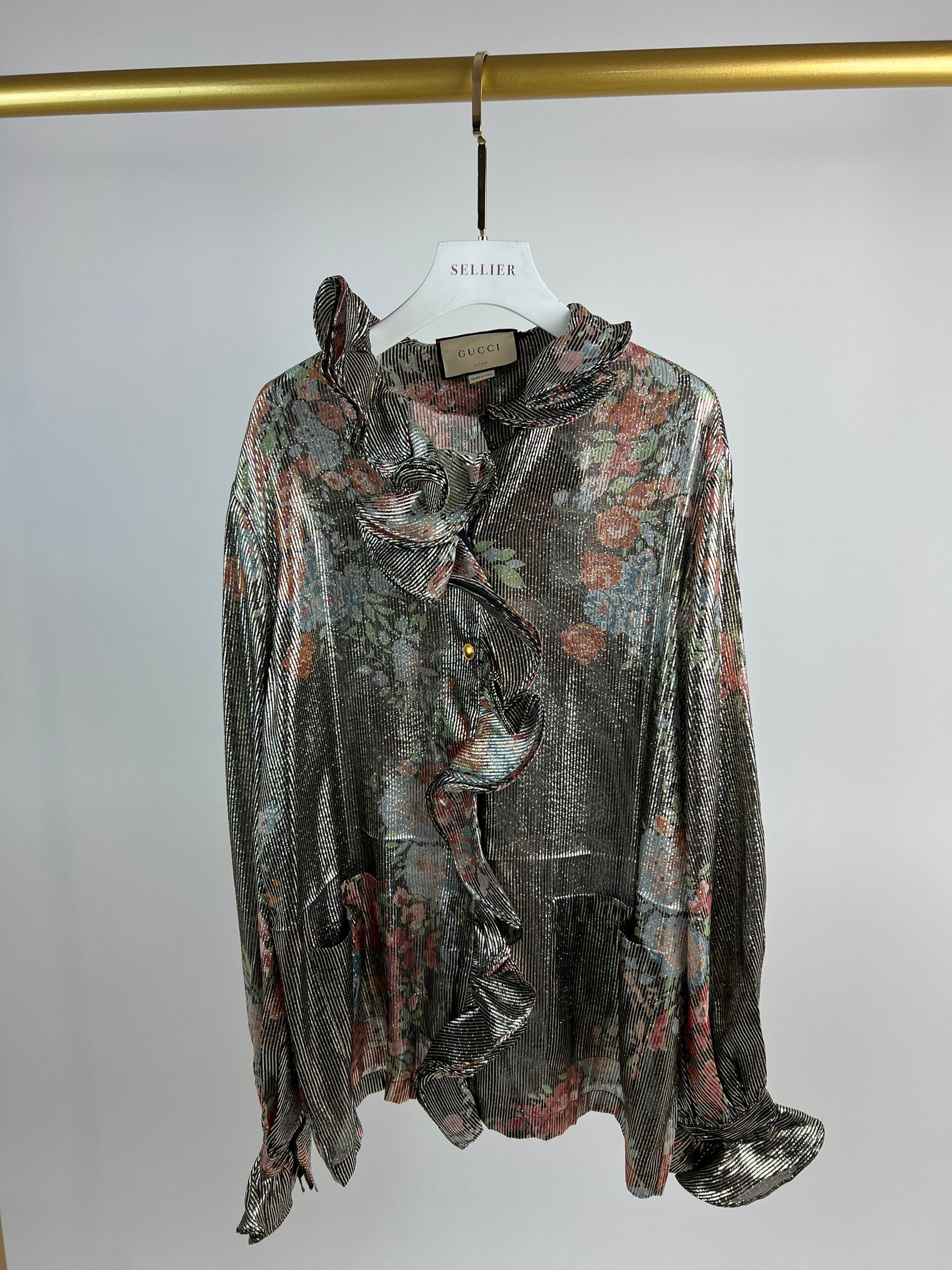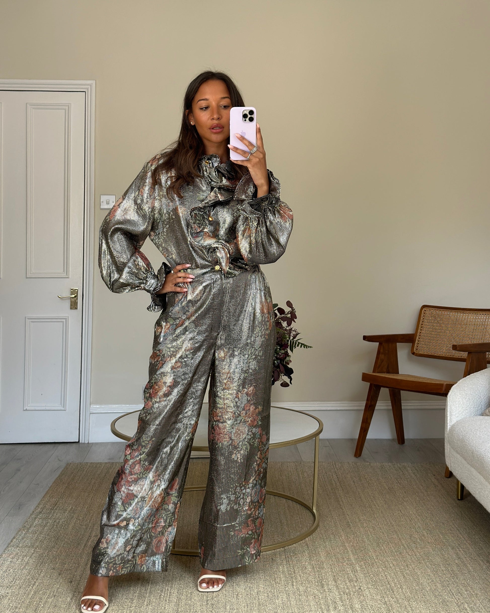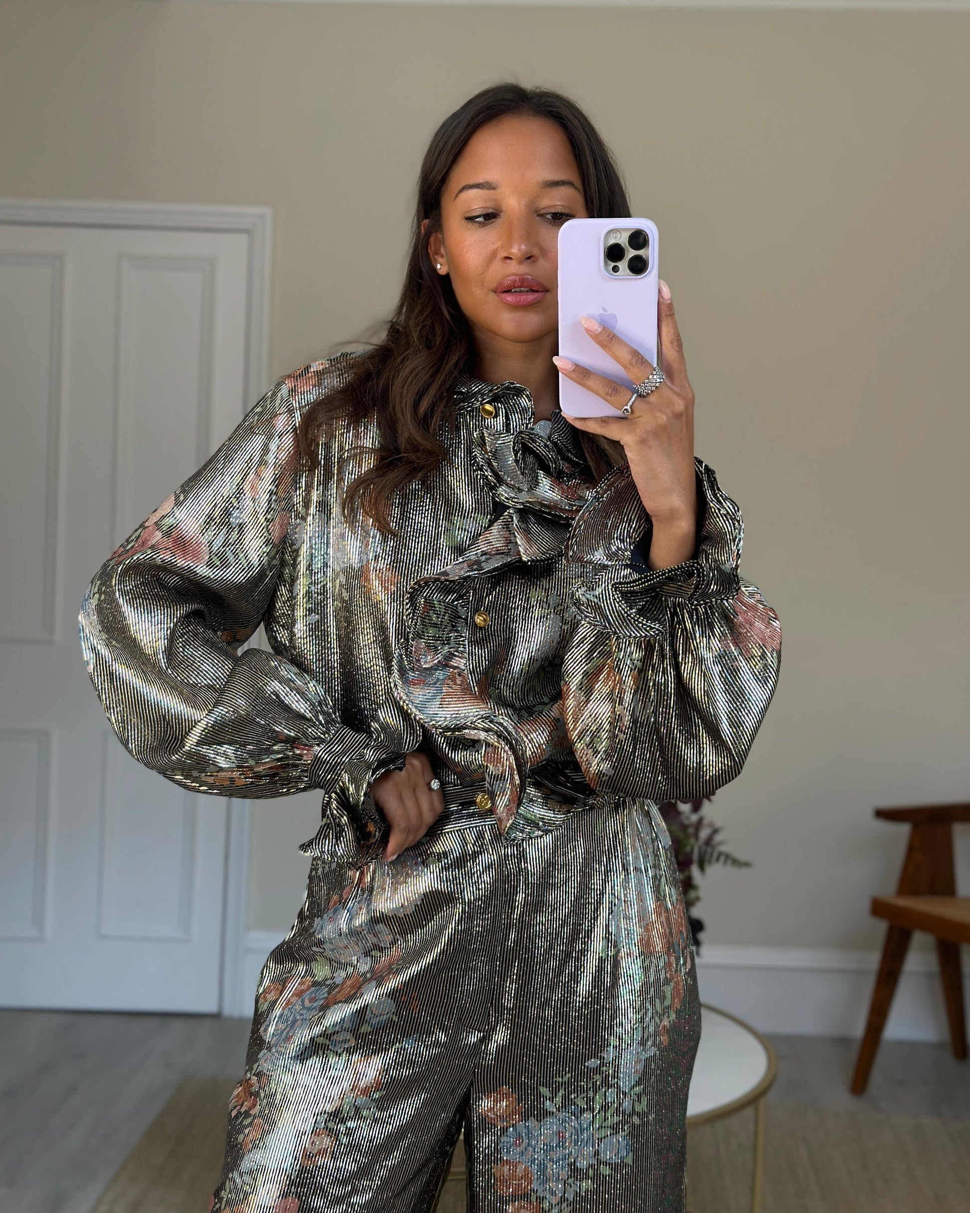 Gucci Black Metallic Striped  Blouse and Trouser Set with Floral Detail Size UK 10-14