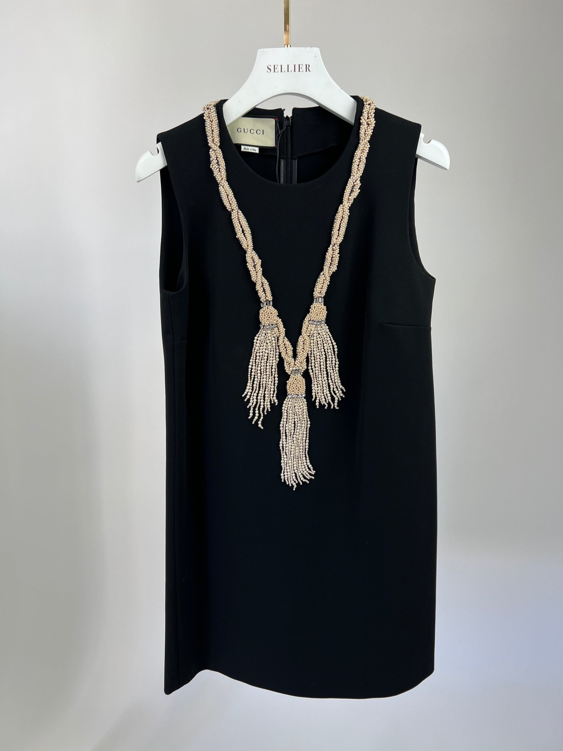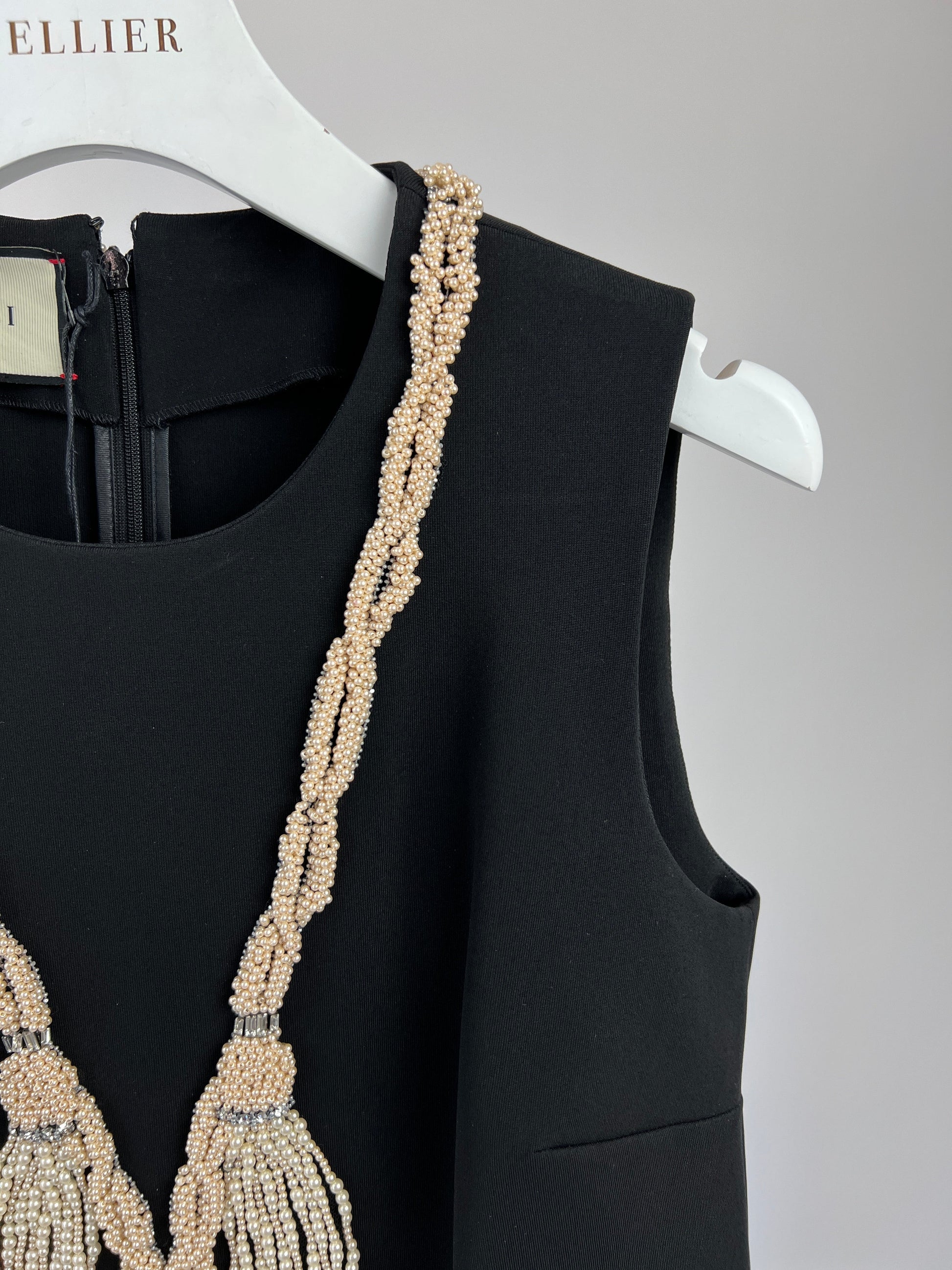 Gucci Black Mini Dress with Embellished Pearl Detail Size M (UK 10)