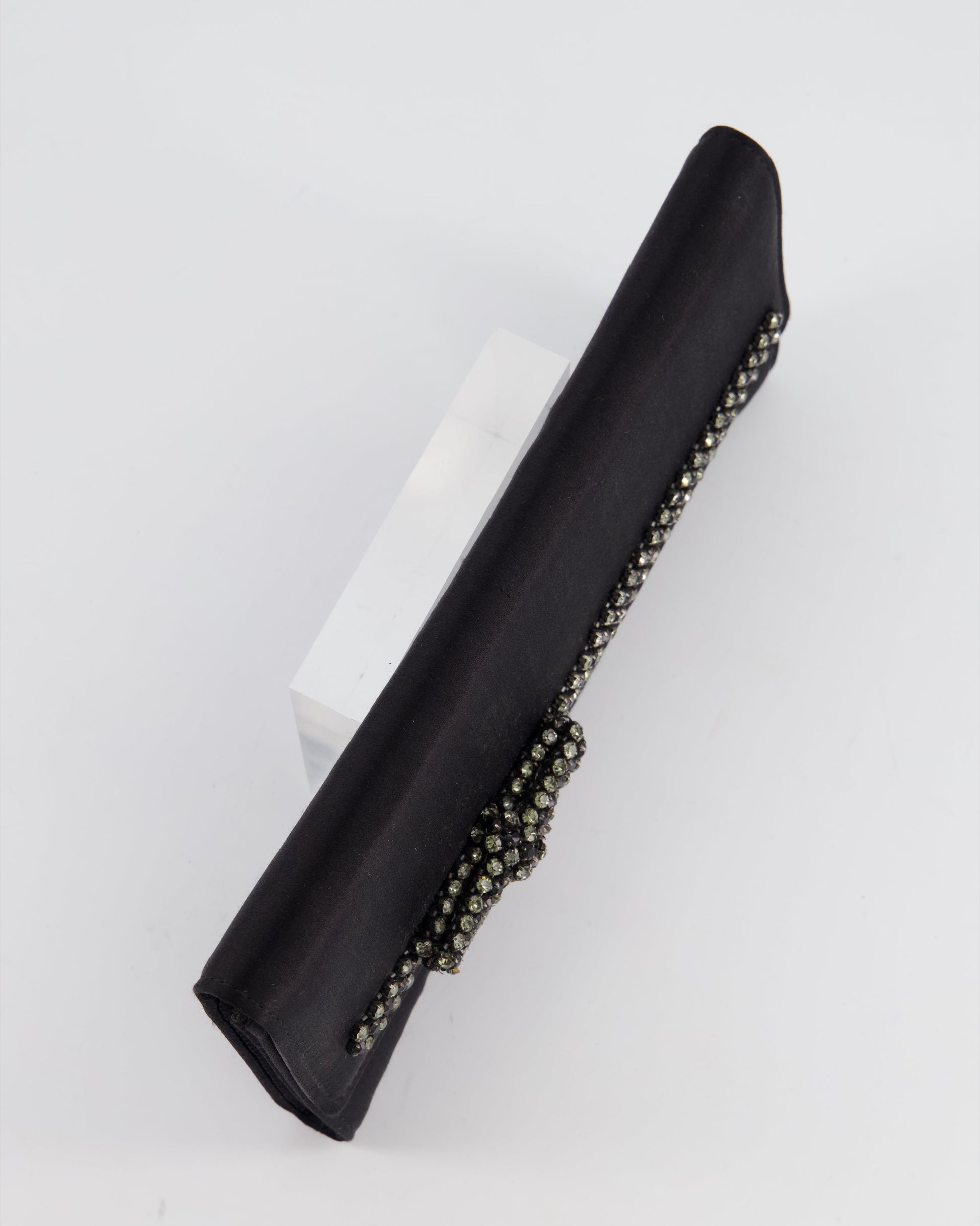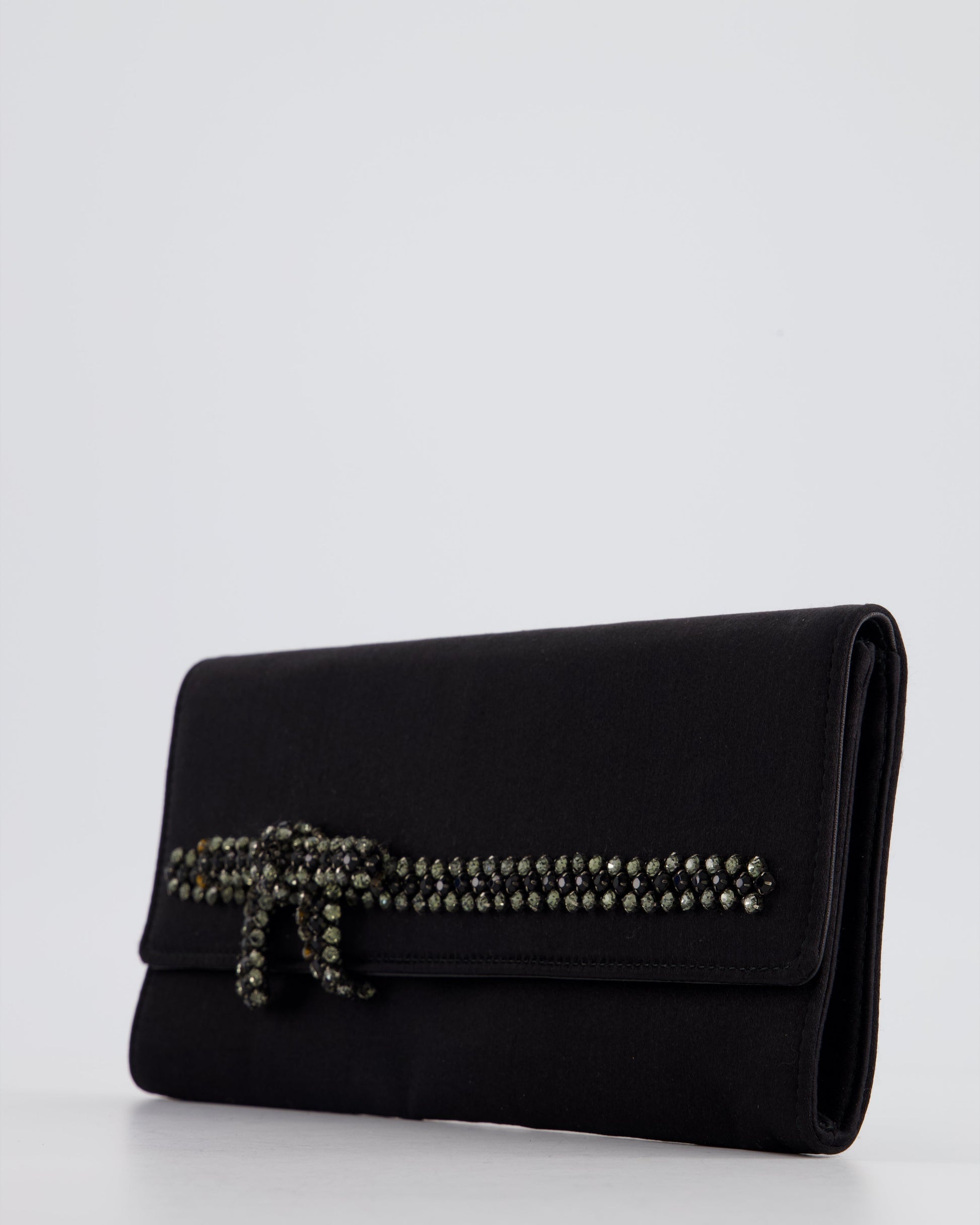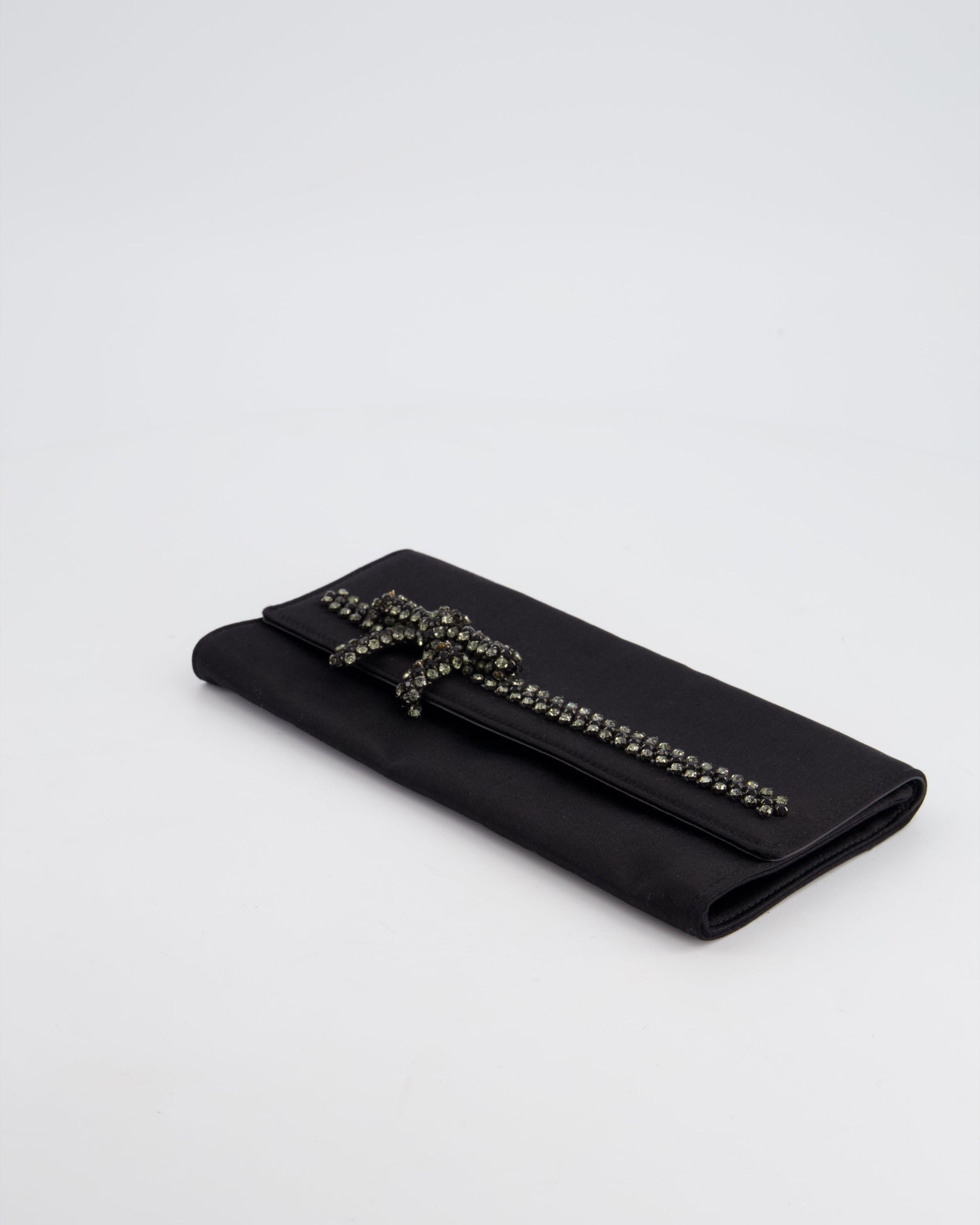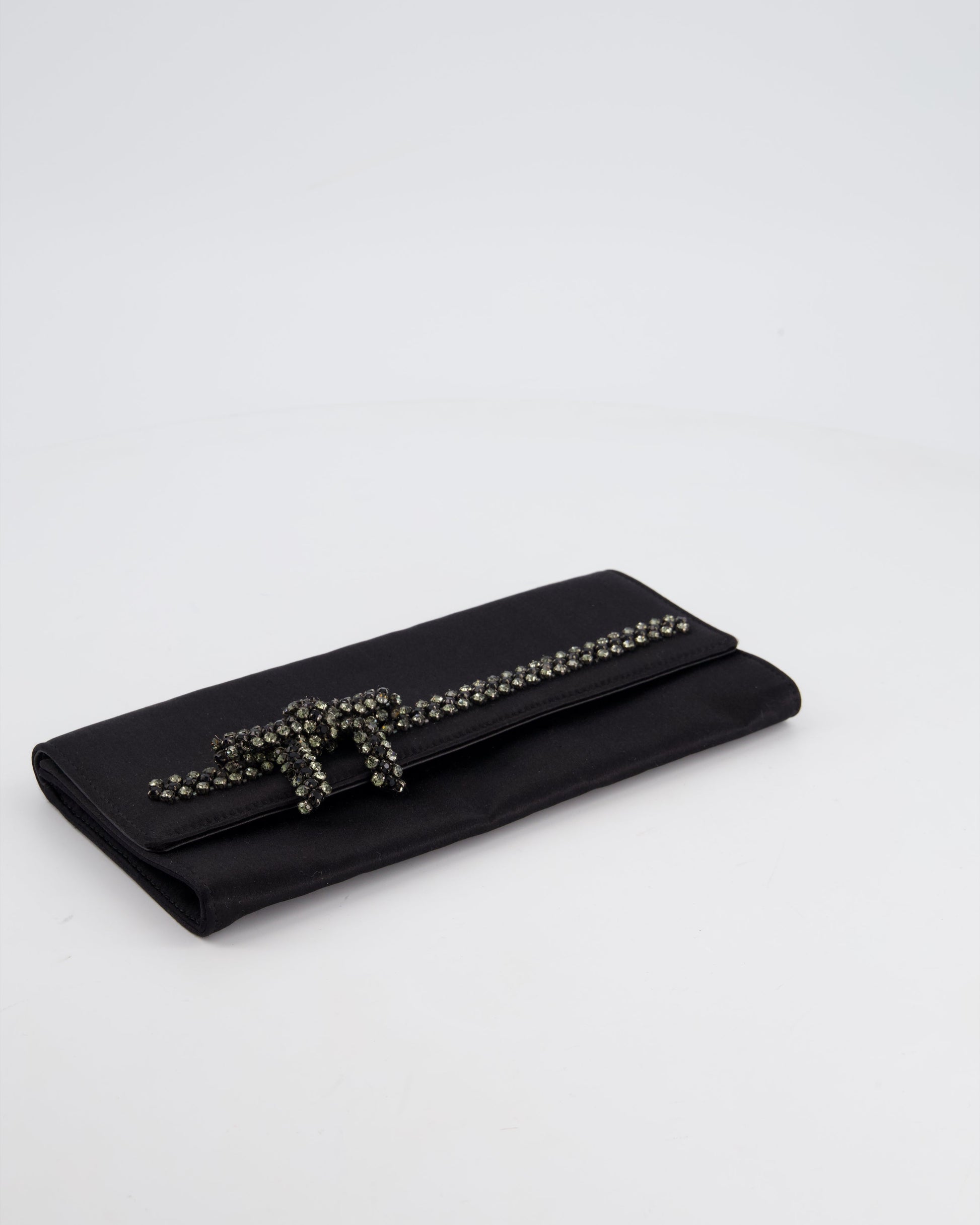 Gucci Black Rectangular Satin Clutch Bag with Embellished Bow Detail