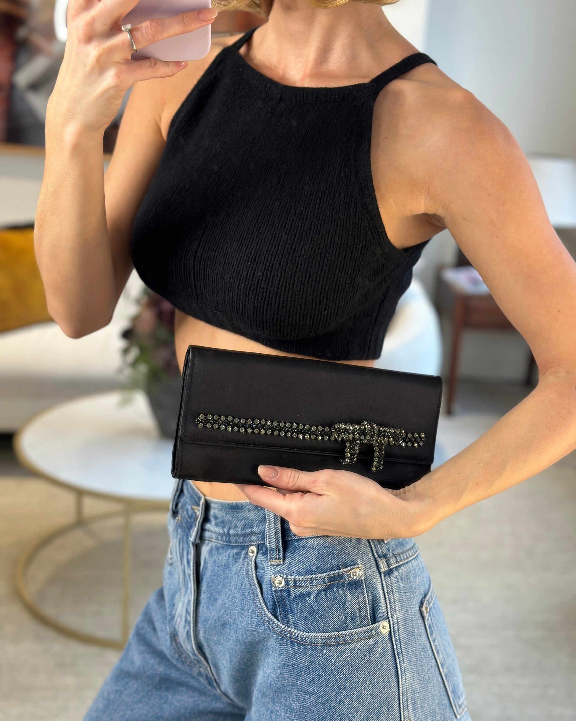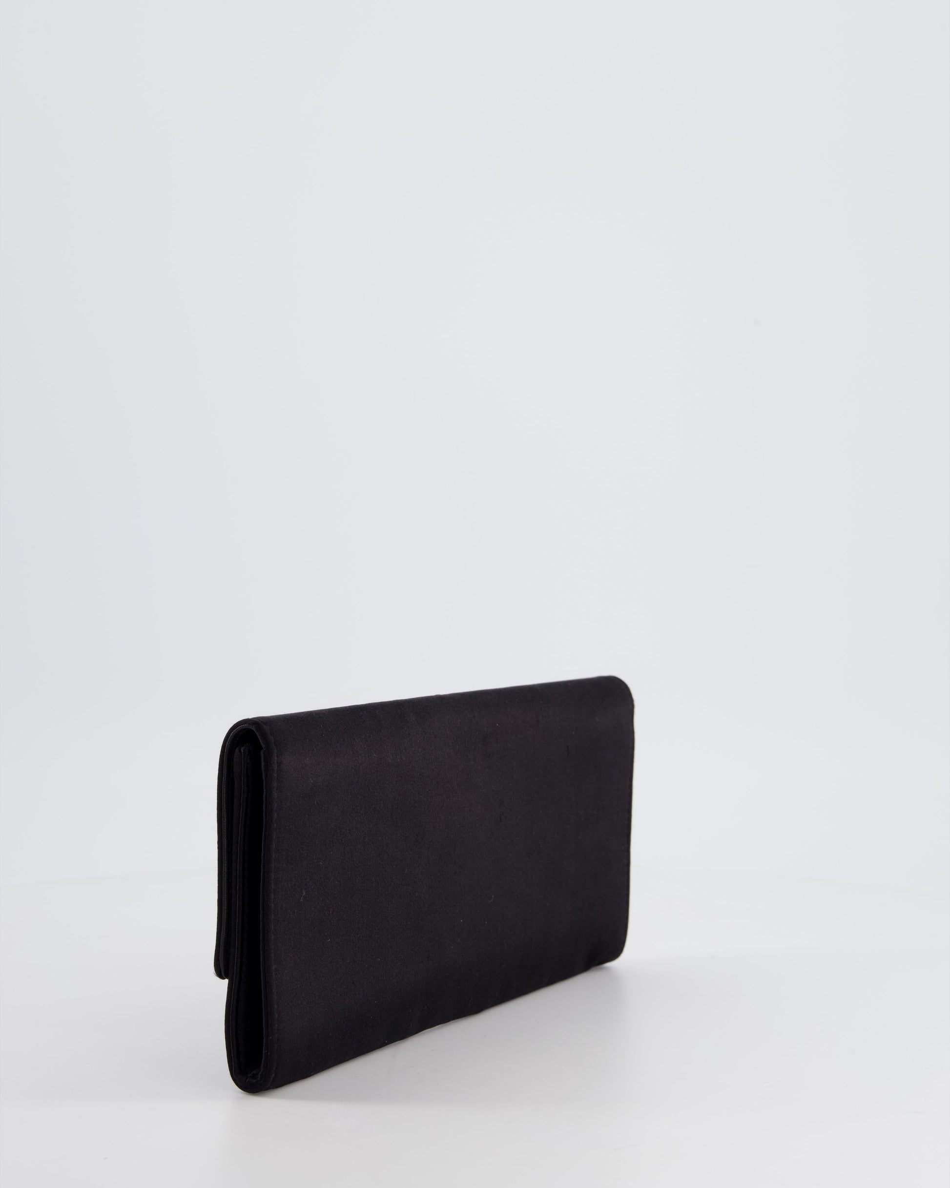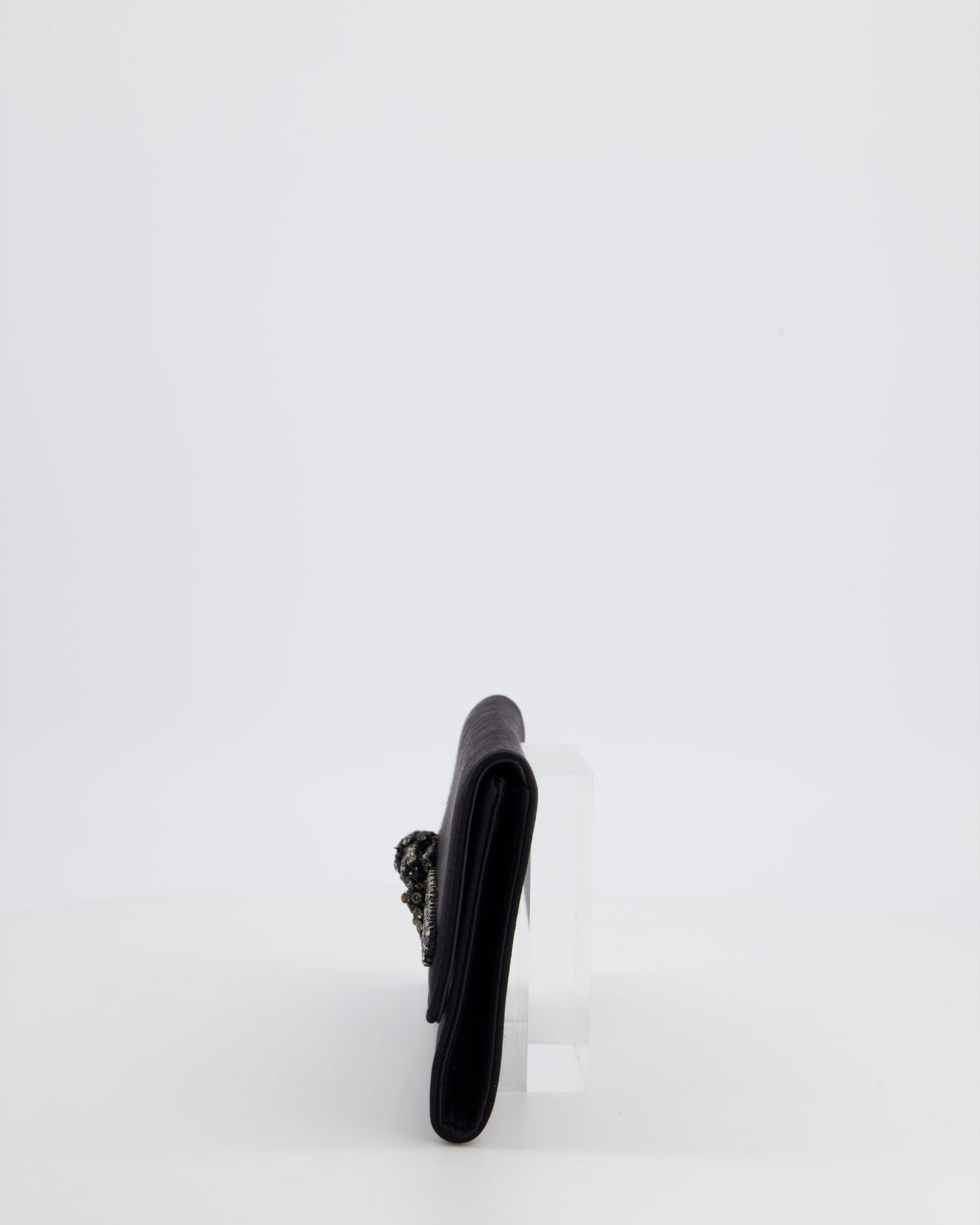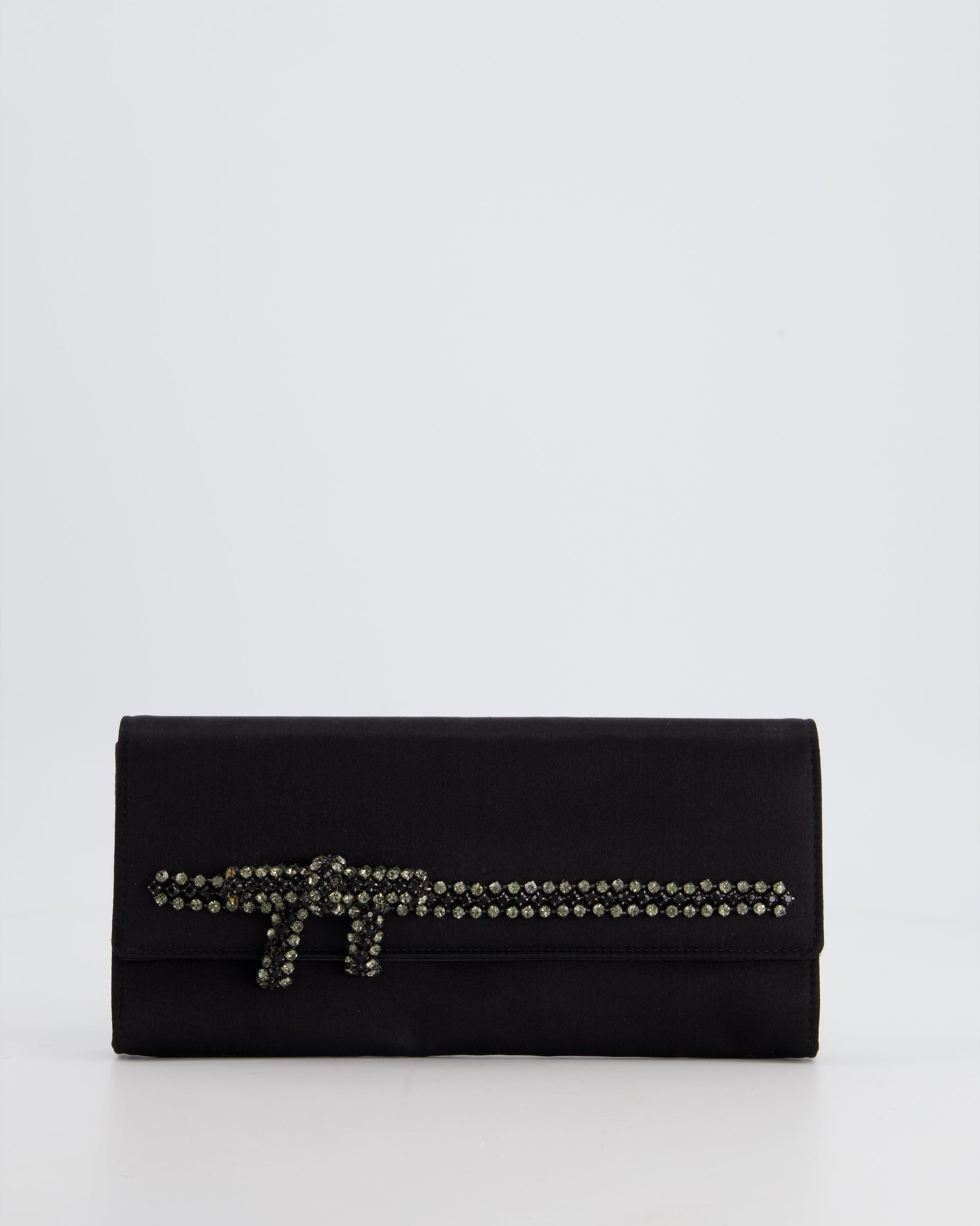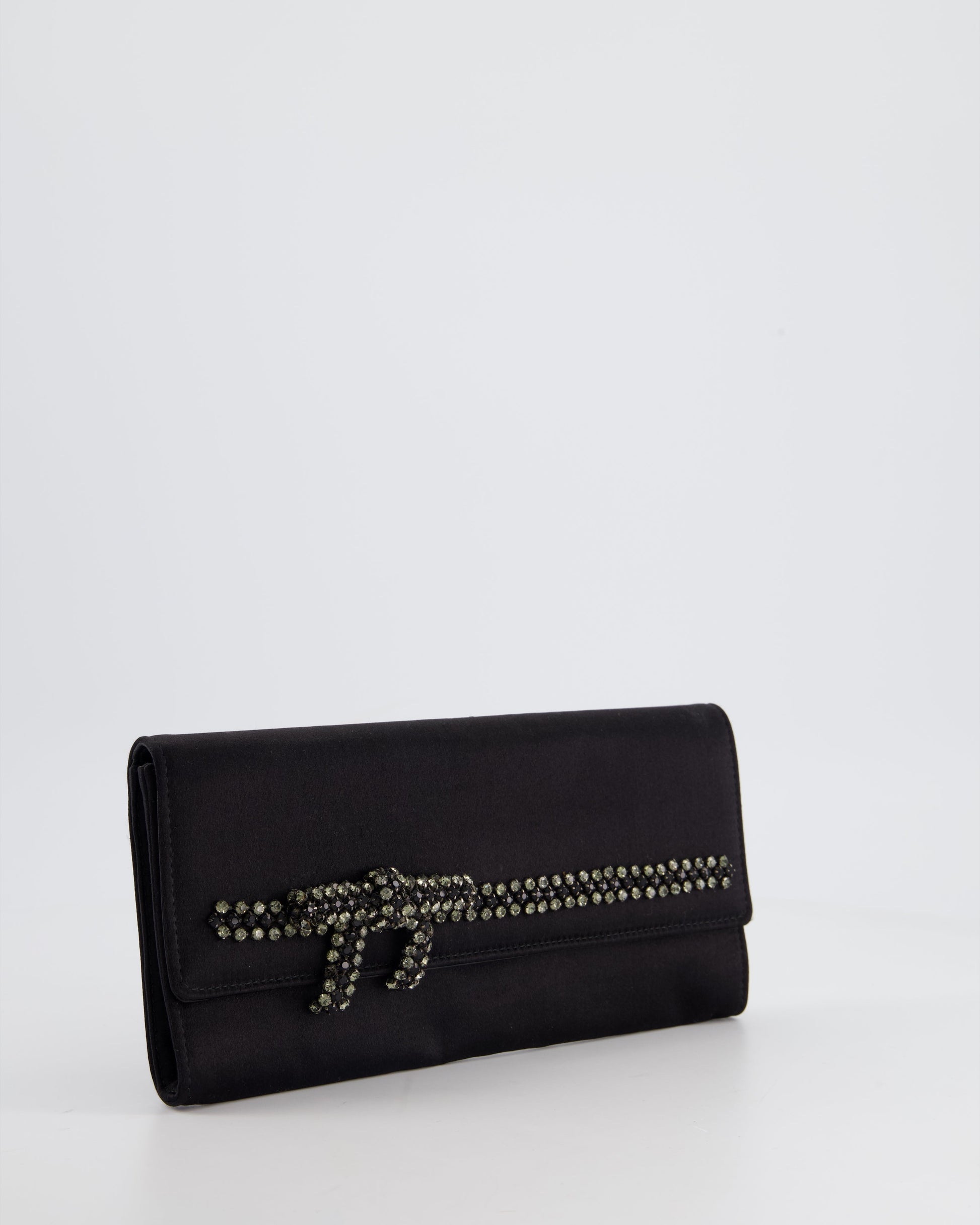 Gucci Black Rectangular Satin Clutch Bag with Embellished Bow Detail