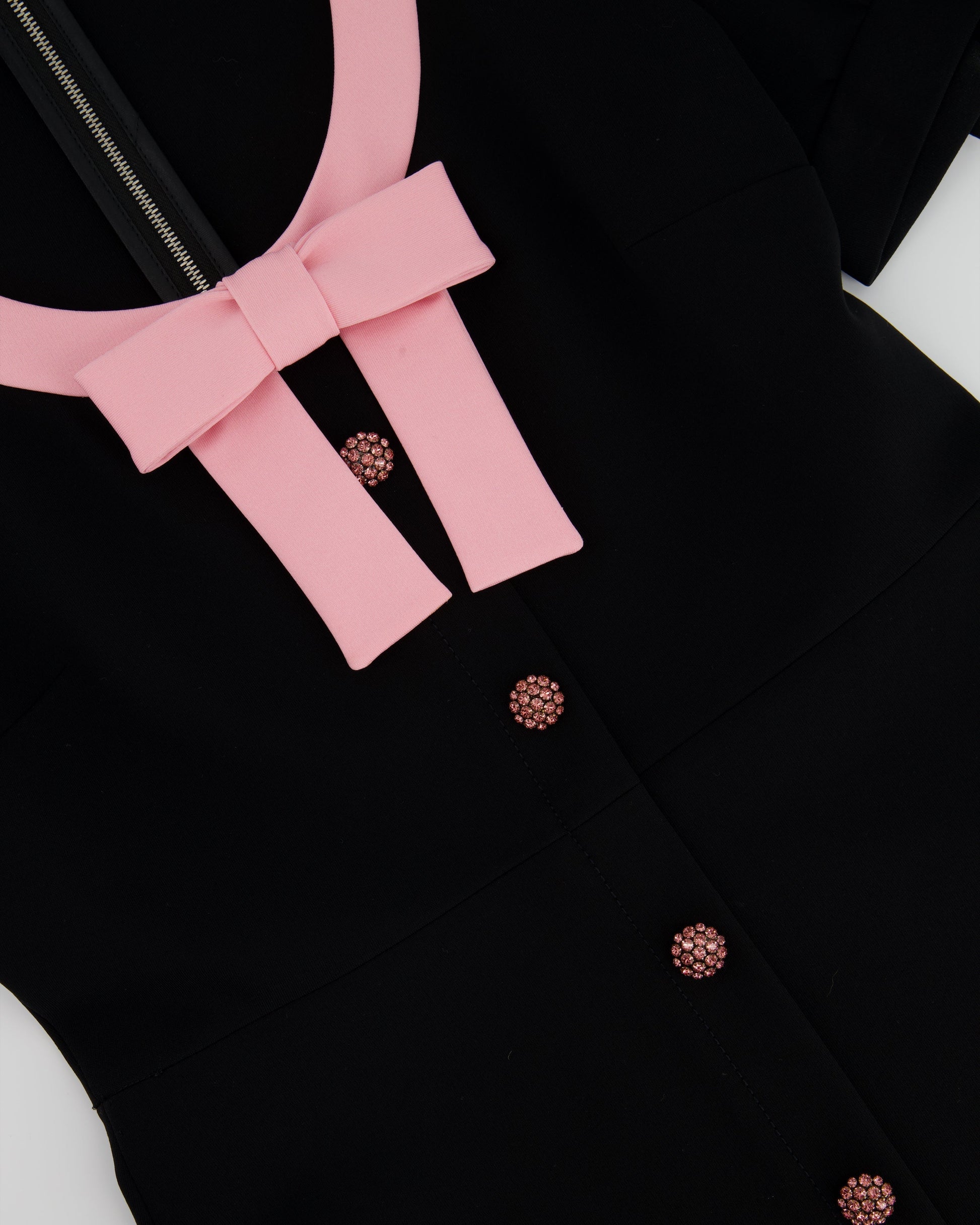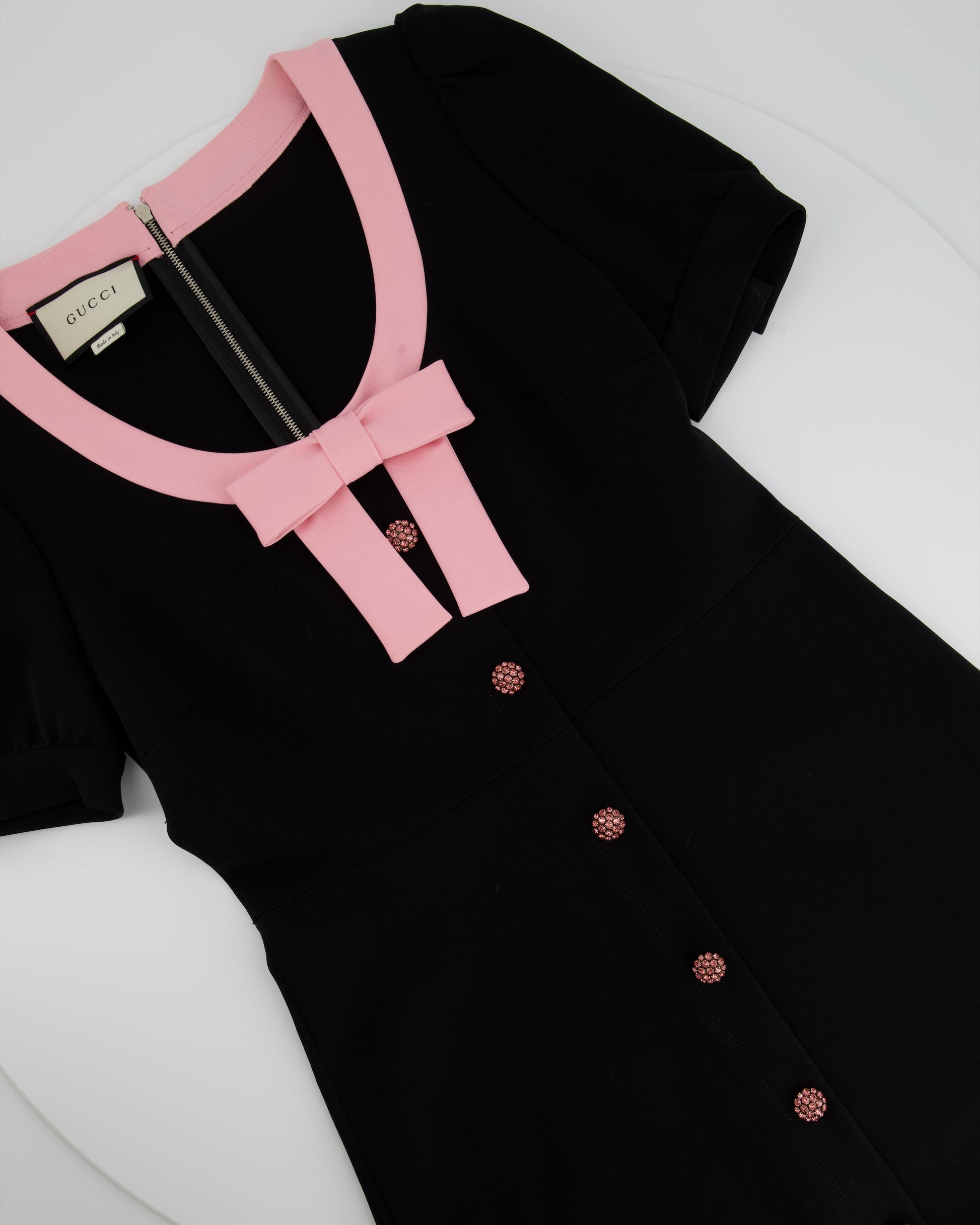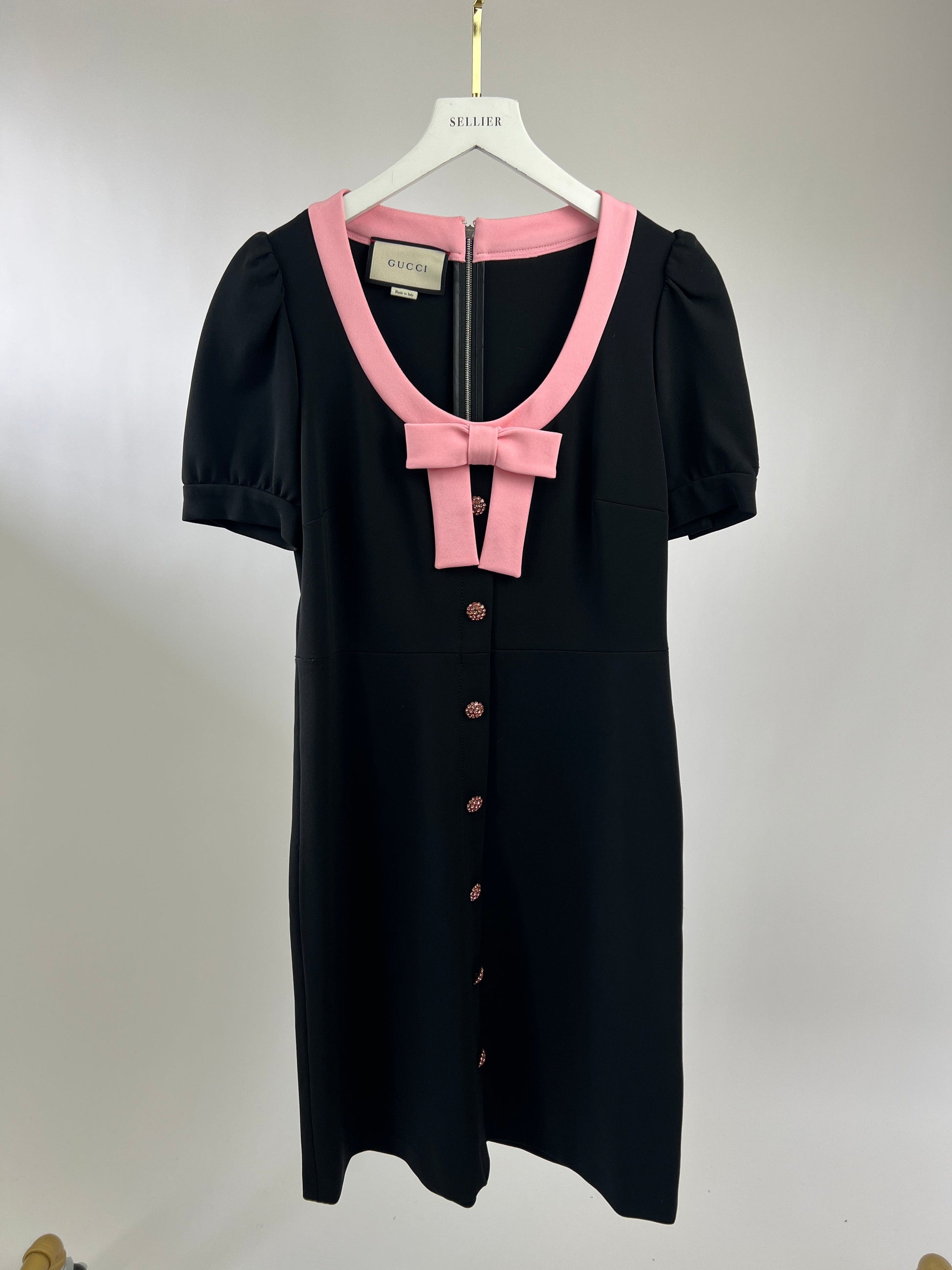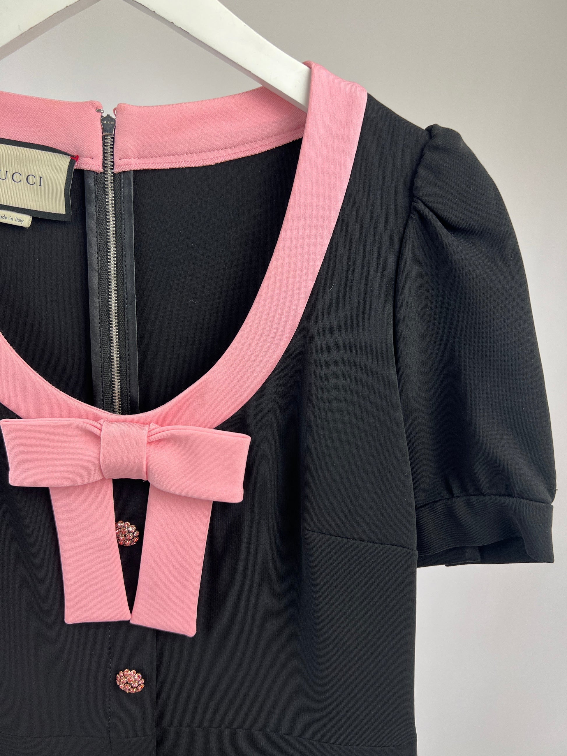 Gucci Black Short-Sleeve Dress with Pink Bow Trim, Crystal Detail Size L (10-12)