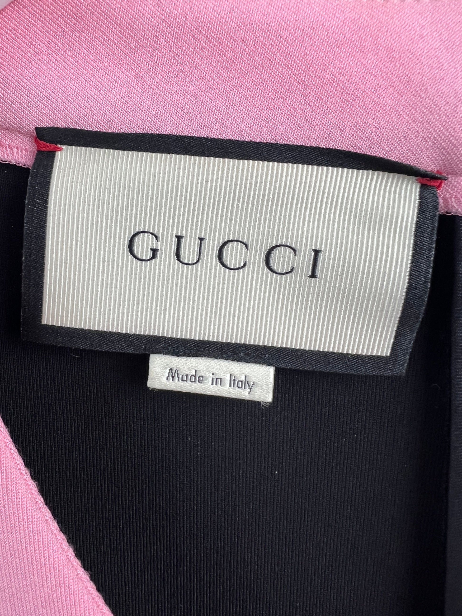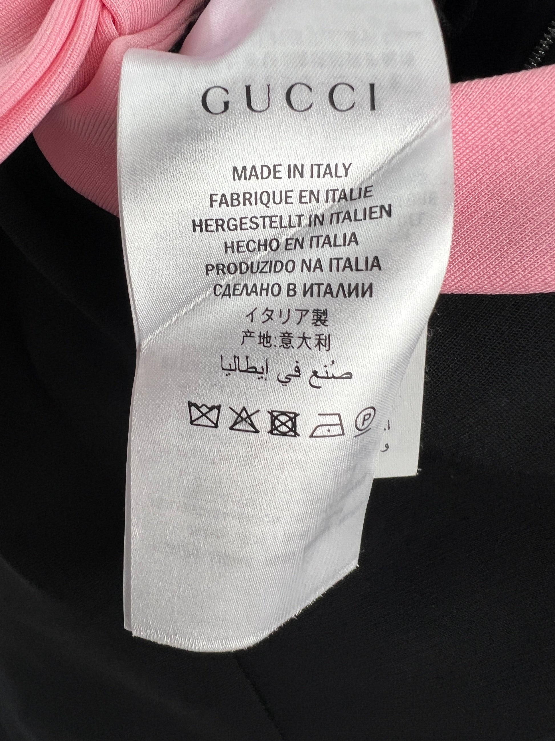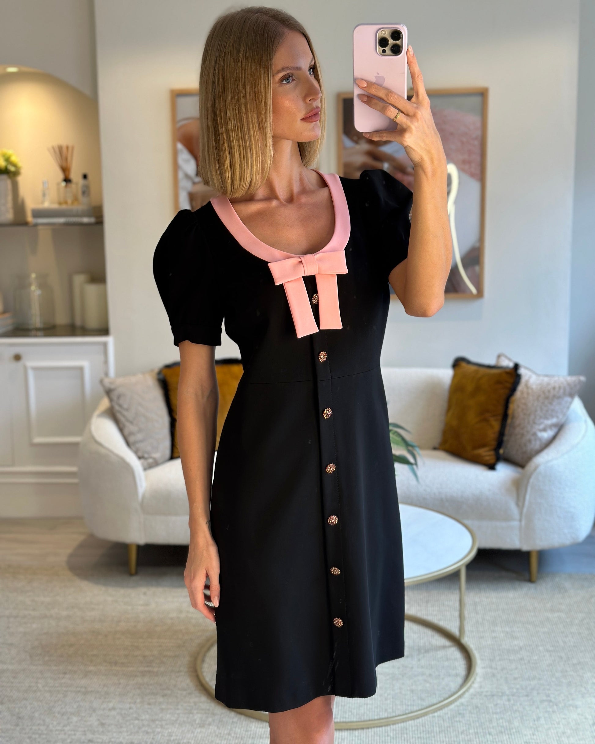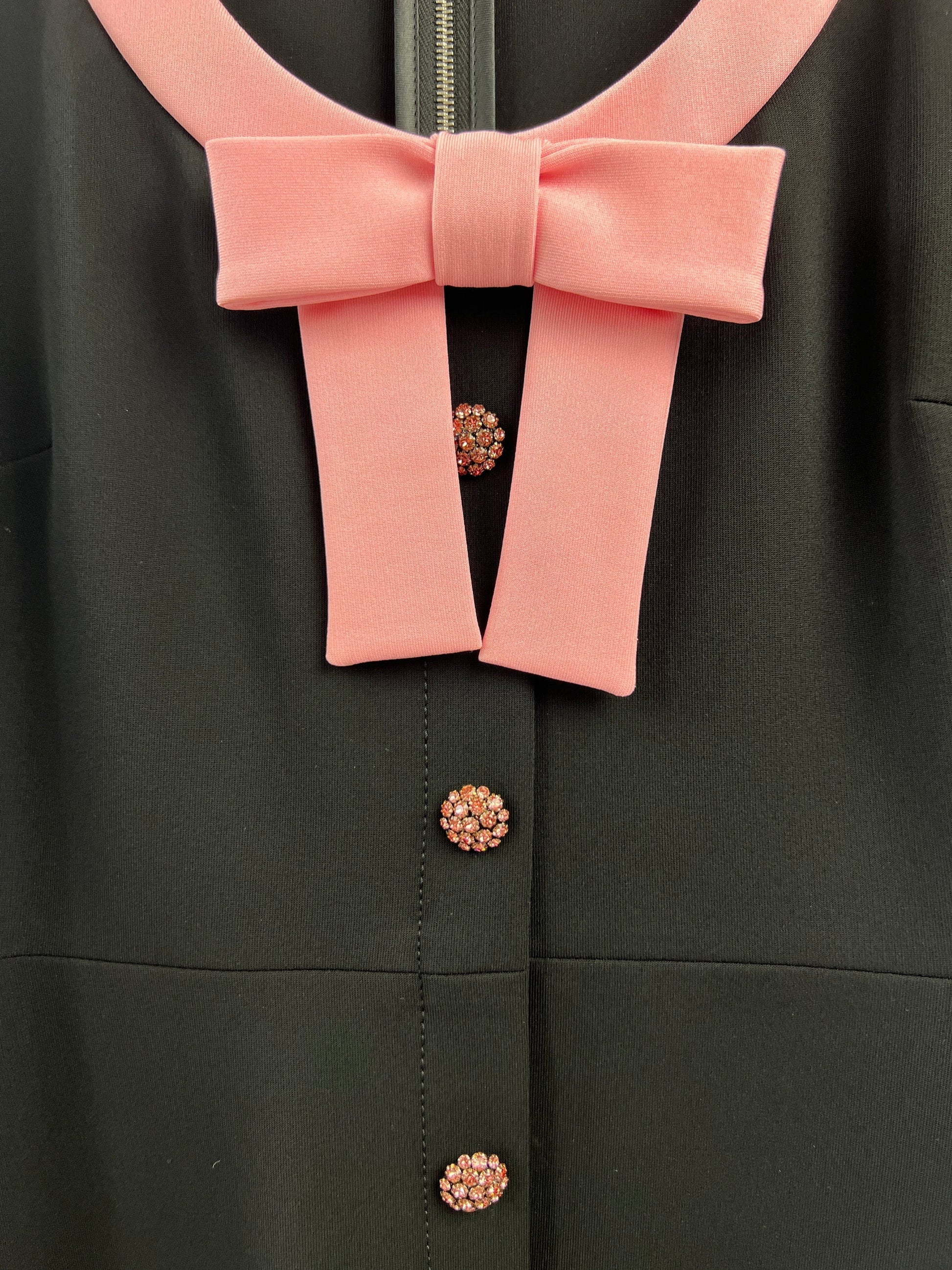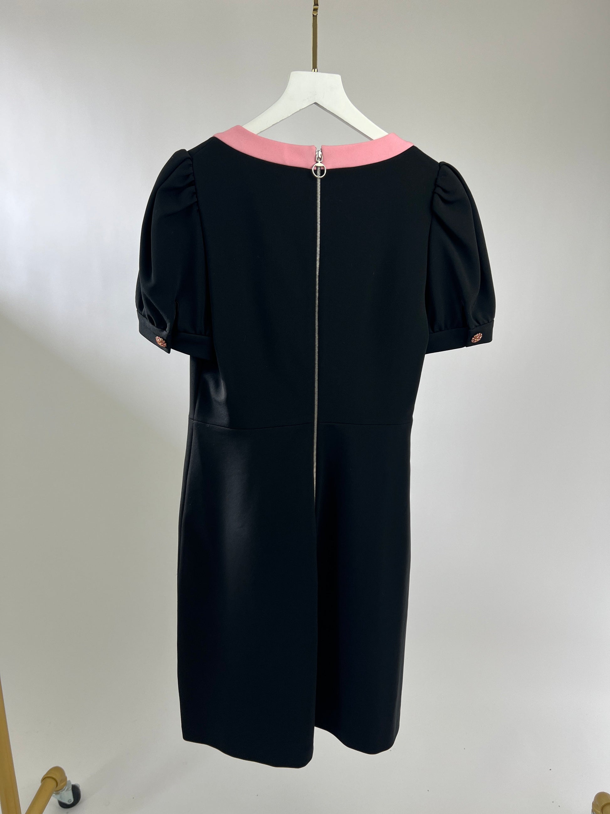Gucci Black Short-Sleeve Dress with Pink Bow Trim, Crystal Detail Size L (10-12)