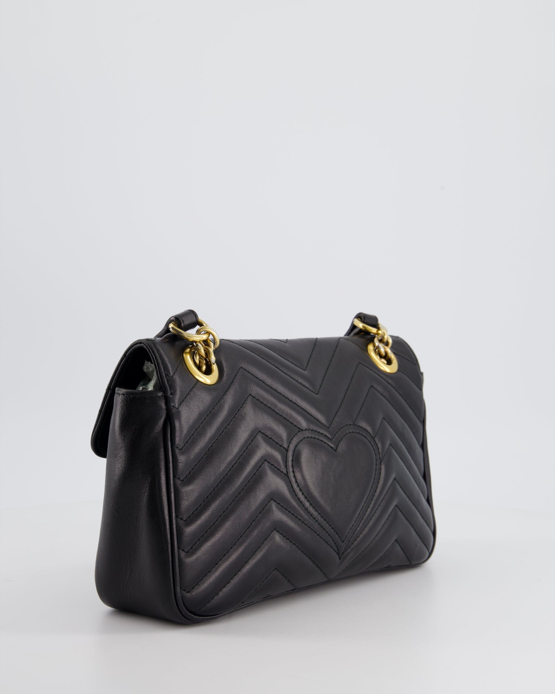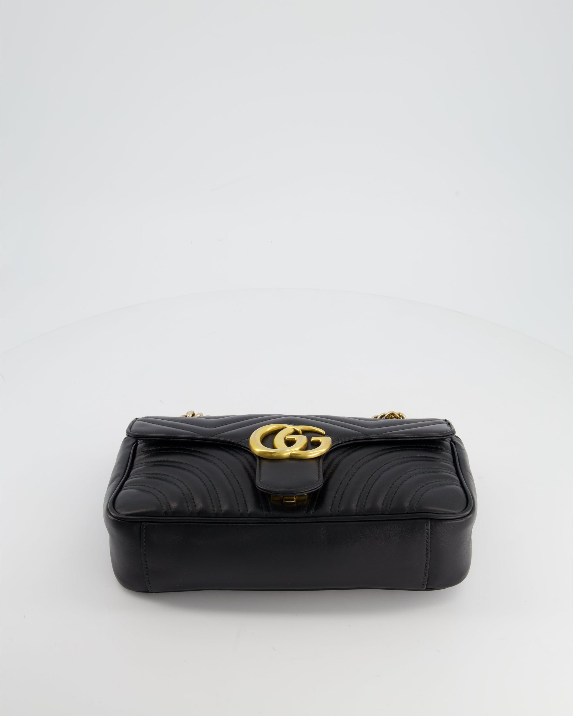 Gucci Black Small GG Marmont Shoulder Bag in Matelass Chevron Leather