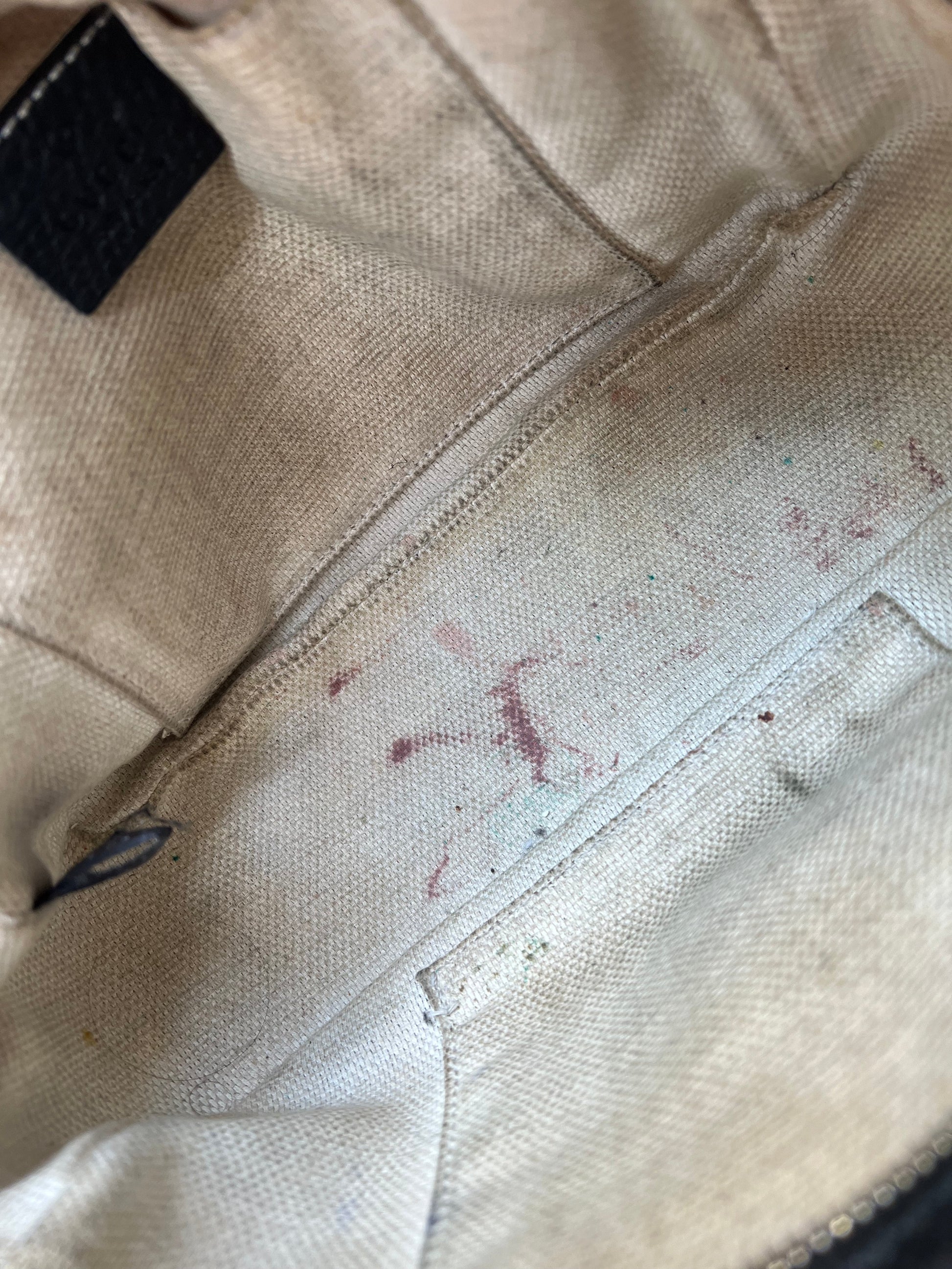 Exterior:Overall good New condition with general signs of wear. Some marks to leather and small amount of wear to corners. Some general wear to strap. Wear to tassel.