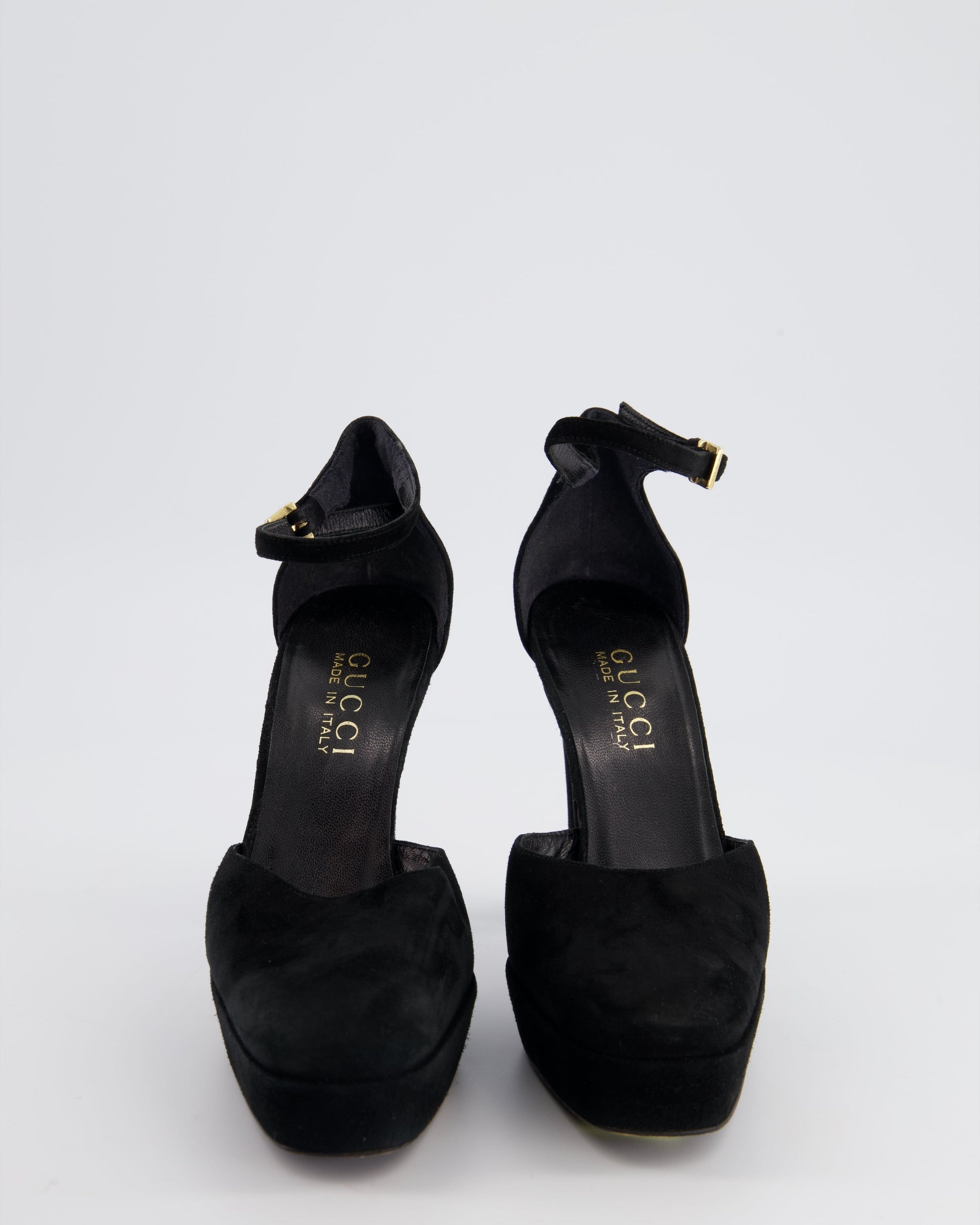 Gucci Black Suede Closed Toe Heels with Platform Size EU 38